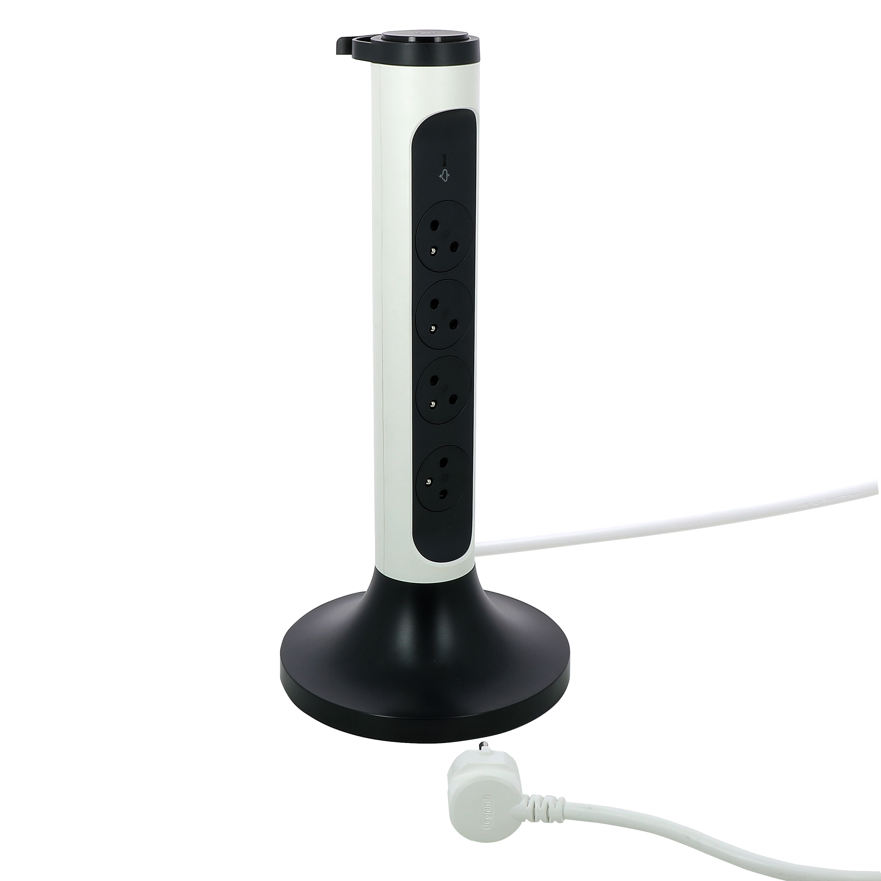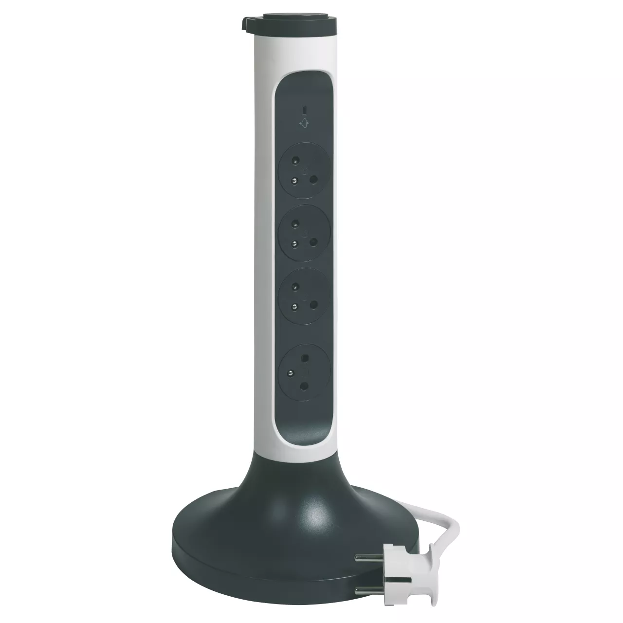 PRZEDŁUŻACZ PIONOWY, OBROTOWY, 4X2P+Z, Z OGRANICZNIKIEM PRZEPIĘĆ, Z PRZEWODEM 2.0 METRA 3X1.5 MM2 - BIAŁY/GRAFITOWY, Legrand