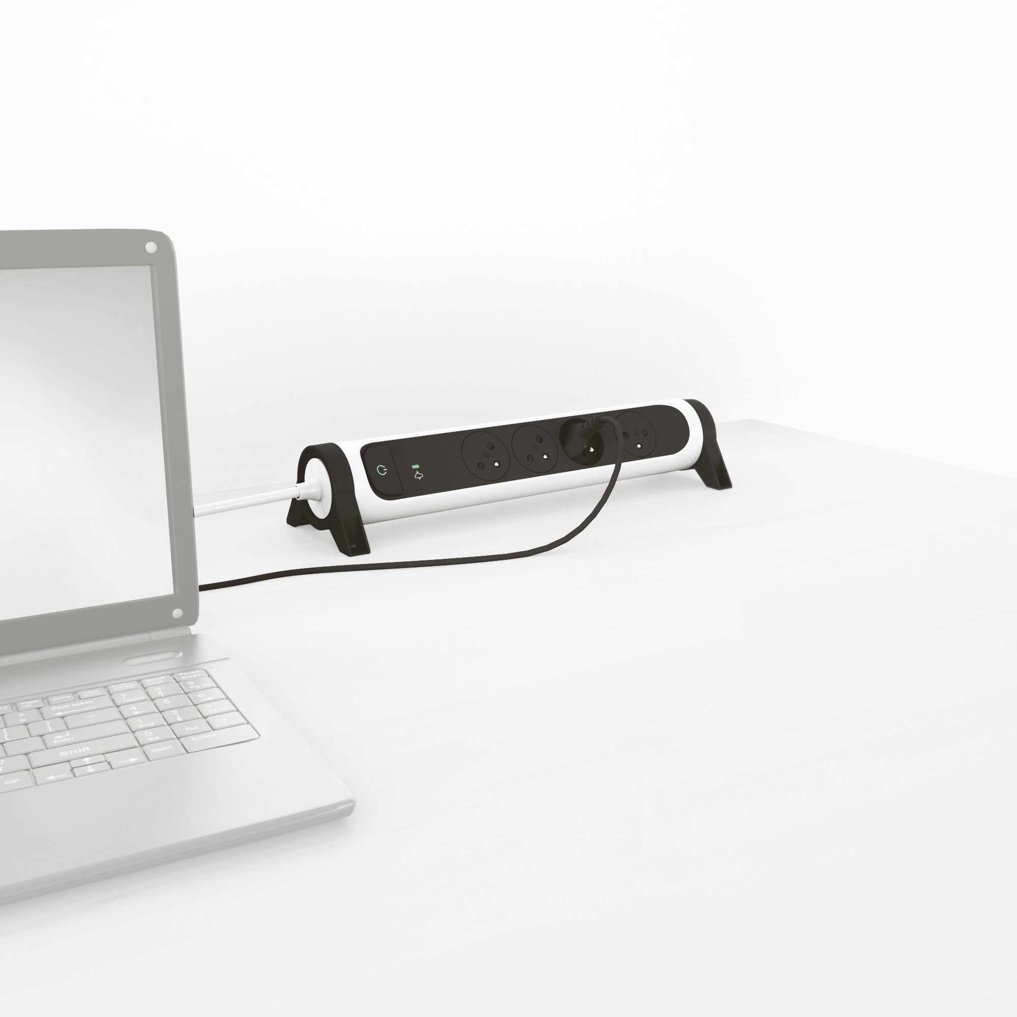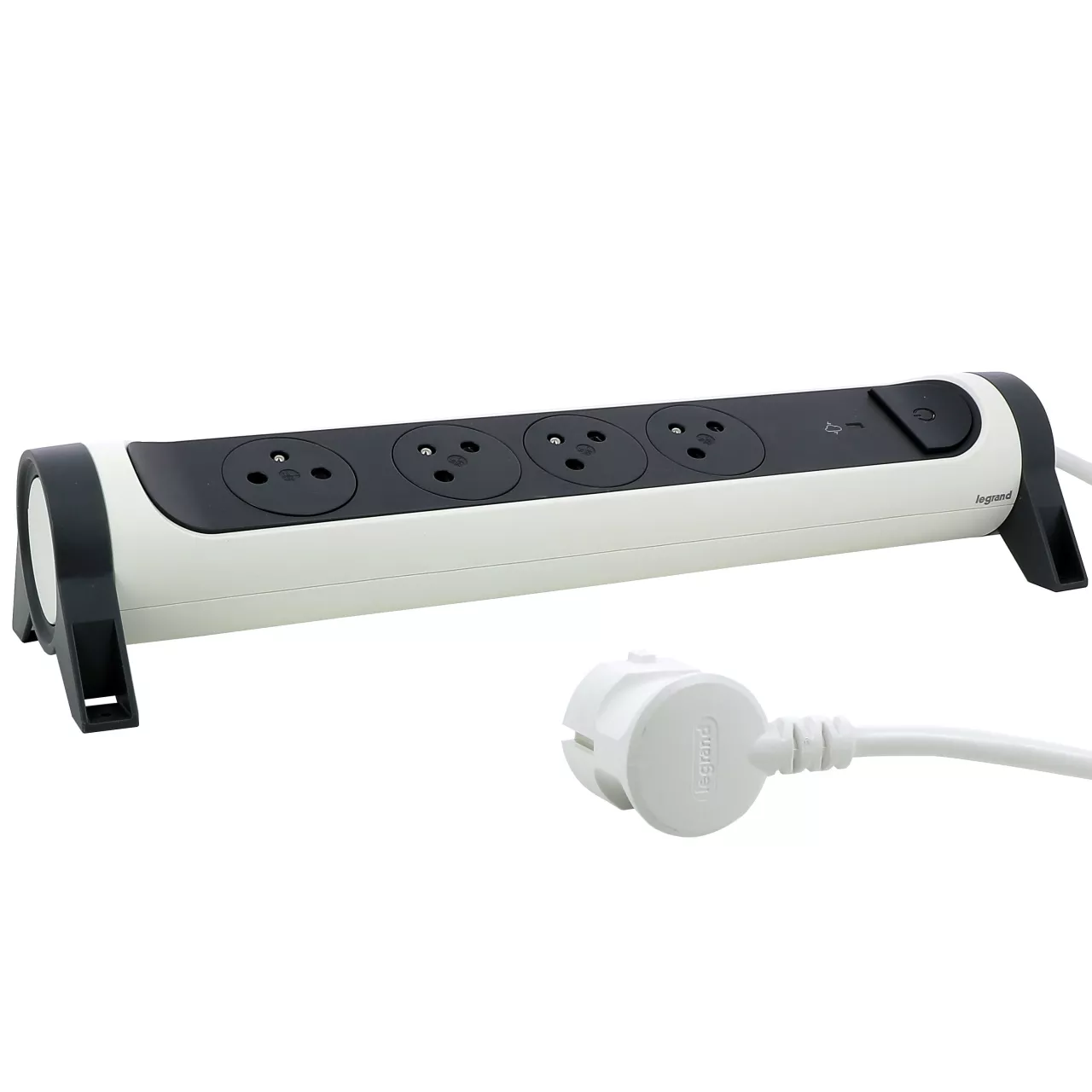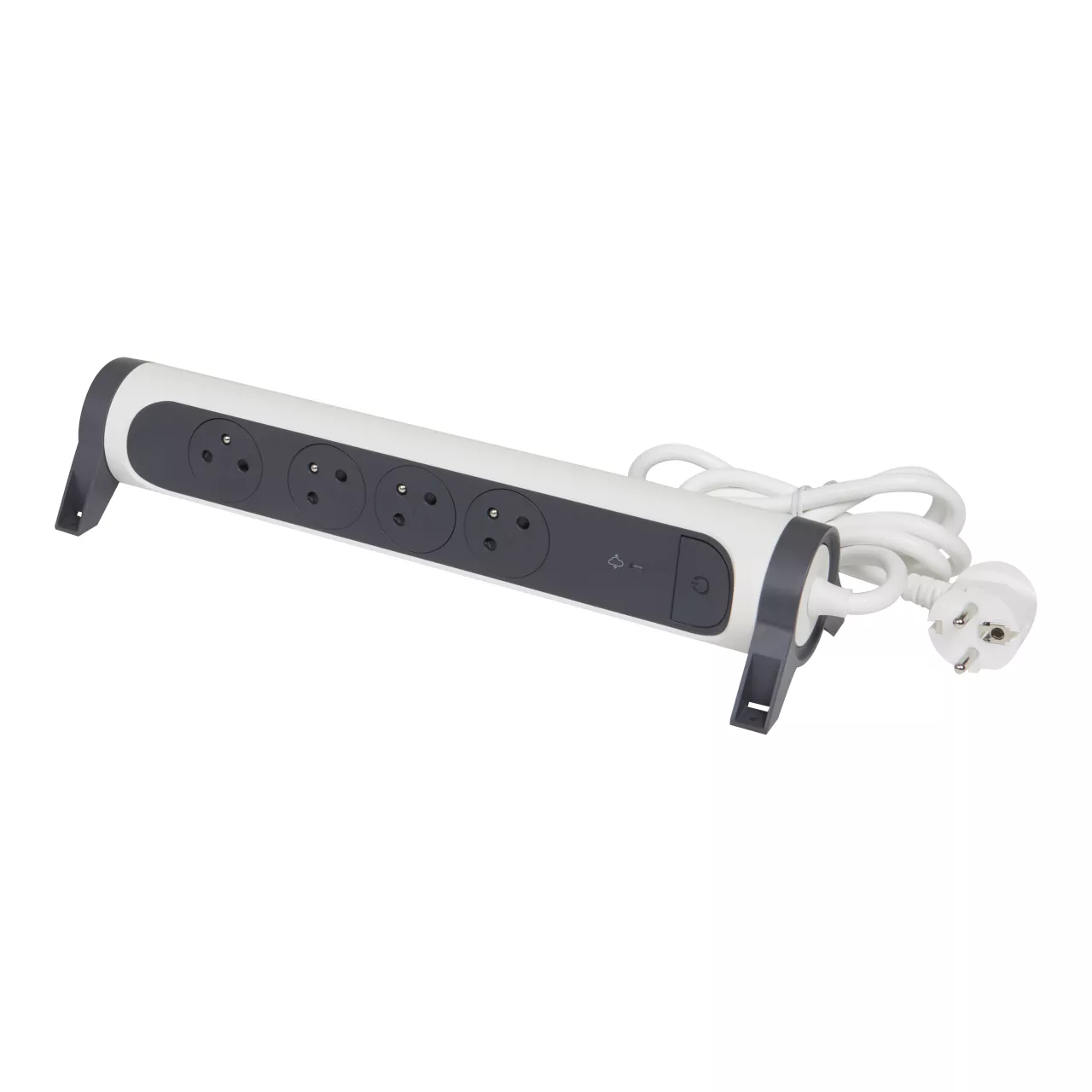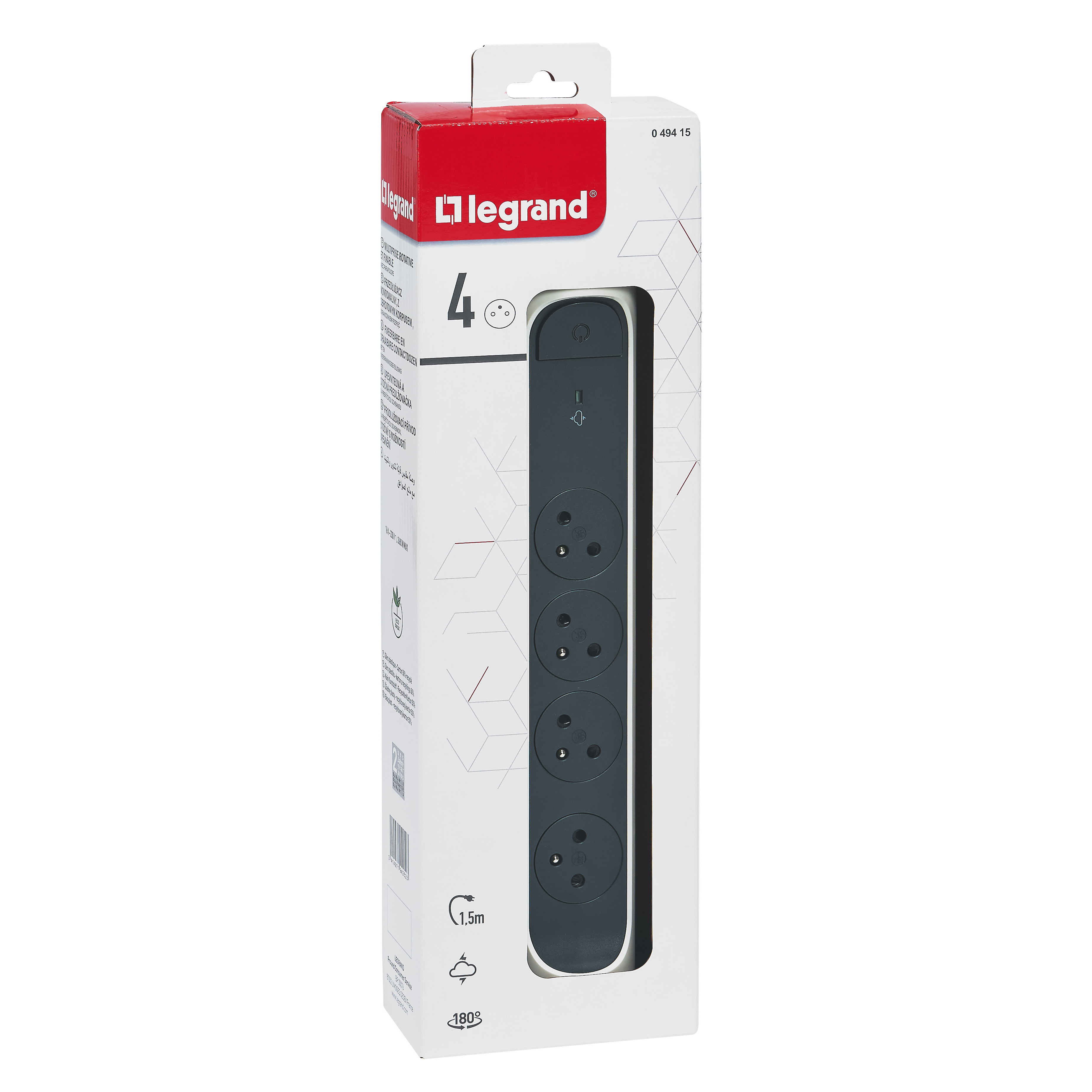 PRZEDŁUŻACZ PREMIUM, OBROTOWY, 4X2P+Z, Z OGRANICZNIKIEM PRZEPIĘĆ, Z PRZEWODEM 1.5 METRA 3X1.0 MM2 - BIAŁY/GRAFITOWY, Legrand