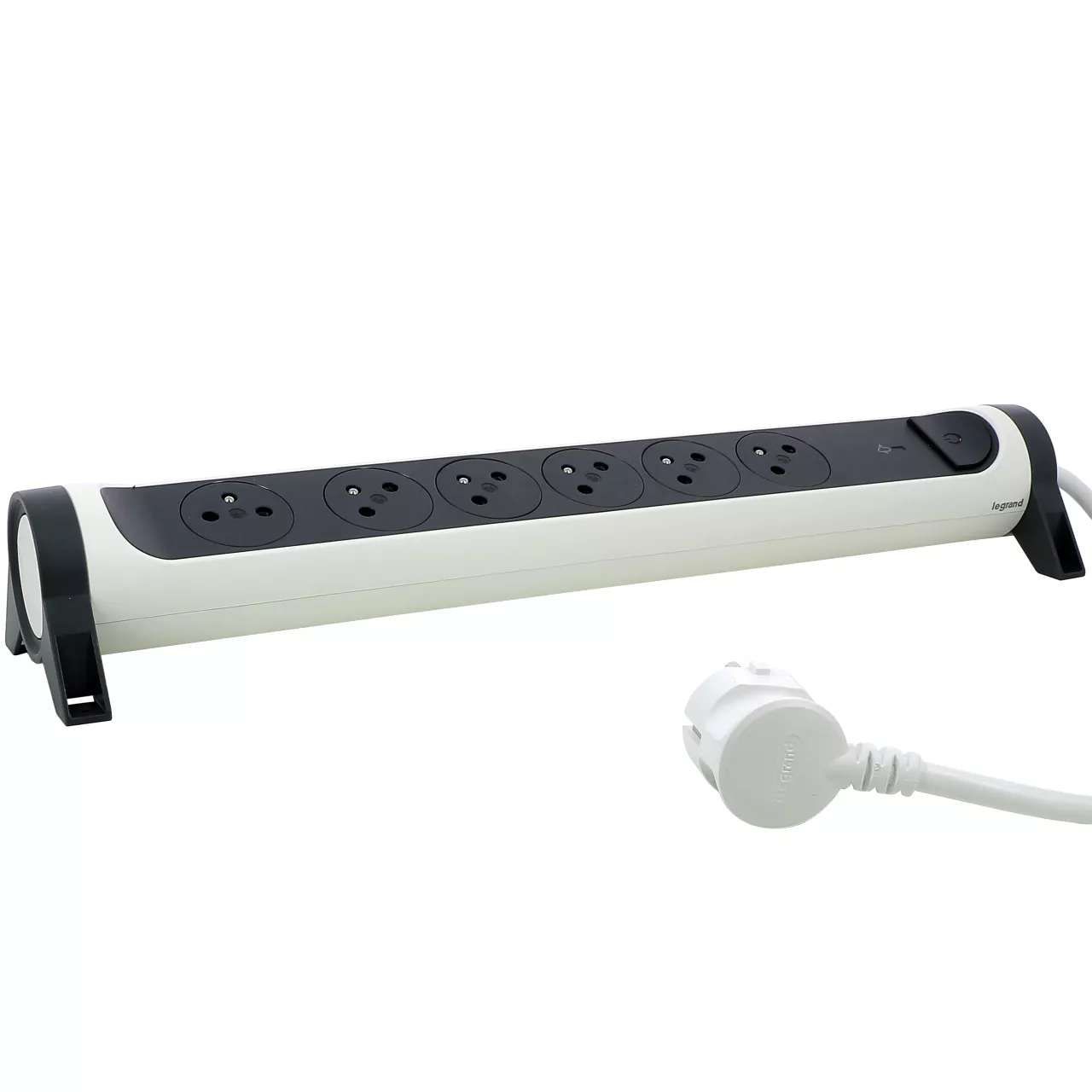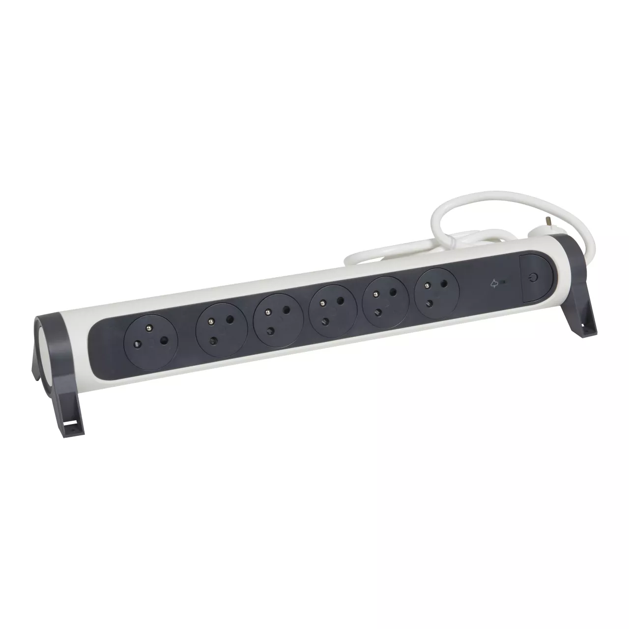 PRZEDŁUŻACZ PREMIUM, OBROTOWY, 6X2P+Z, Z OGRANICZNIKIEM PRZEPIĘĆ, Z PRZEWODEM 1.5 METRA 3X1.0 MM2 - BIAŁY/GRAFITOWY, Legrand