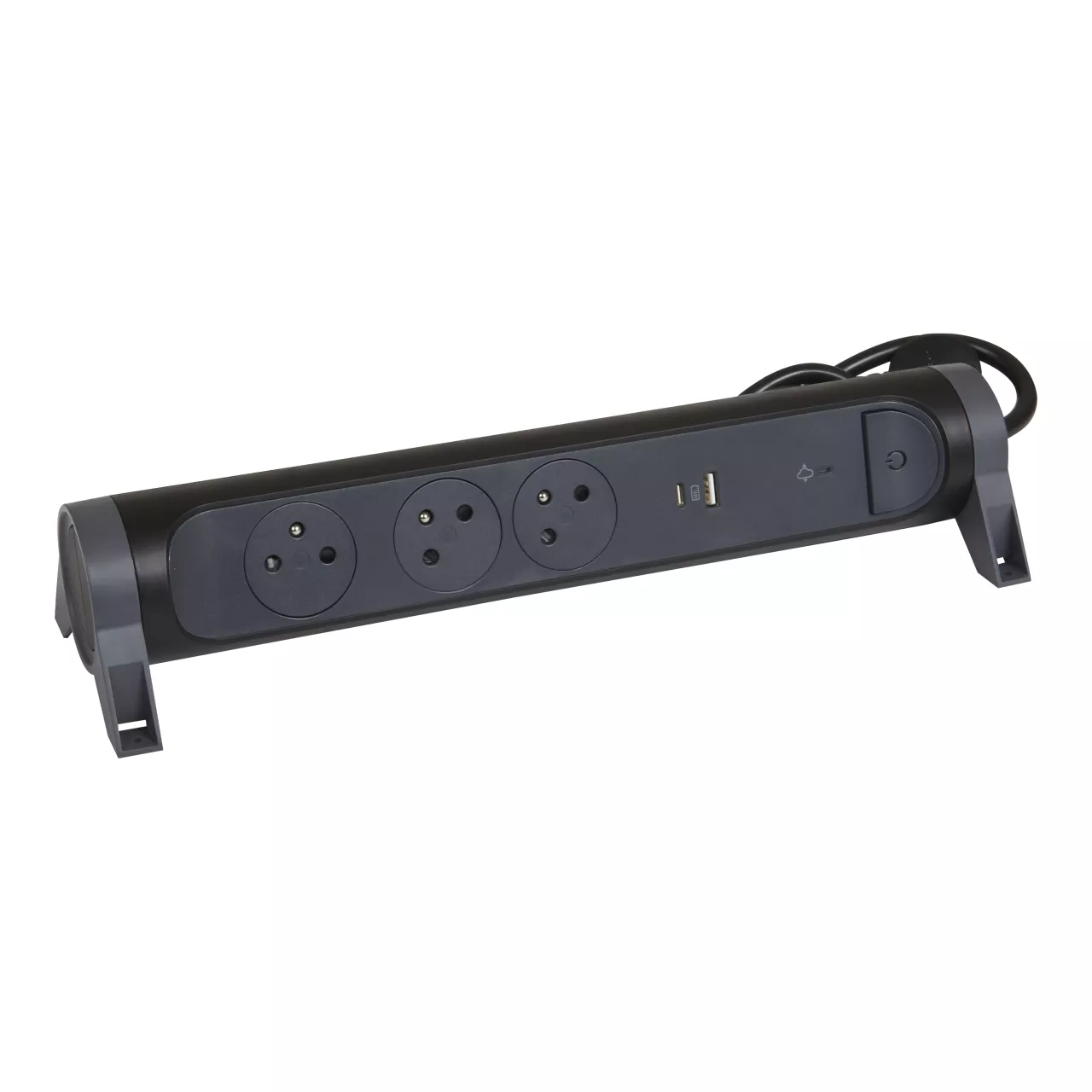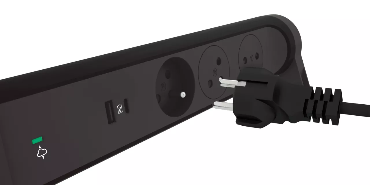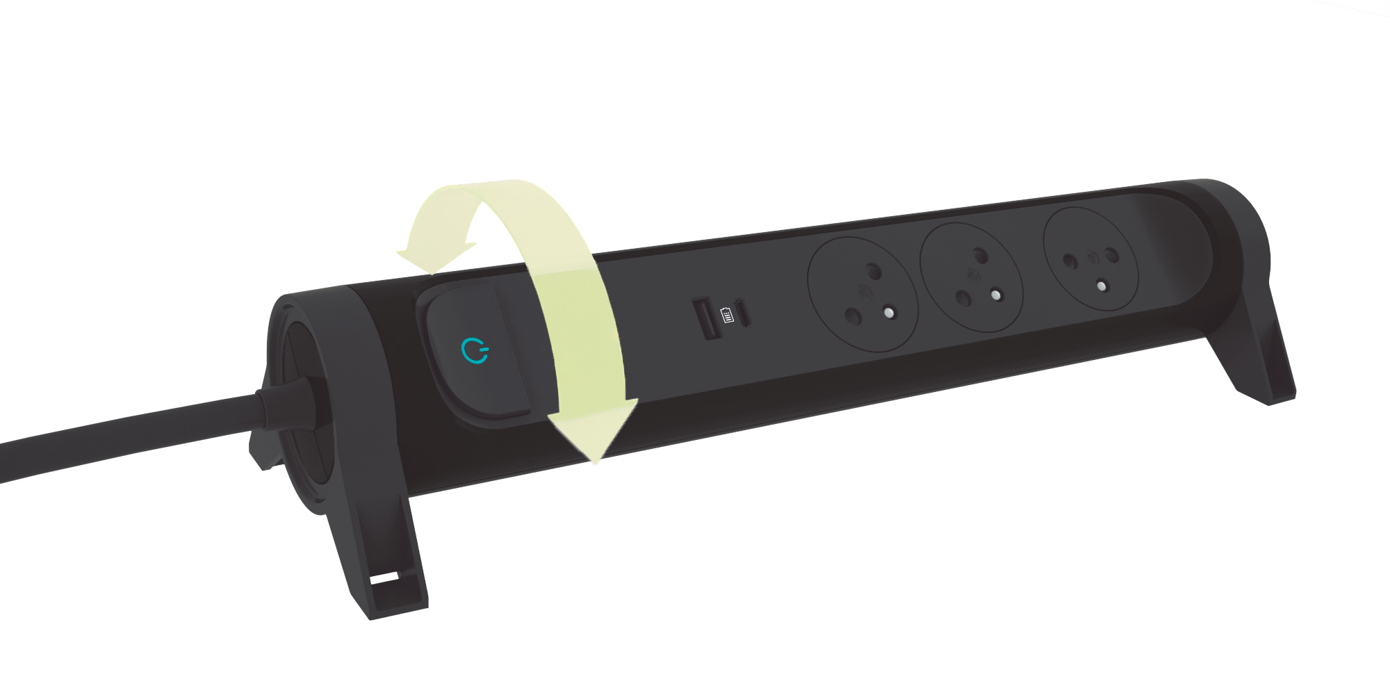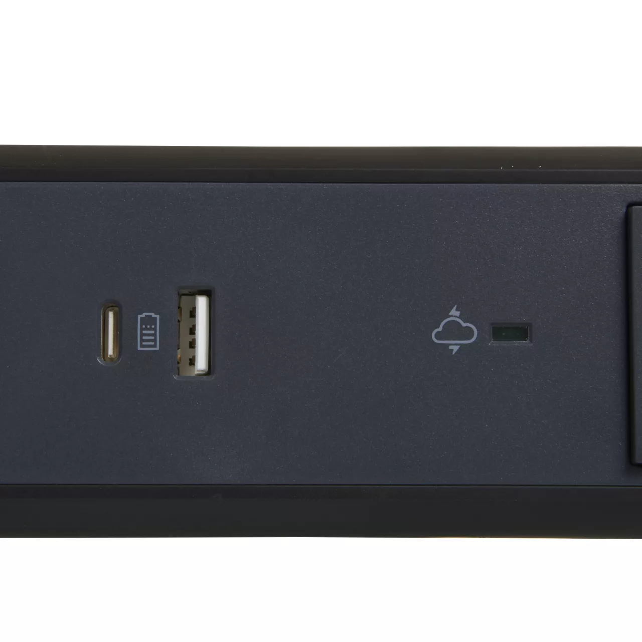 PRZEDŁUŻACZ PREMIUM, OBROTOWY, 3X2P+Z, USB A+C, Z OGRANICZNIKIEM PRZEPIĘĆ, Z PRZEWODEM 1.5 METRA 3X1.0 MM2 - CZARNY/GRAFITOWY, Legrand