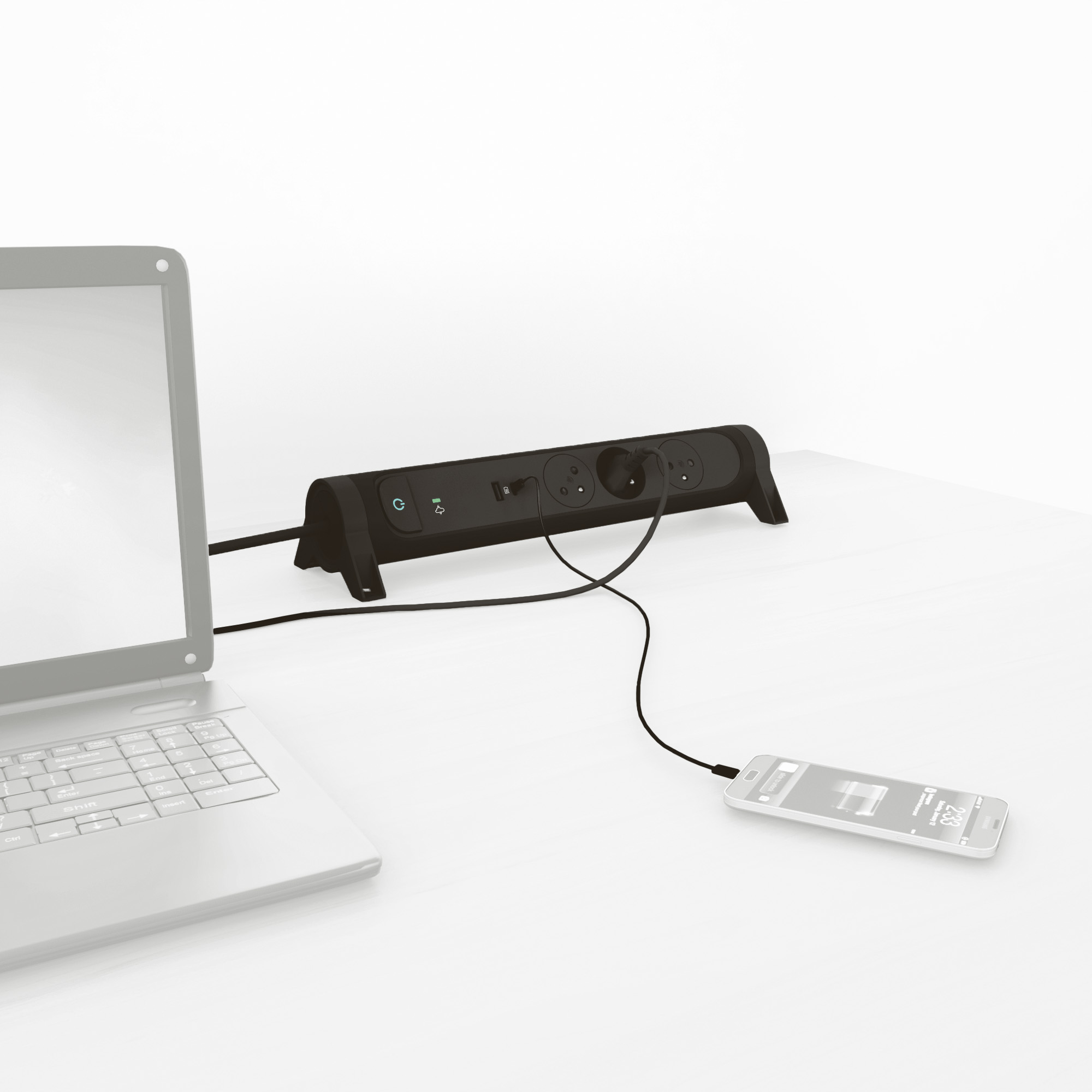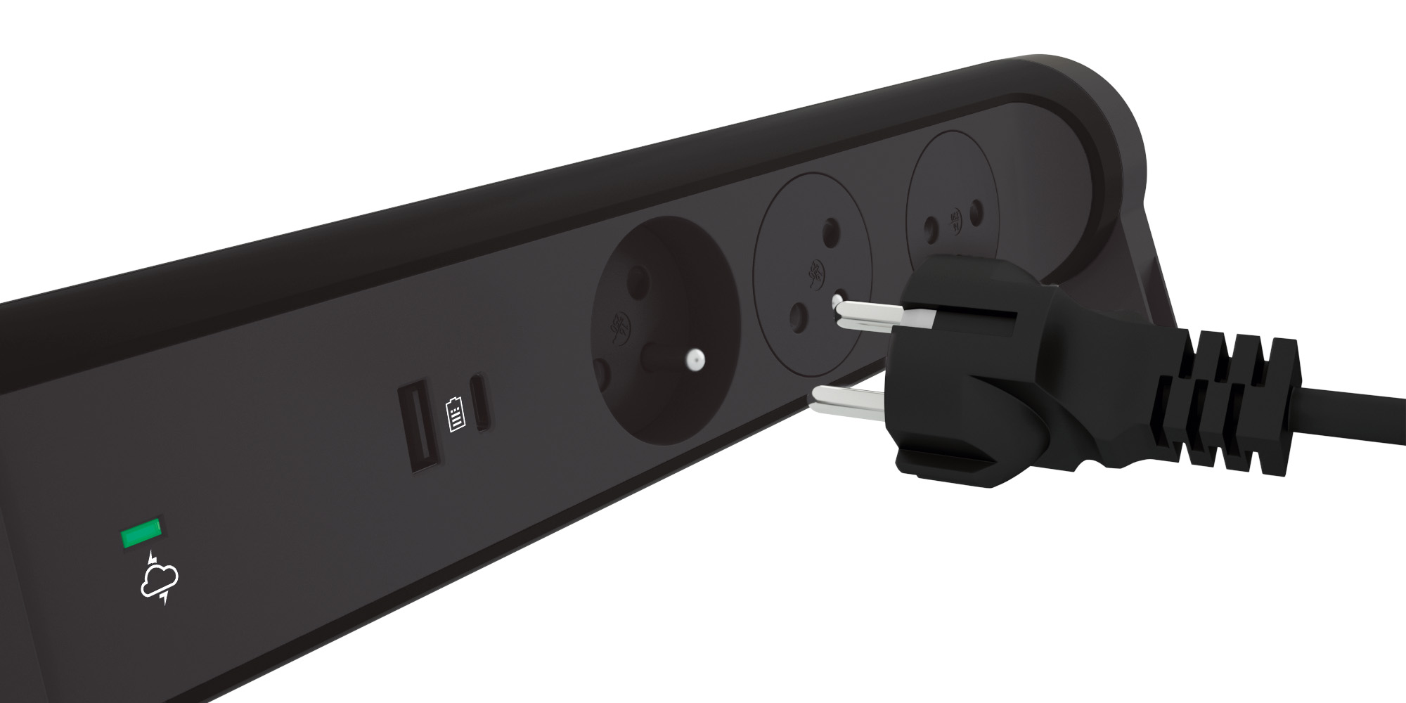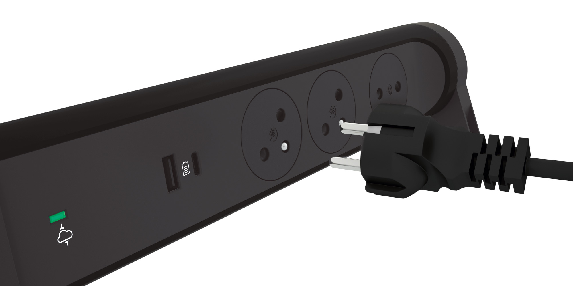 PRZEDŁUŻACZ PREMIUM, OBROTOWY, 3X2P+Z, USB A+C, Z OGRANICZNIKIEM PRZEPIĘĆ, Z PRZEWODEM 1.5 METRA 3X1.0 MM2 - CZARNY/GRAFITOWY, Legrand