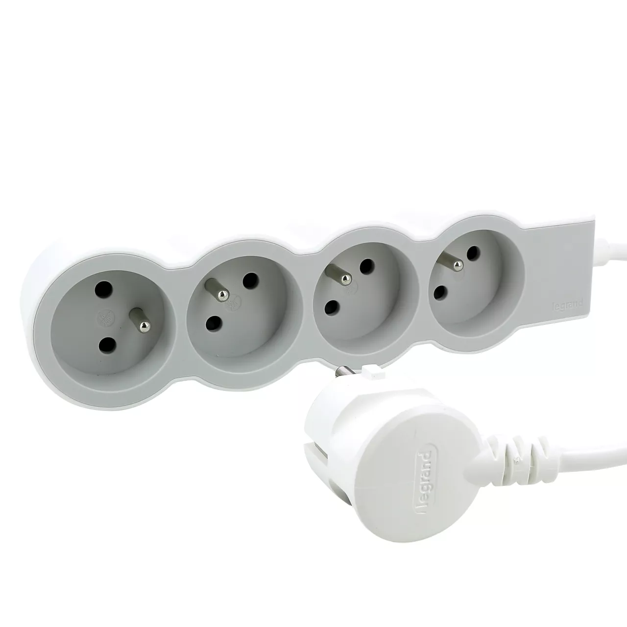 PRZEDŁUŻACZ STANDARD 4X2P+Z, Z PRZEWODEM 1.5 METRA 3X1.0 MM2 - BIAŁY/JASNOSZARY, Legrand