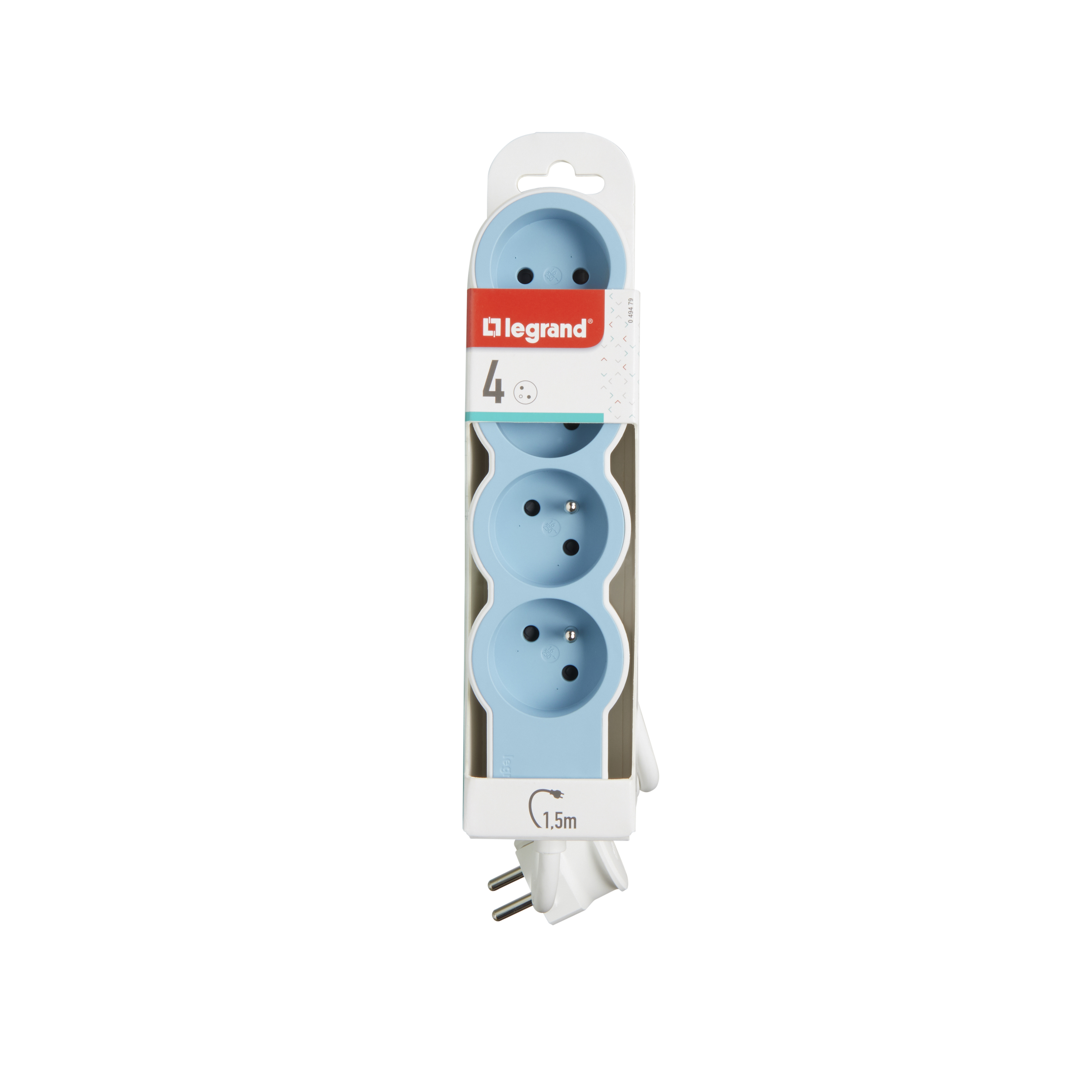 PRZEDŁUŻACZ STANDARD 4X2P+Z, Z PRZEWODEM 1.5 METRA 3X1.0 MM2 - BIAŁY/BŁĘKITNY, Legrand