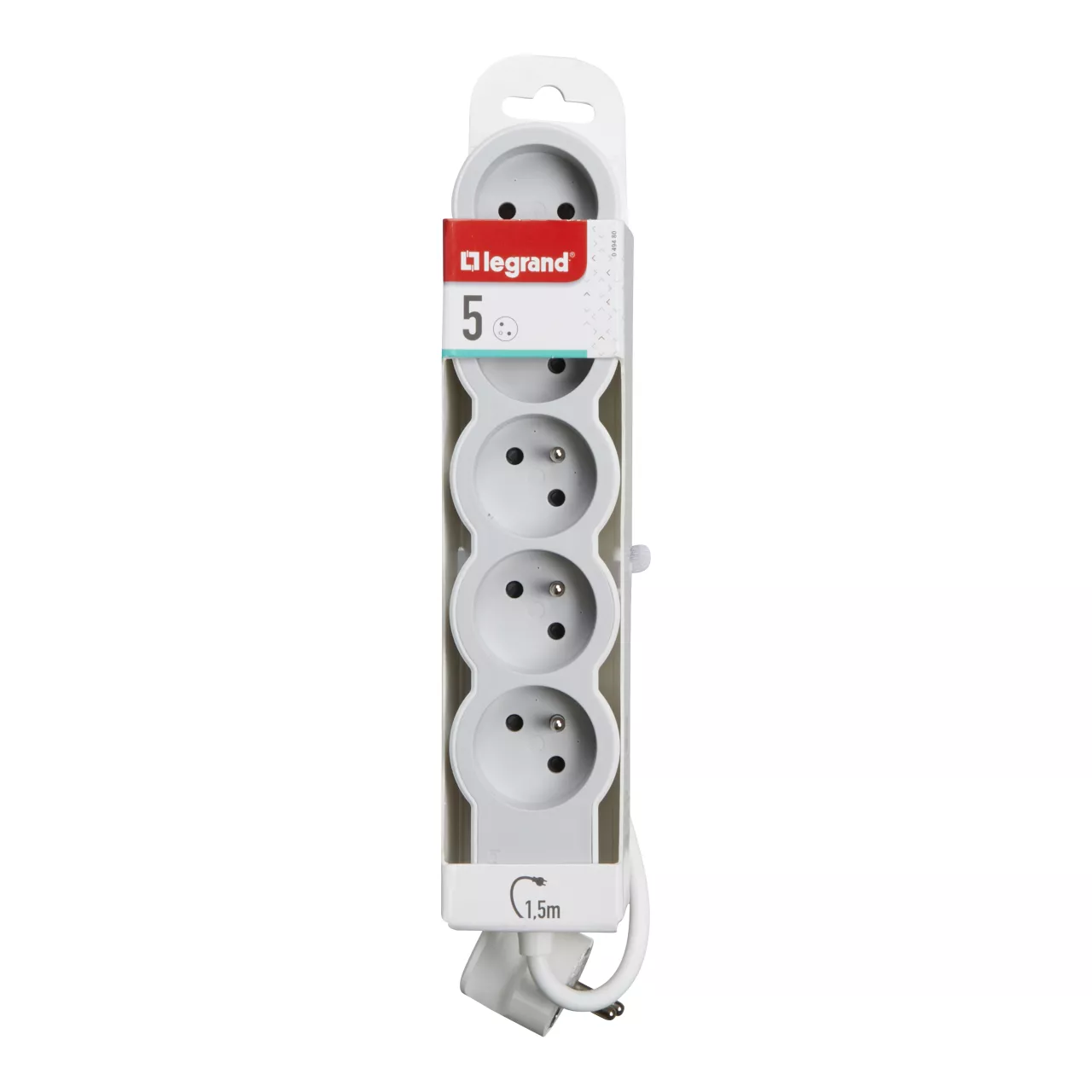 PRZEDŁUŻACZ STANDARD 5X2P+Z, Z PRZEWODEM 1.5 METRA 3X1.0 MM2 - BIAŁY/JASNOSZARY, Legrand