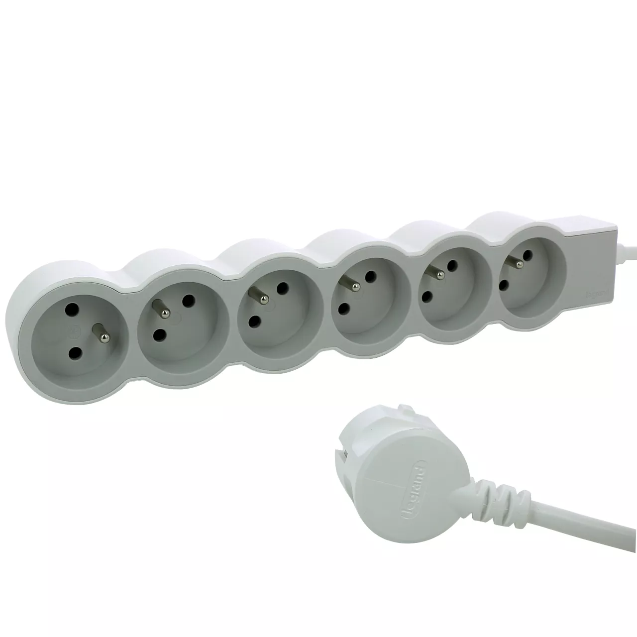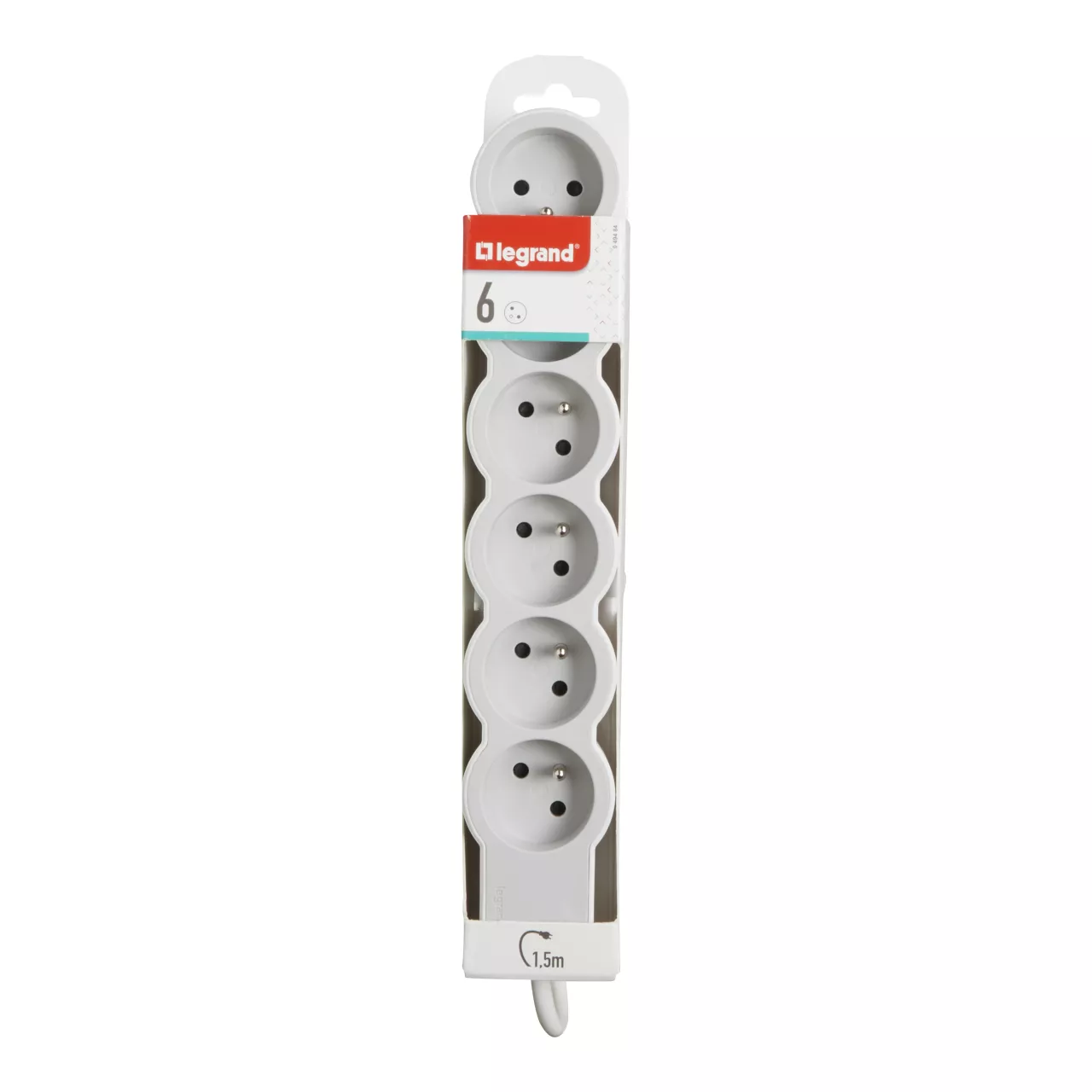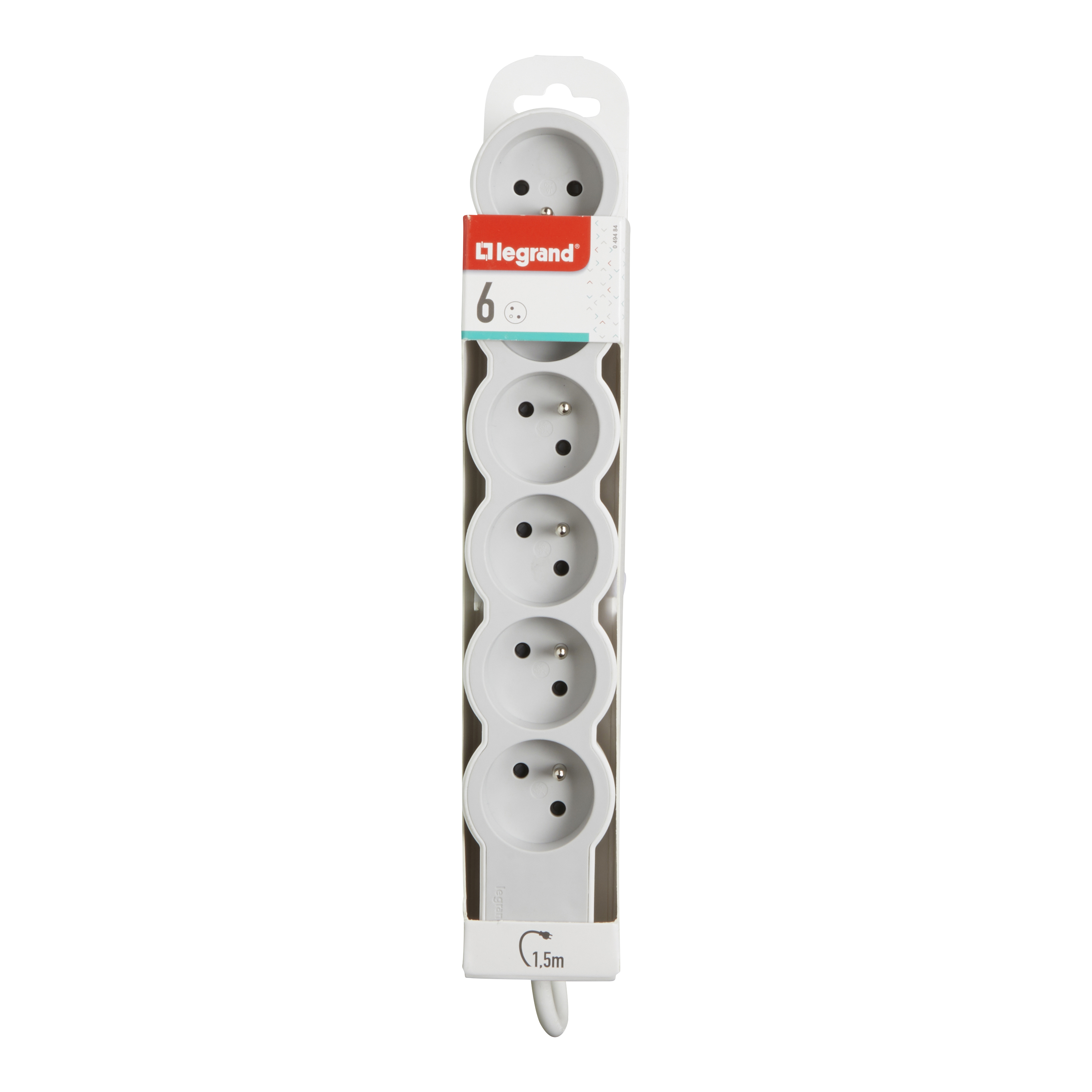 PRZEDŁUŻACZ STANDARD 6X2P+Z, Z PRZEWODEM 1.5 METRA 3X1.0 MM2 - BIAŁY/JASNOSZARY, Legrand