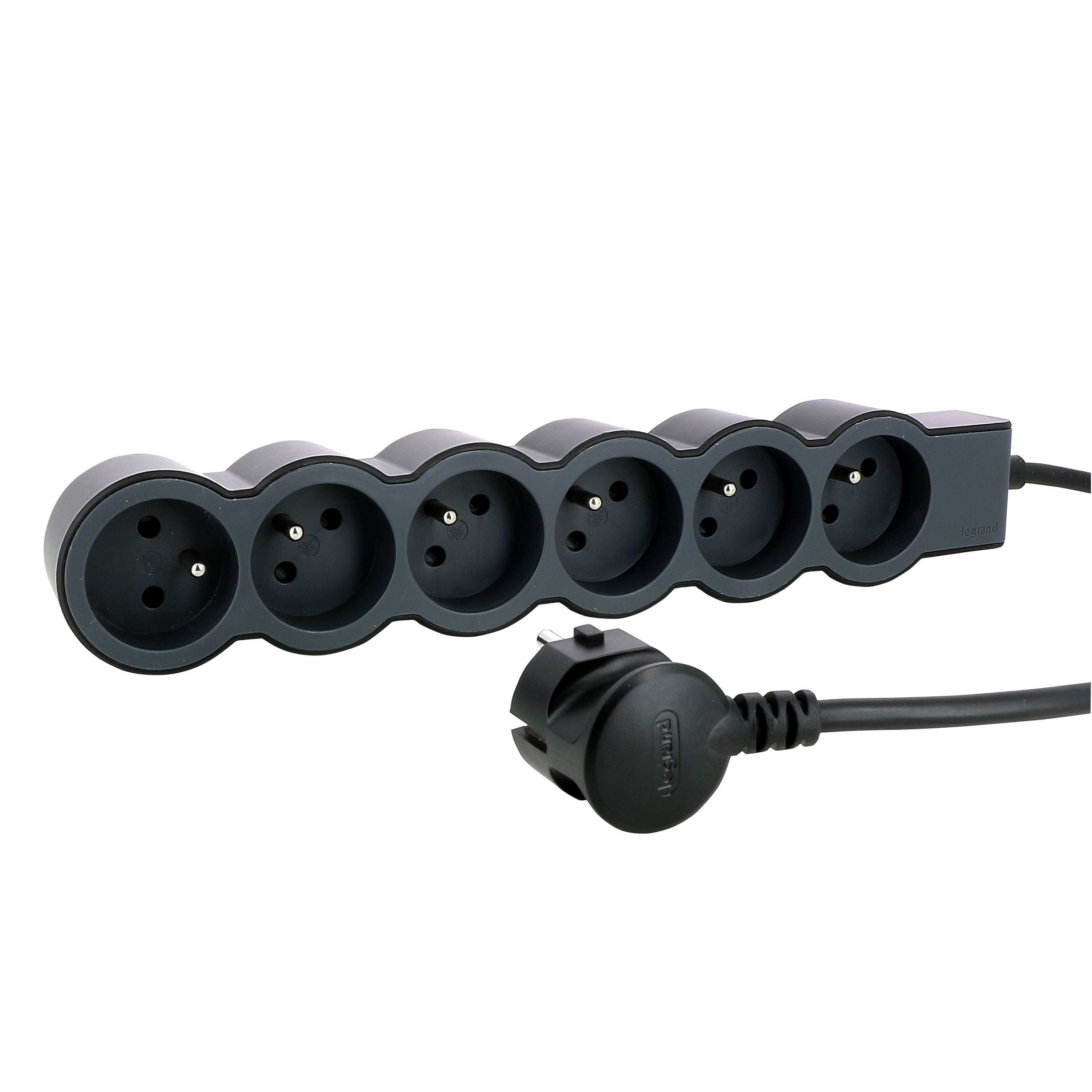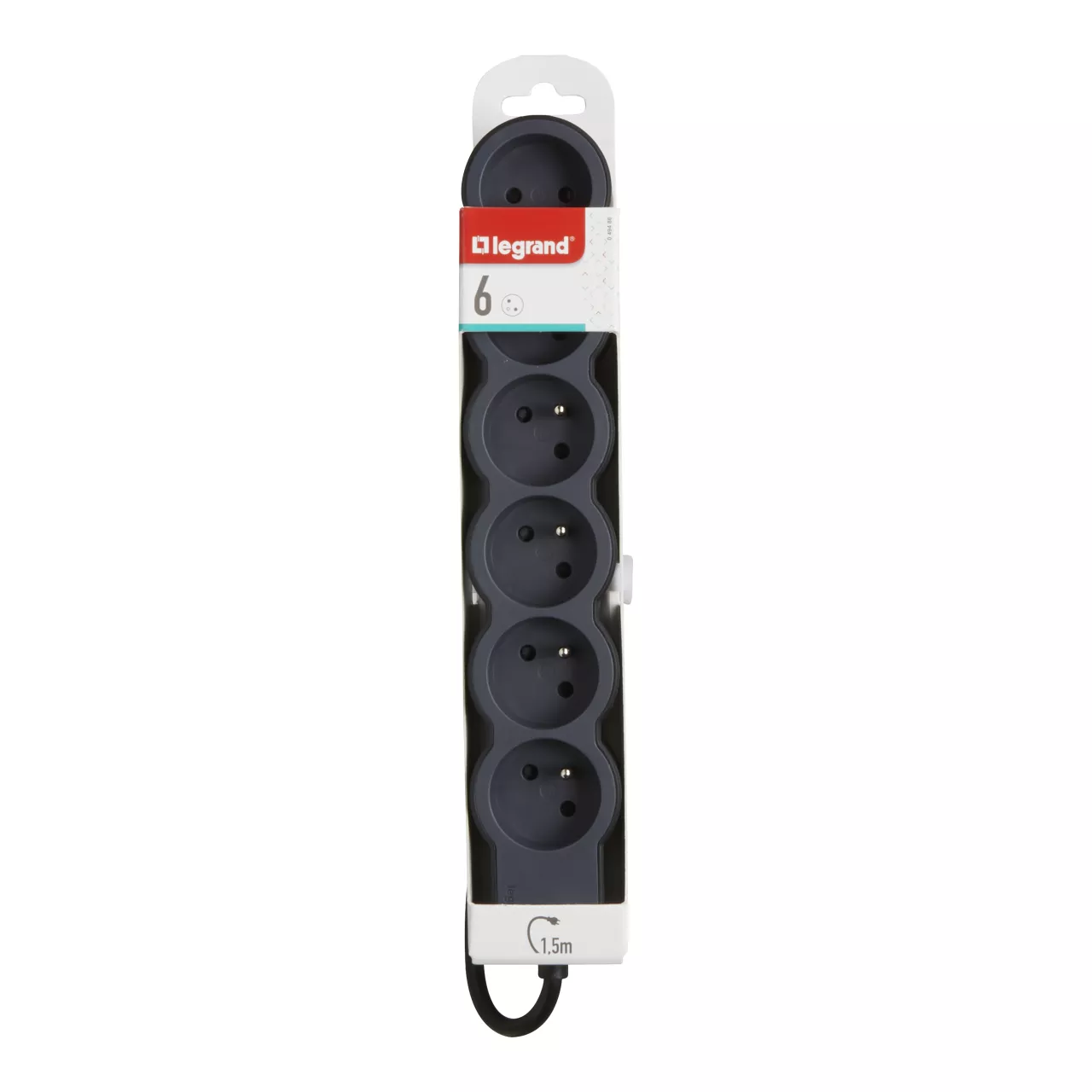 PRZEDŁUŻACZ STANDARD 6X2P+Z, Z PRZEWODEM 1.5 METRA 3X1.0 MM2 - CZARNY/GRAFITOWY, Legrand