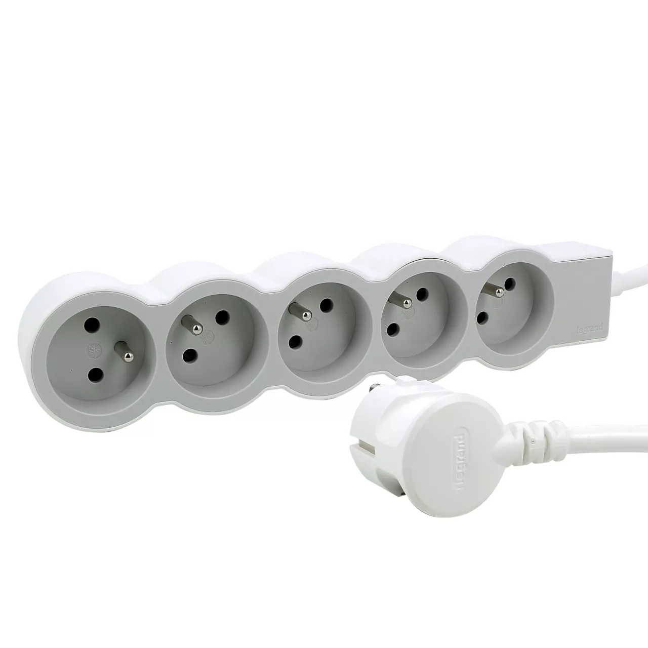 PRZEDŁUŻACZ STANDARD 5X2P+Z, Z PRZEWODEM 3.0 METRA 3X1.5 MM2 - BIAŁY/JASNOSZARY, Legrand