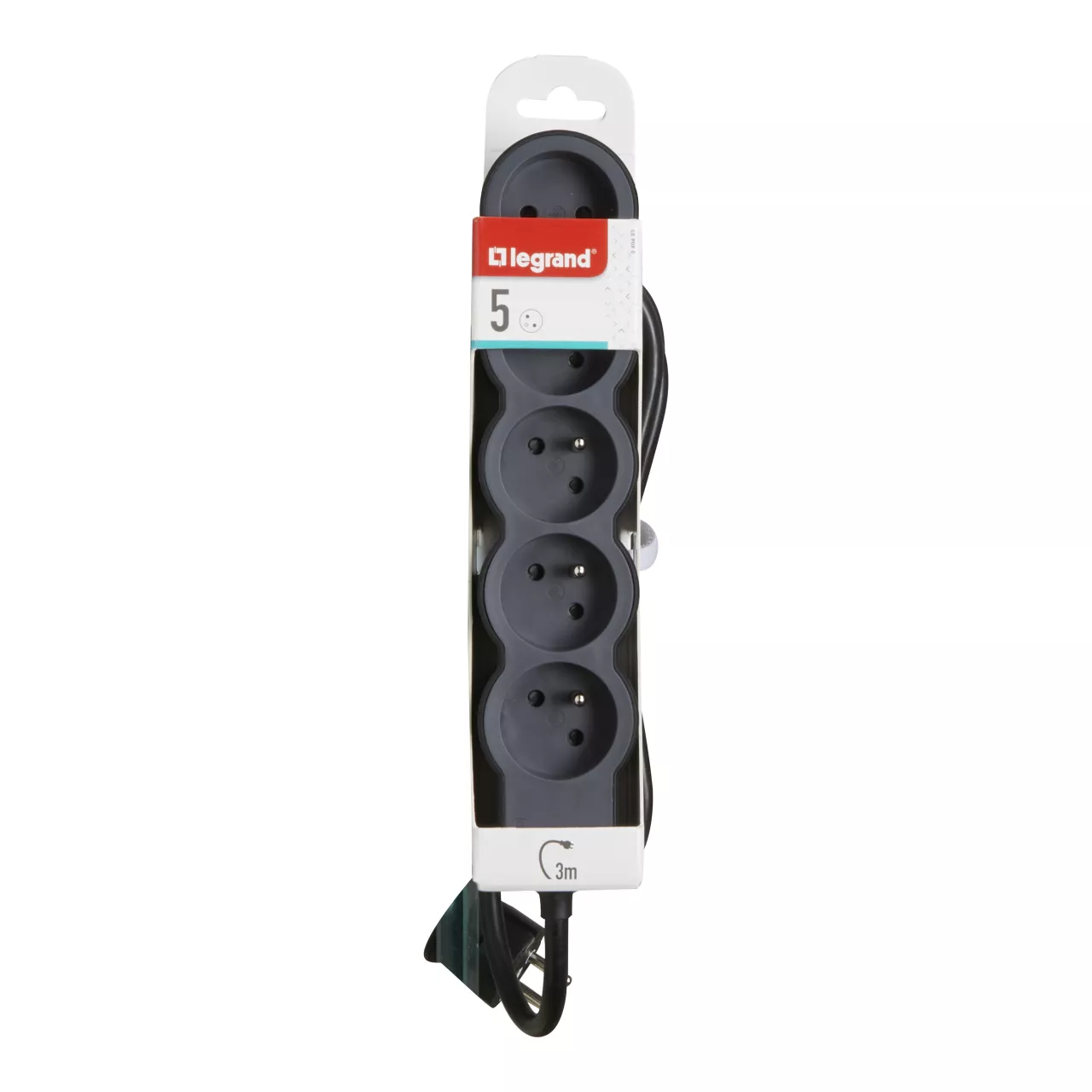 PRZEDŁUŻACZ STANDARD 5X2P+Z, Z PRZEWODEM 3.0 METRA 3X1.5 MM2 - CZARNY/GRAFITOWY, Legrand