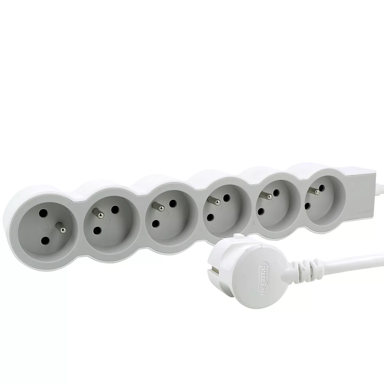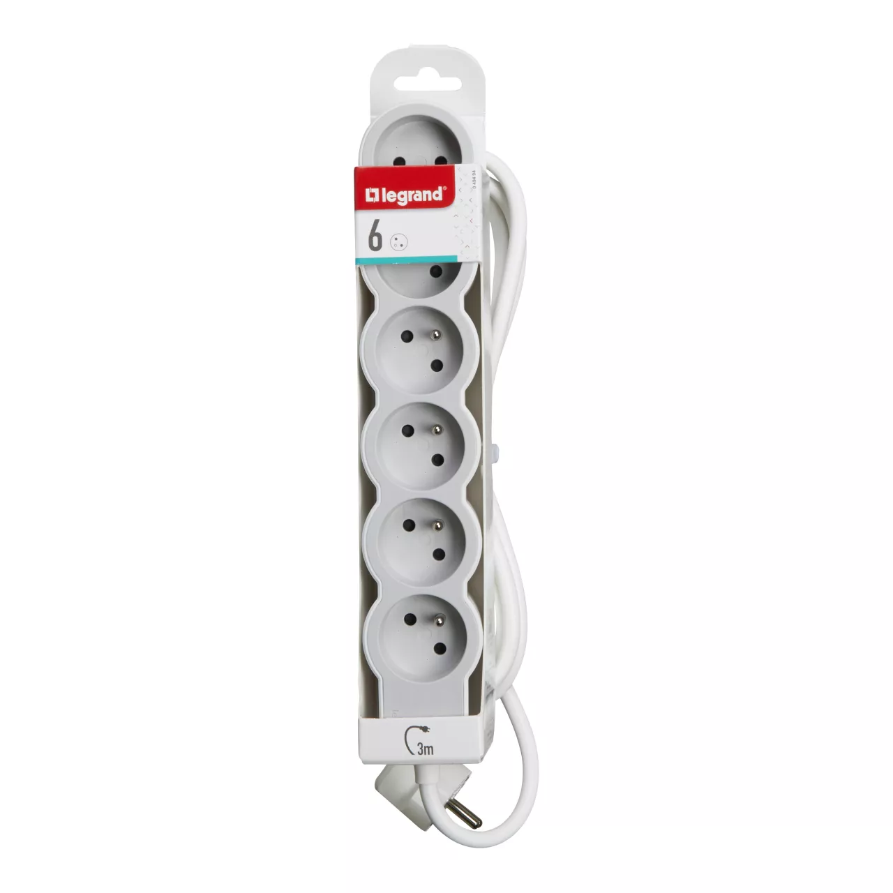 PRZEDŁUŻACZ STANDARD 6X2P+Z, Z PRZEWODEM 3.0 METRA 3X1.5 MM2 - BIAŁY/JASNOSZARY, Legrand