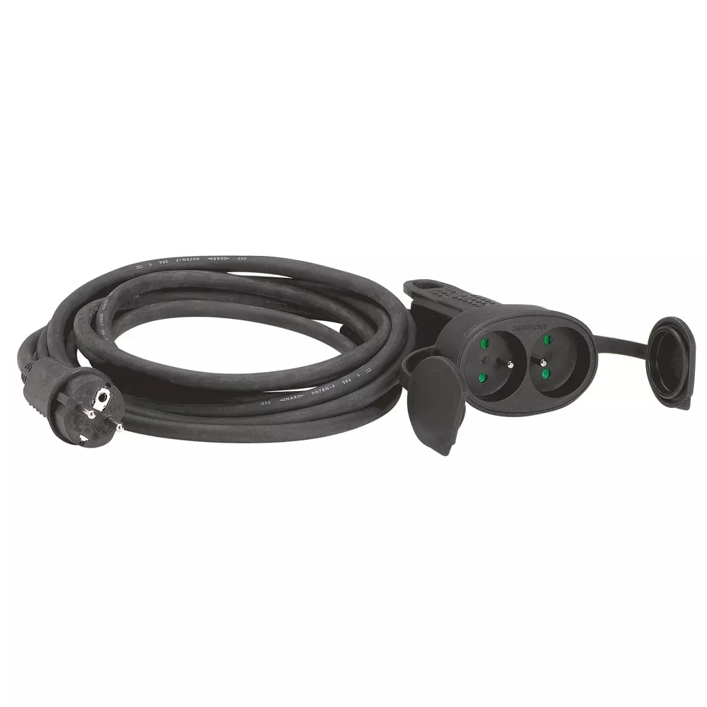 PRZEDŁUŻACZ GUMOWY 2X2P+Z IP44 - 10M - CZARNY, Legrand