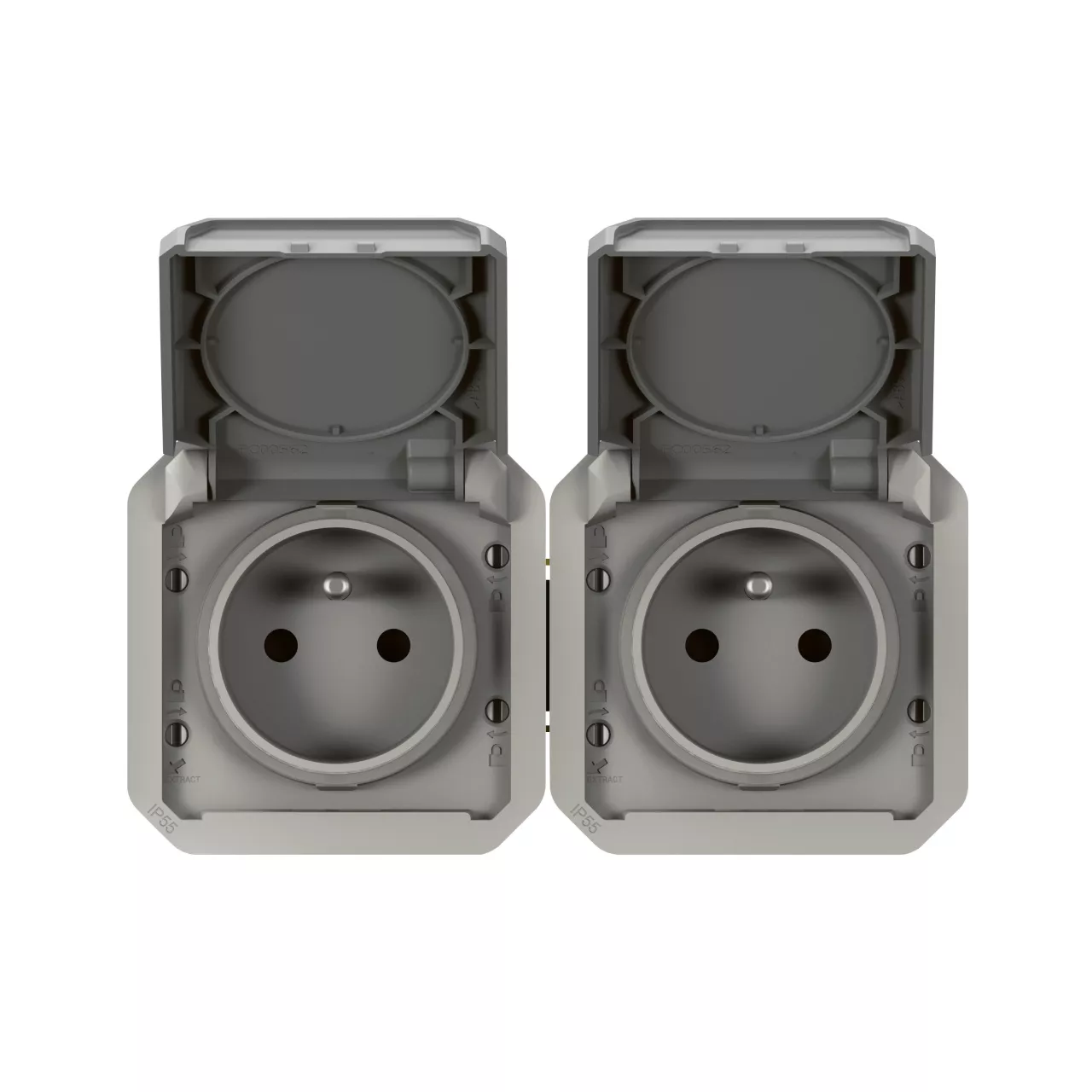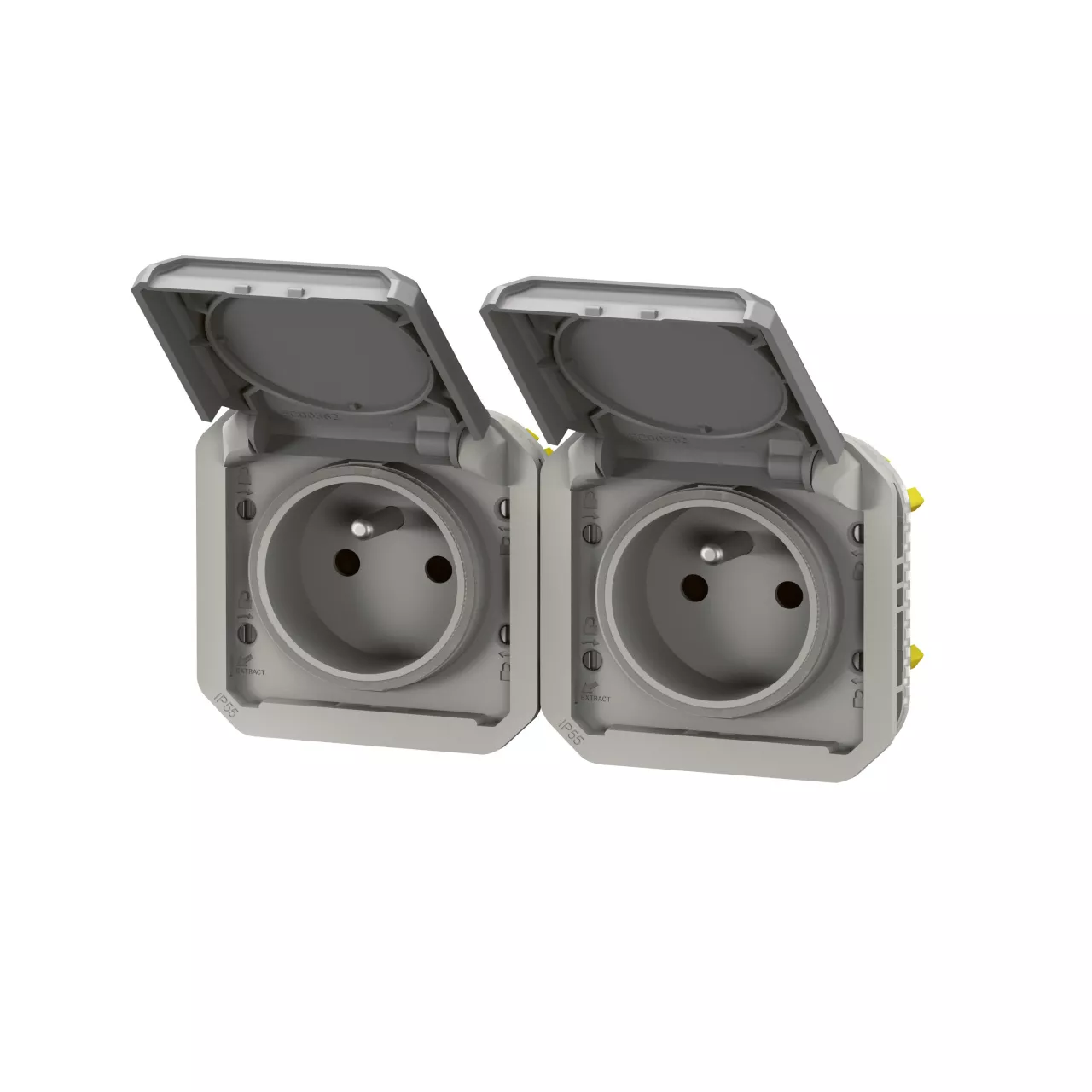 NOWE PLEXO - GNIAZDO 2X2P+Z POZIOME MECHANIZM 16 A - 250 V~ SZARE