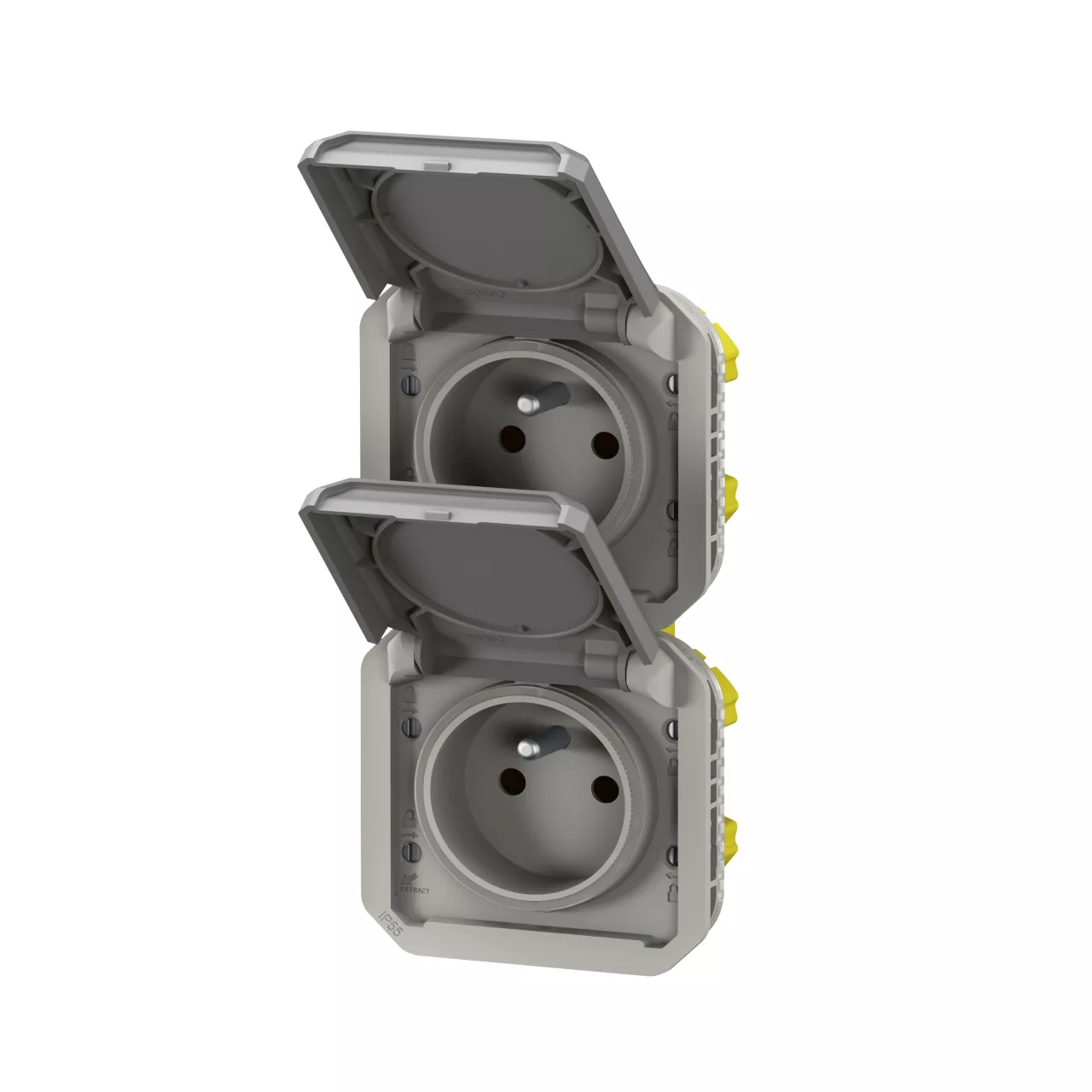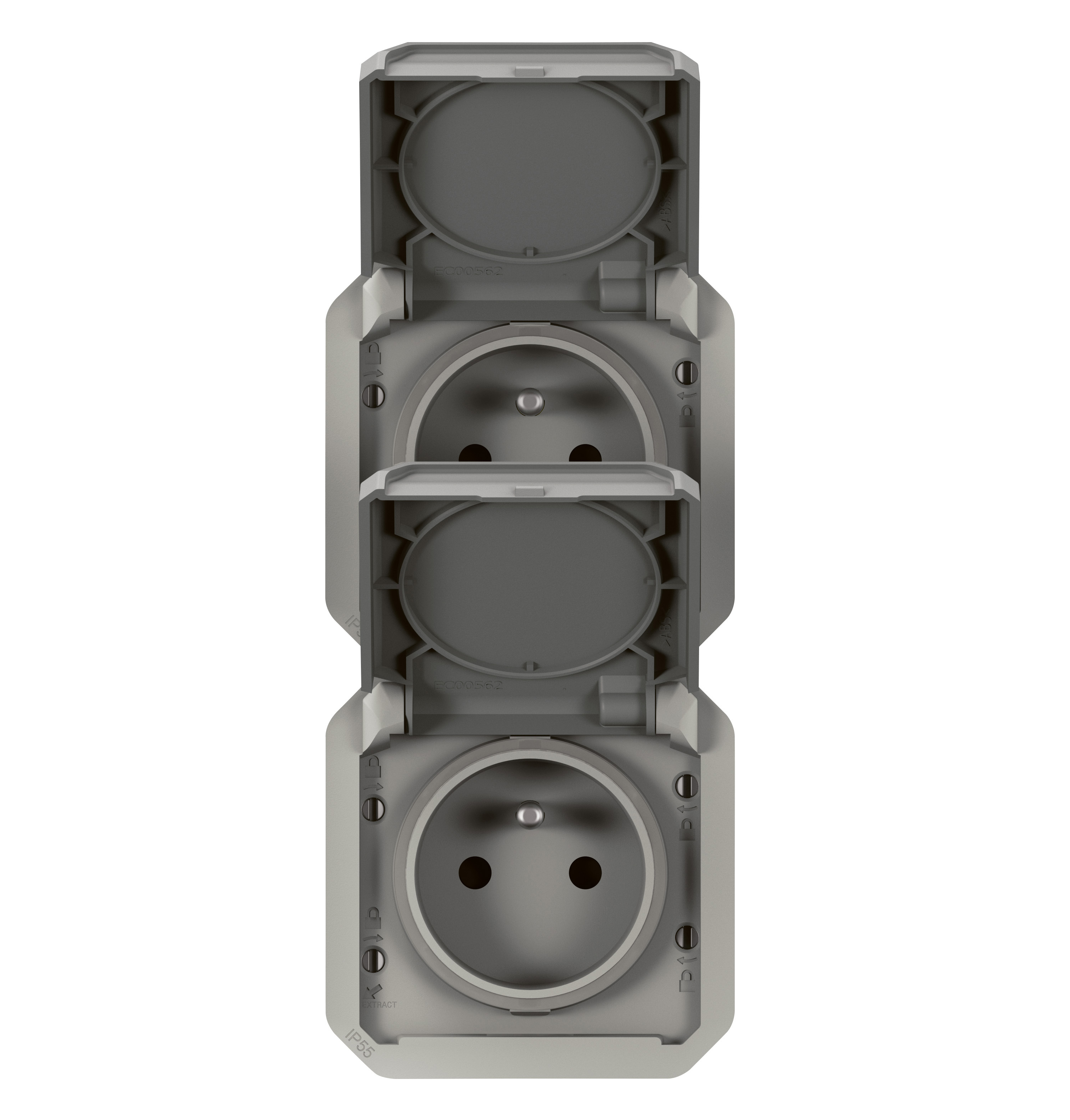 NOWE PLEXO - GNIAZDO 2X2P+Z PIONOWE MECHANIZM 16 A - 250 V~ SZARE