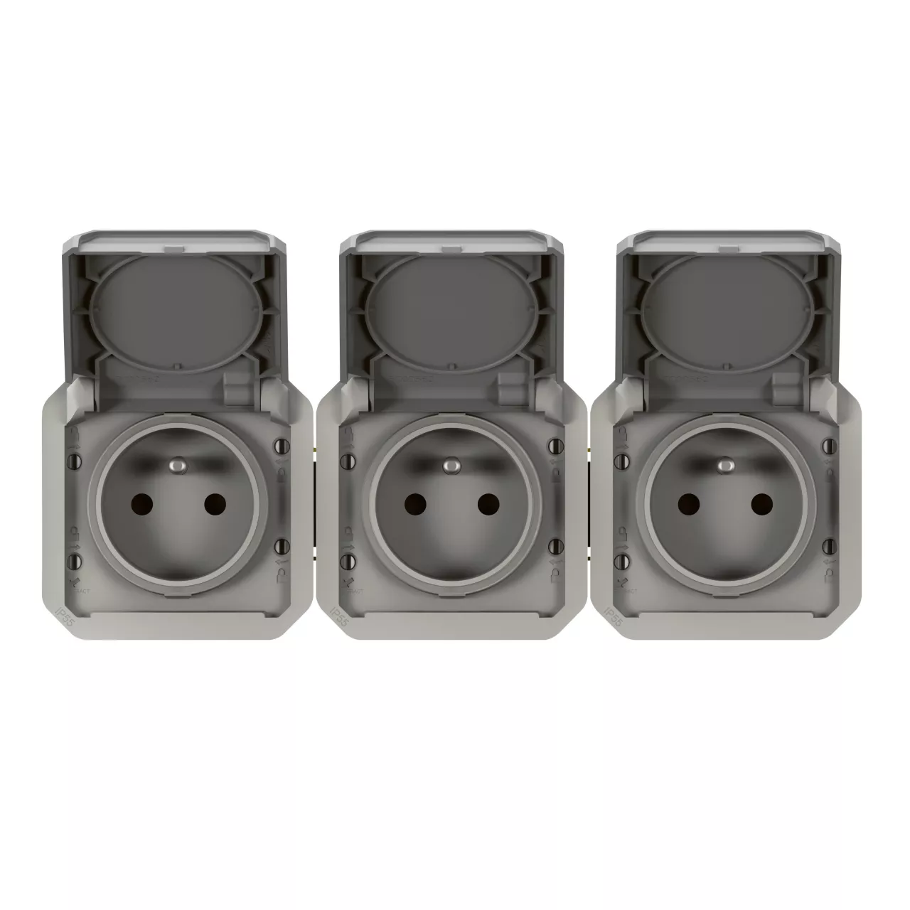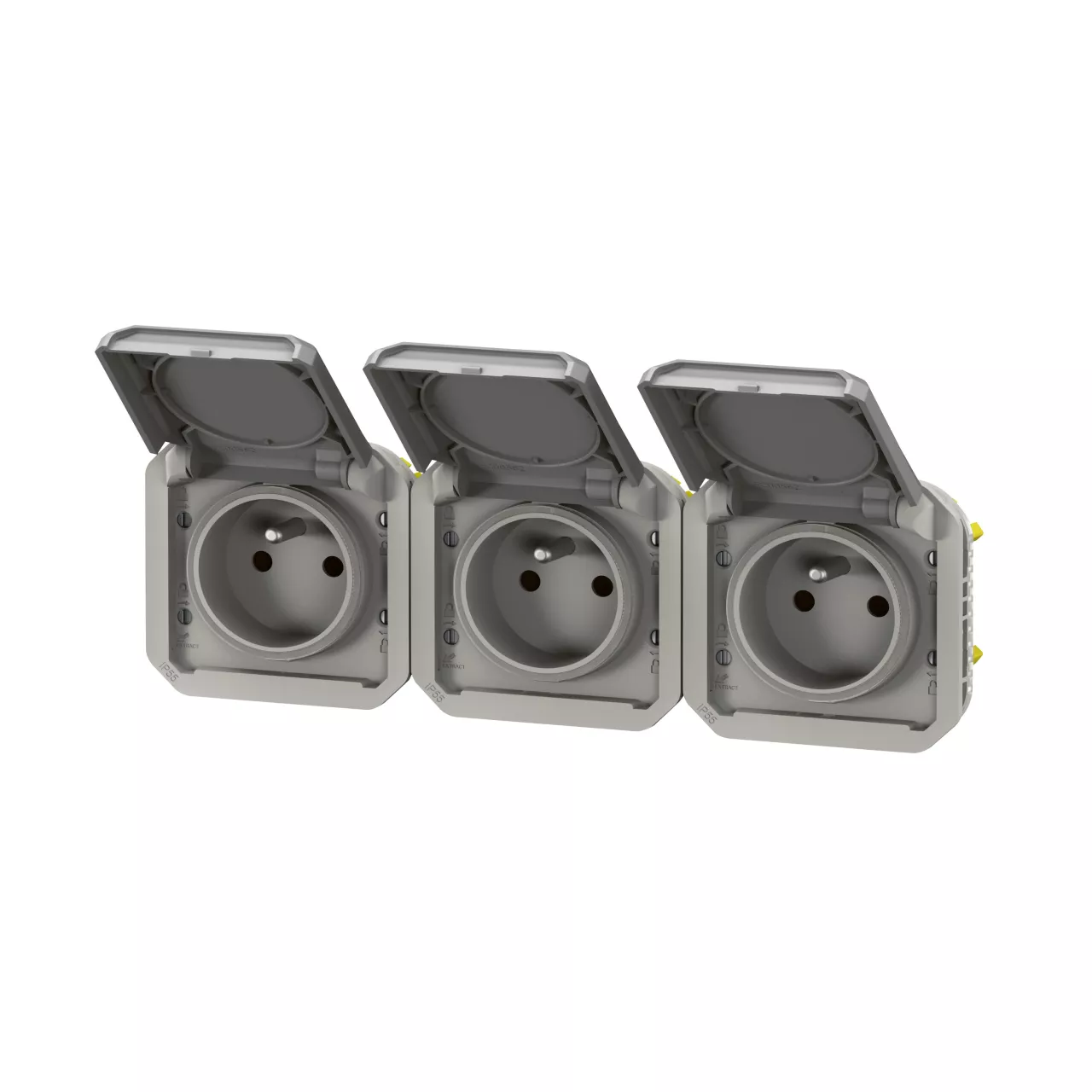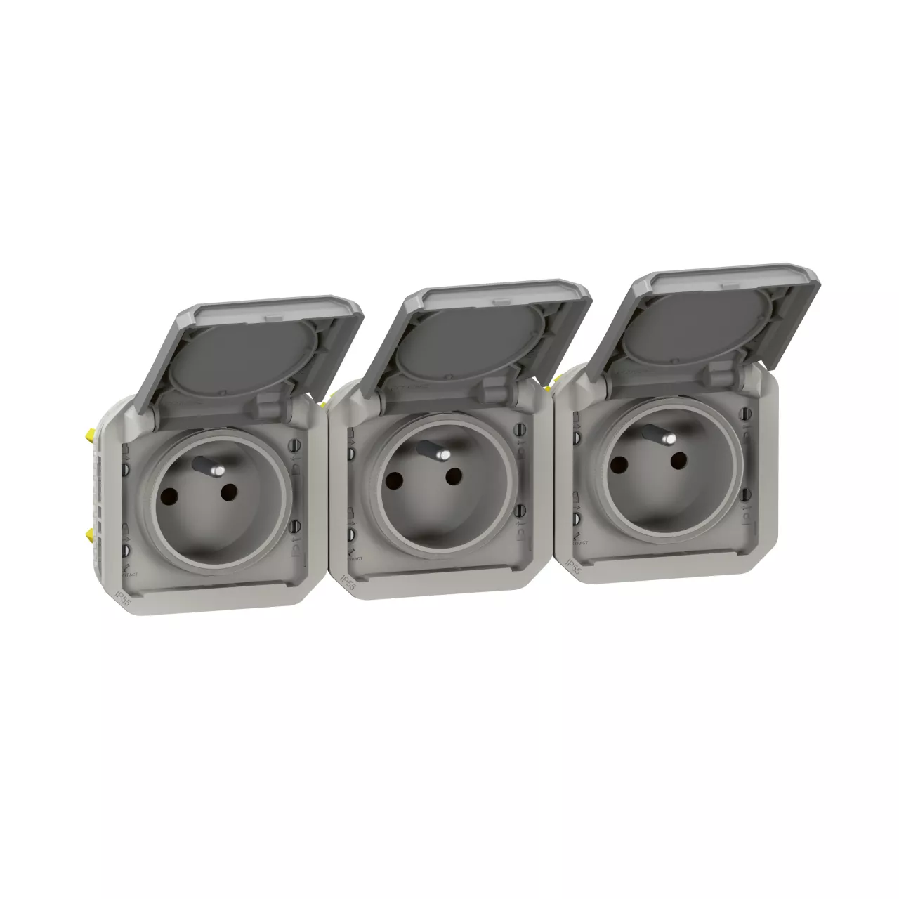 NOWE PLEXO - GNIAZDO 3X2P+Z POZIOME KOMPLET MECHANIZM 16 A - 250 V~ SZARE
