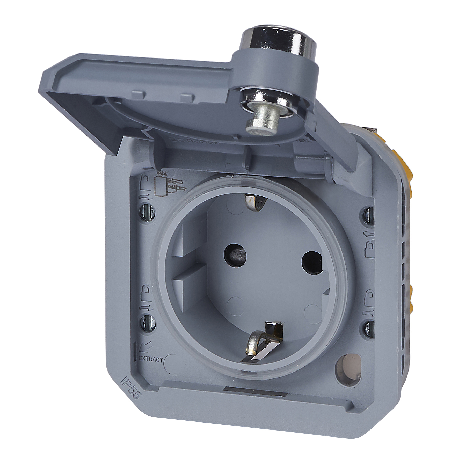NOWE PLEXO - GN. SCHUKO 2P+Z NA KLUCZ ZACISKI AUTO MECHANIZM 16A-250V~ SZARE