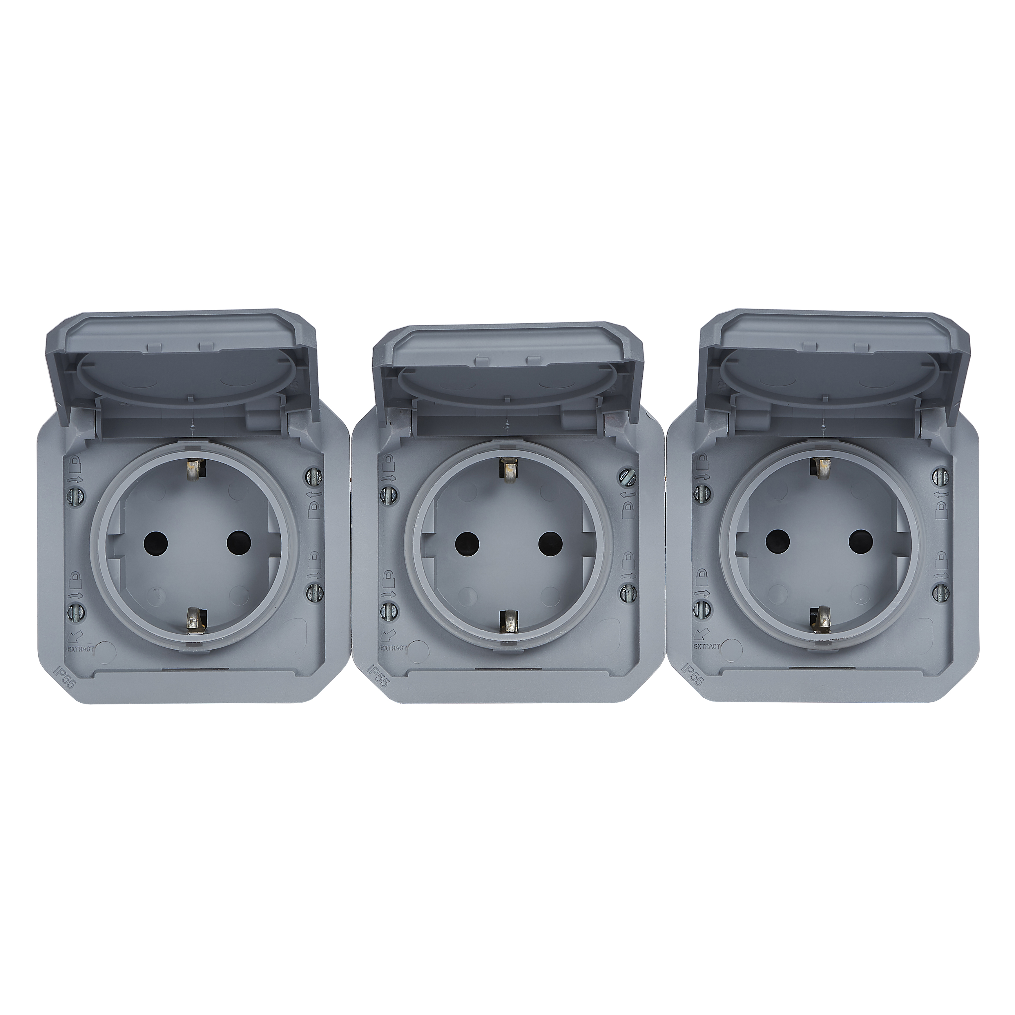 NOWE PLEXO - GNIAZDO SCHUKO 3X2P+Z POZIOME MECHANIZM 16A-250V~ SZARE