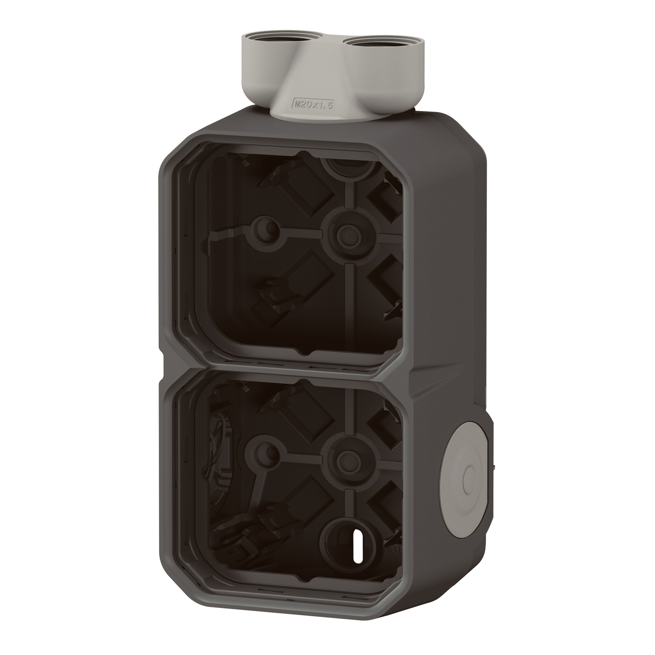 NOWE PLEXO - PUSZKA NATYNKOWA PODWÓJNA Z PRZEPUSTEM KABLOWYM ISO20 ANTRACYT