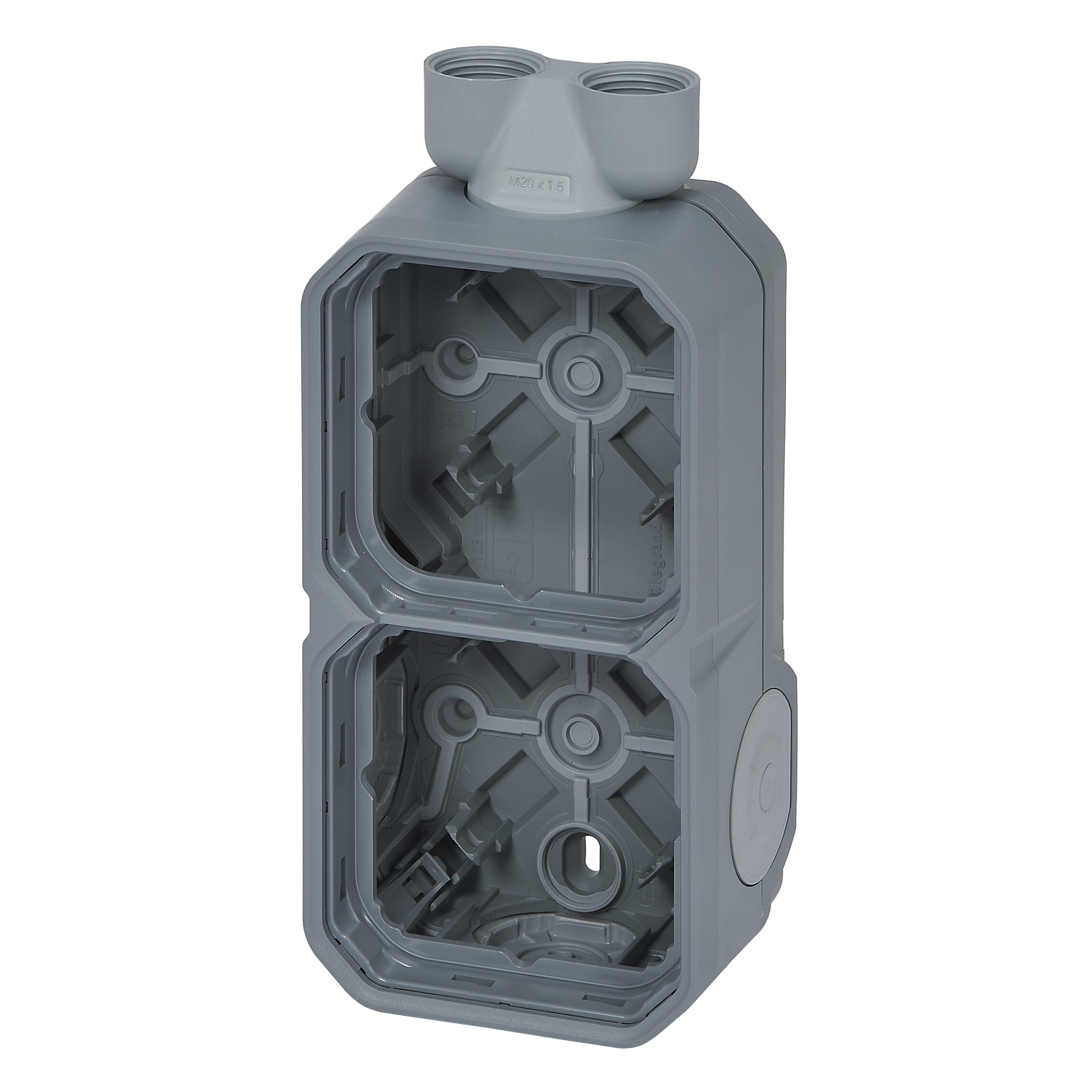 NOWE PLEXO - PUSZKA NATYNKOWA PODWÓJNA Z PRZEPUSTEM KABLOWYM ISO20 SZARA