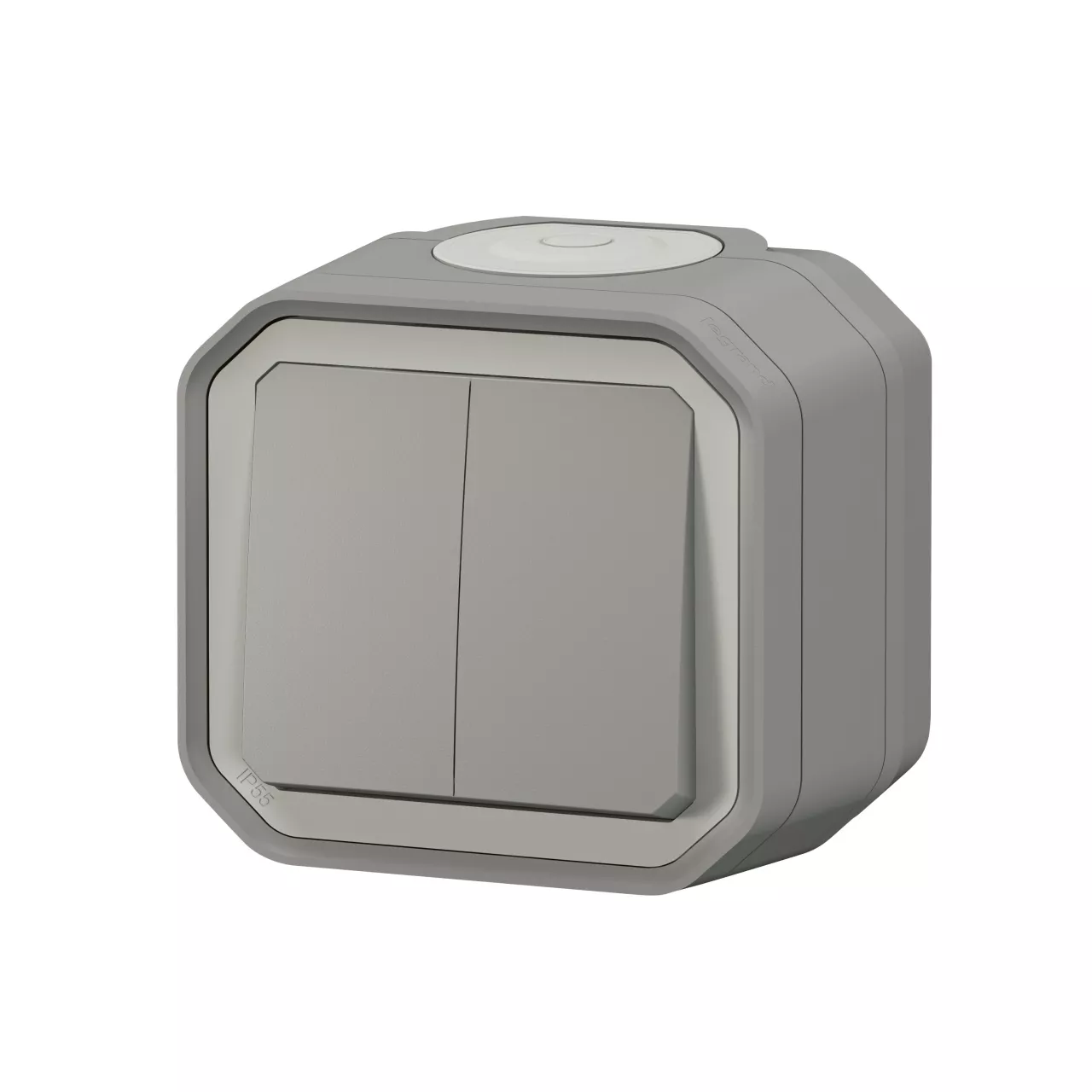 NOWE PLEXO - ŁĄCZ. PODWÓJNY/PRZY. PODWÓJNY KOMPLET NATYNK. 10AX-250 V~ SZARY