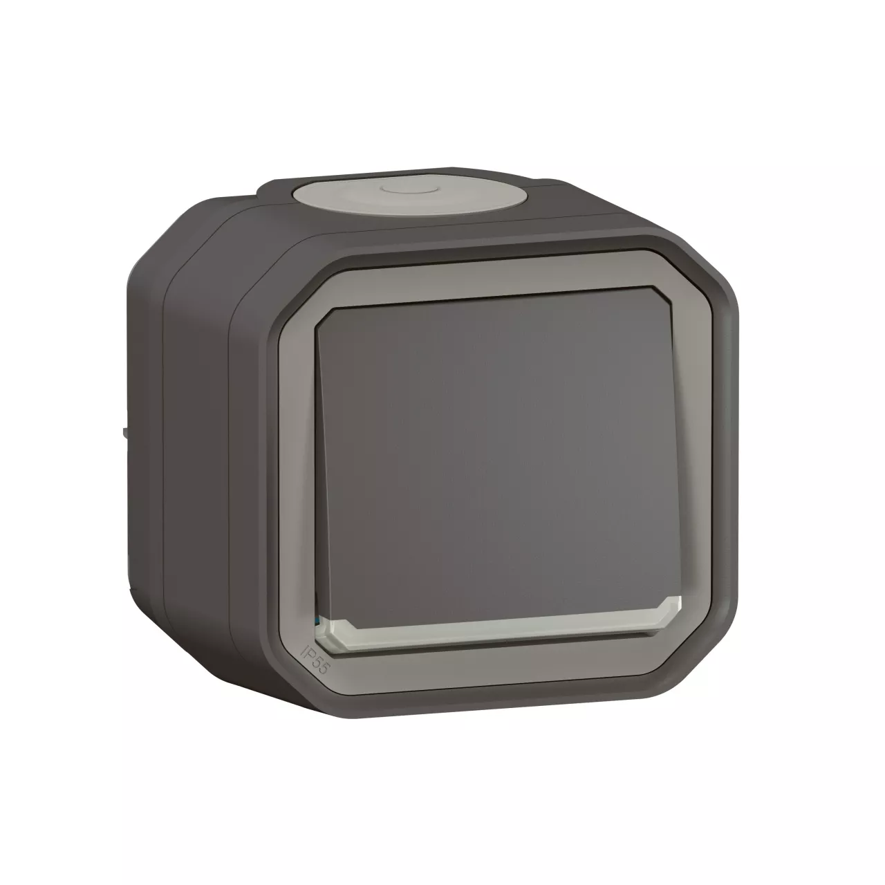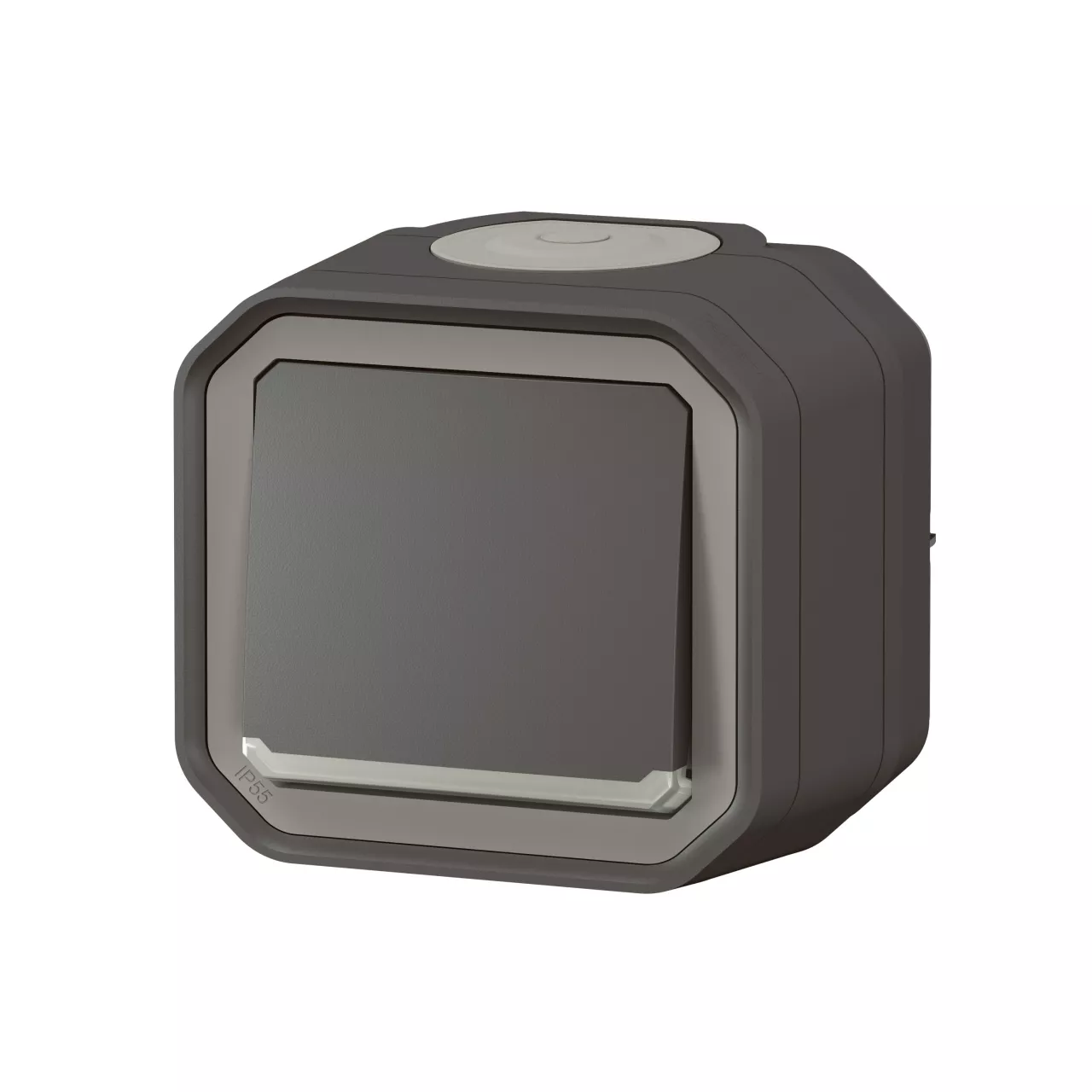 NOWE PLEXO - ŁĄCZNIK SCHODOWY ZE WSKAŹ. KOMPLET NATYNKOWY 10AX - 250 V~ ANTRACYT