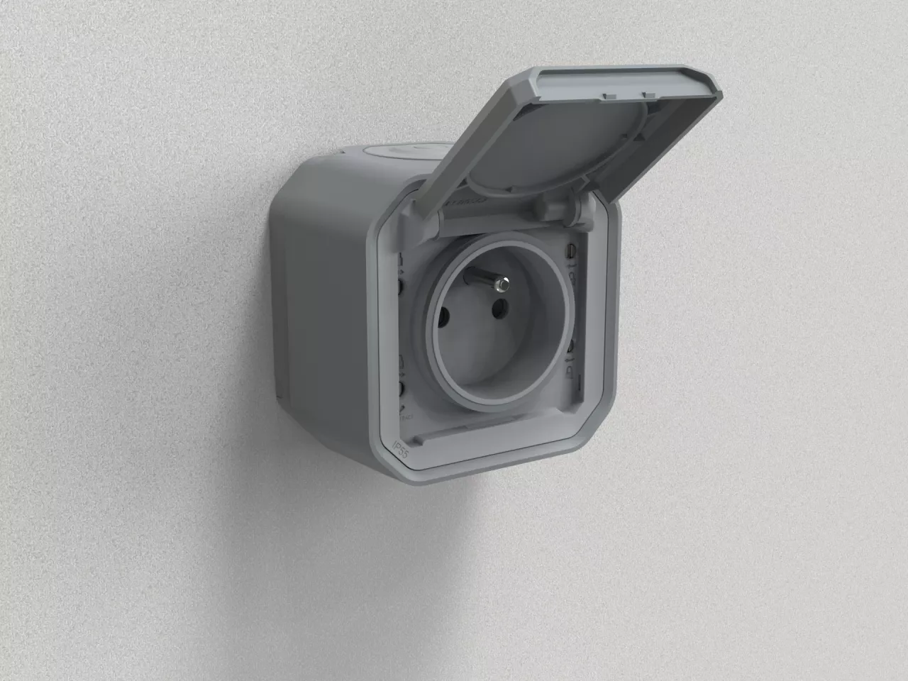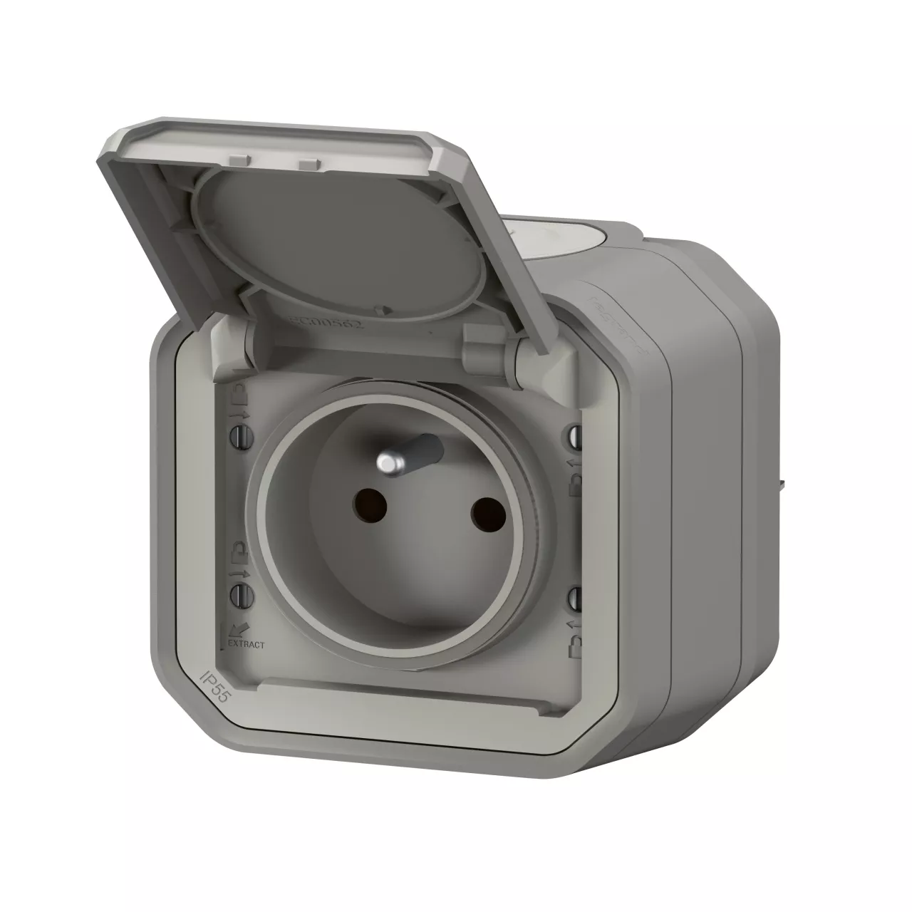 NOWE PLEXO - GNIAZDO 2P+Z ZACISKI AUTO KOMPLET NATYNKOWY 16 A - 250 V~ SZARE