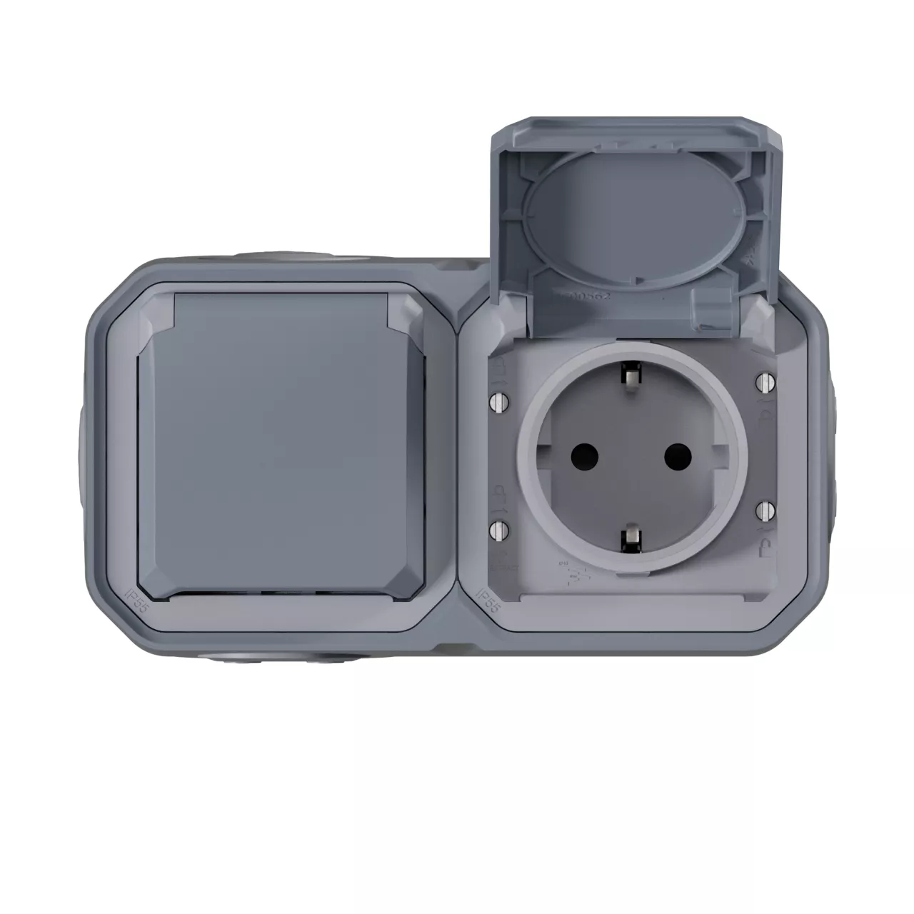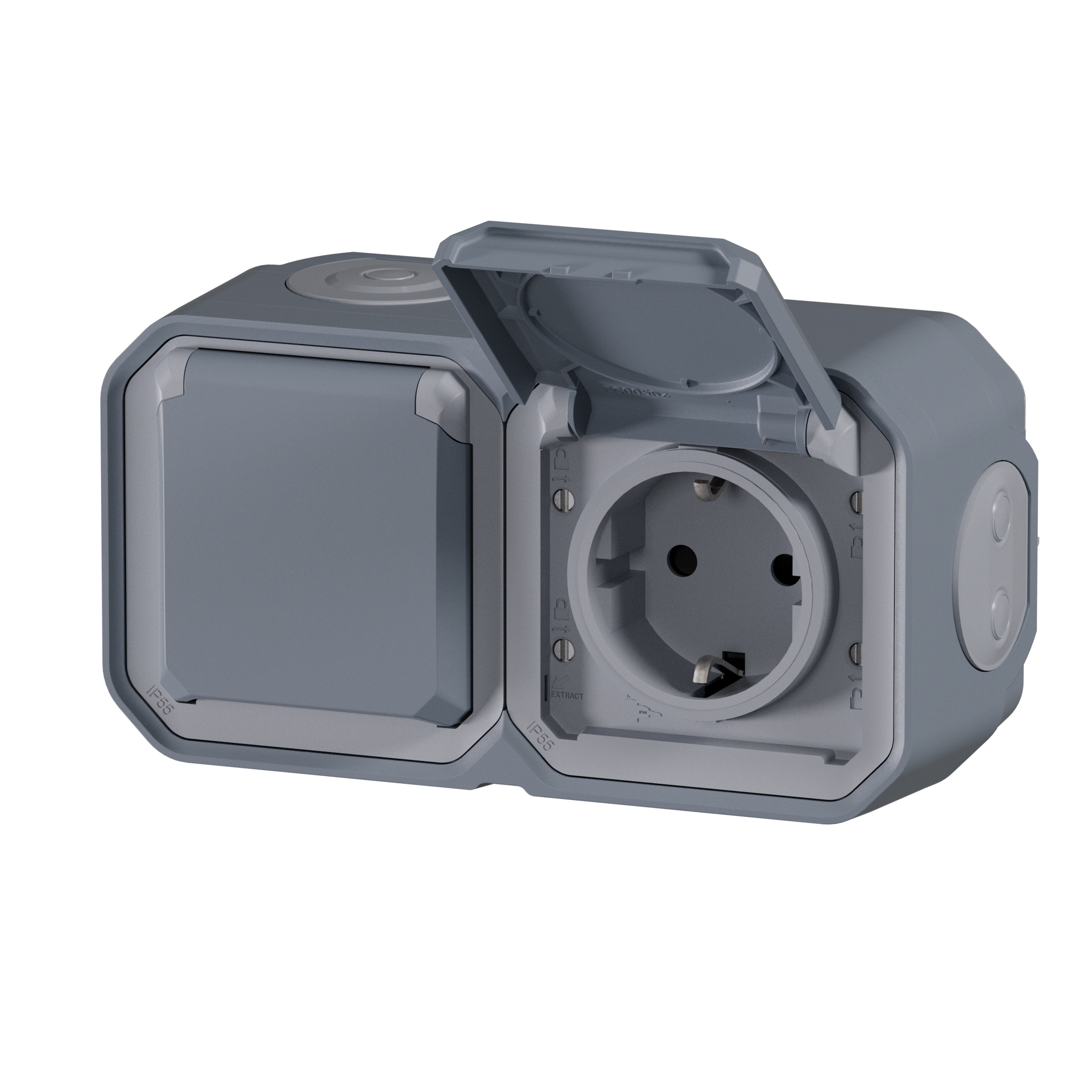 NOWE PLEXO - GNIAZDO SCHUKO 2X2P+Z POZIOME KOMPLET NATYNKOWY 16A-250V~ SZARE