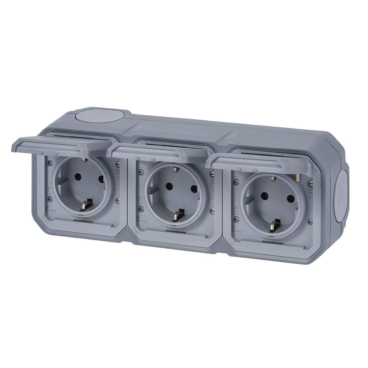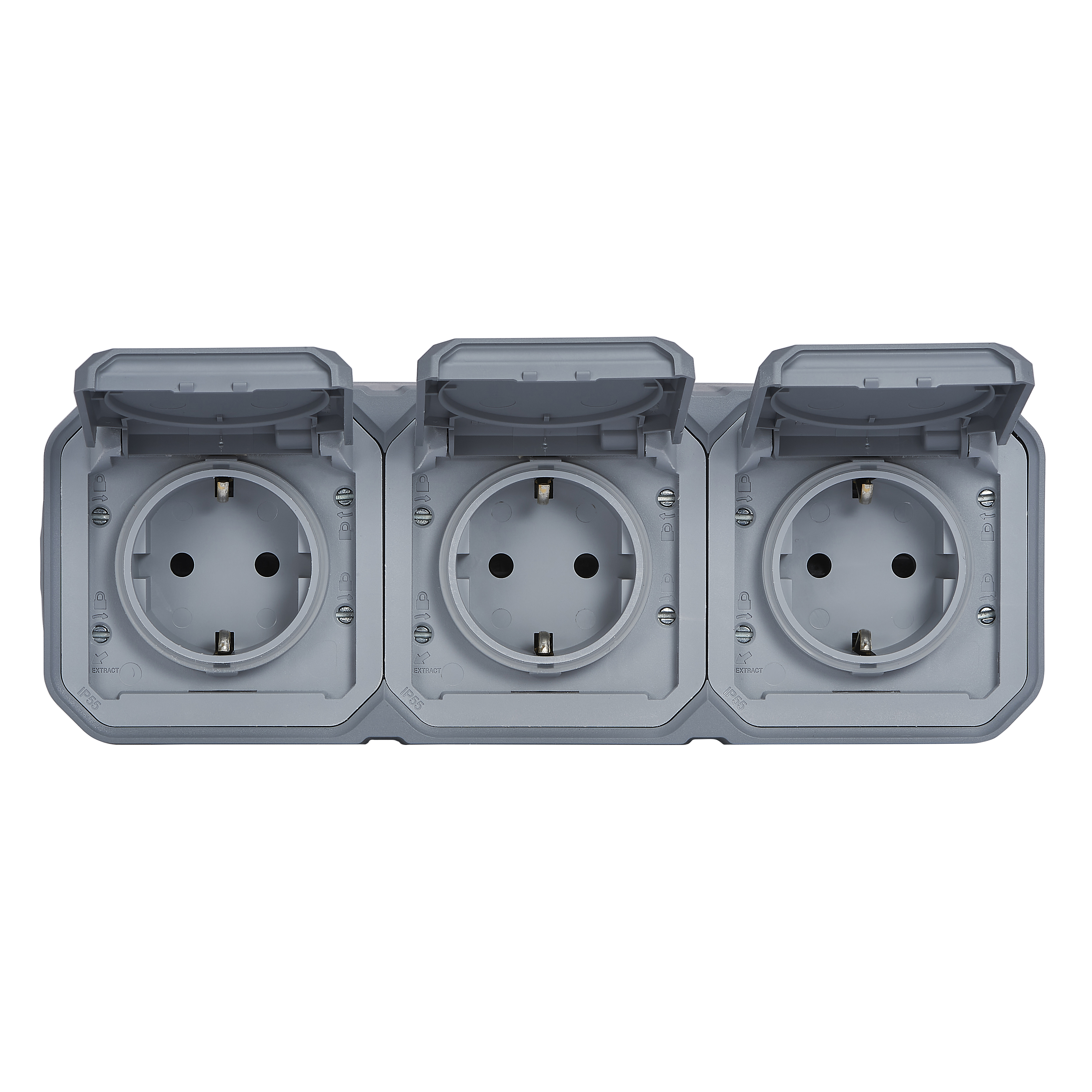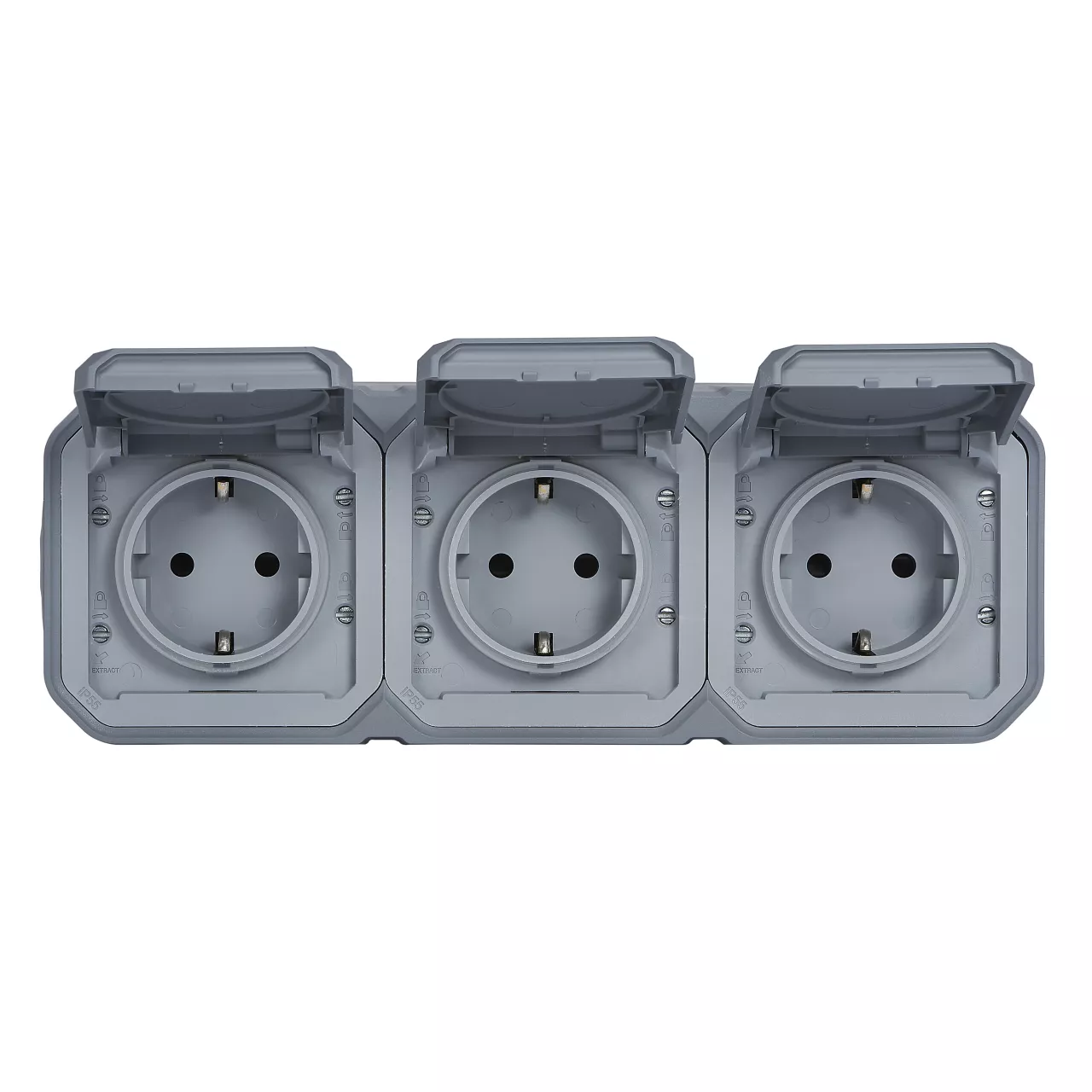 NOWE PLEXO - GNIAZDO SCHUKO 3X2P+Z POZIOME KOMPLET NATYNKOWY 16A-250V~ SZARE