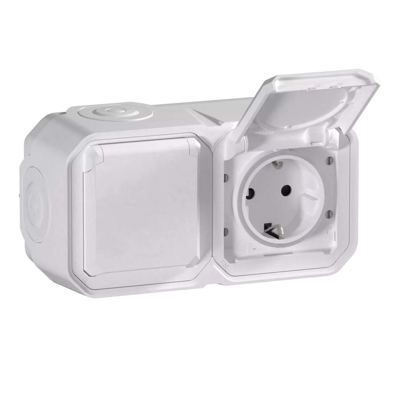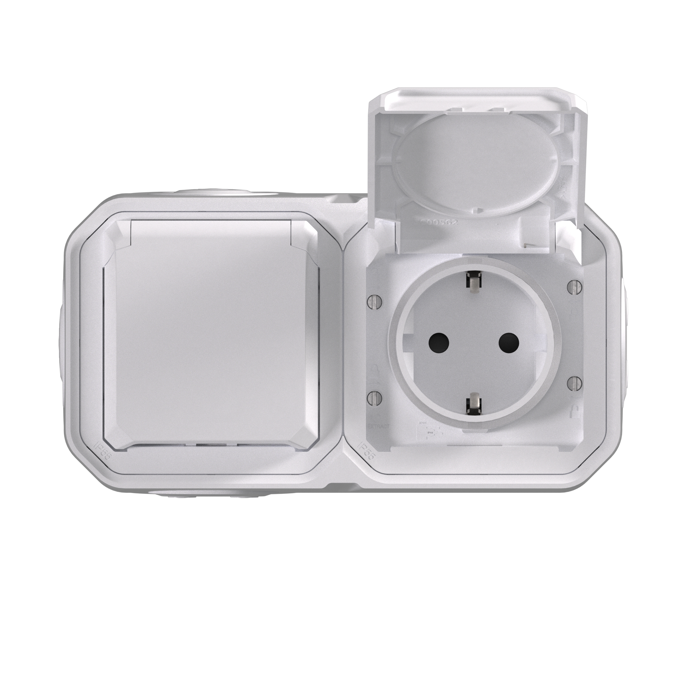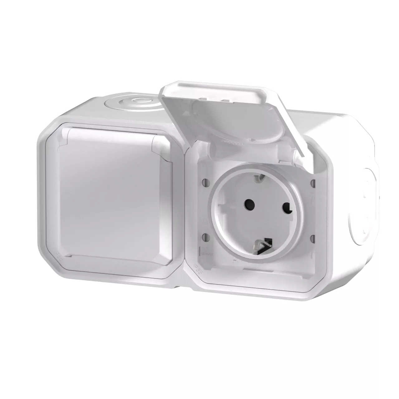 NOWE PLEXO - GNIAZDO SCHUKO 2X2P+Z POZIOME KOMPLET NATYNKOWY 16A-250V~ BIAŁE