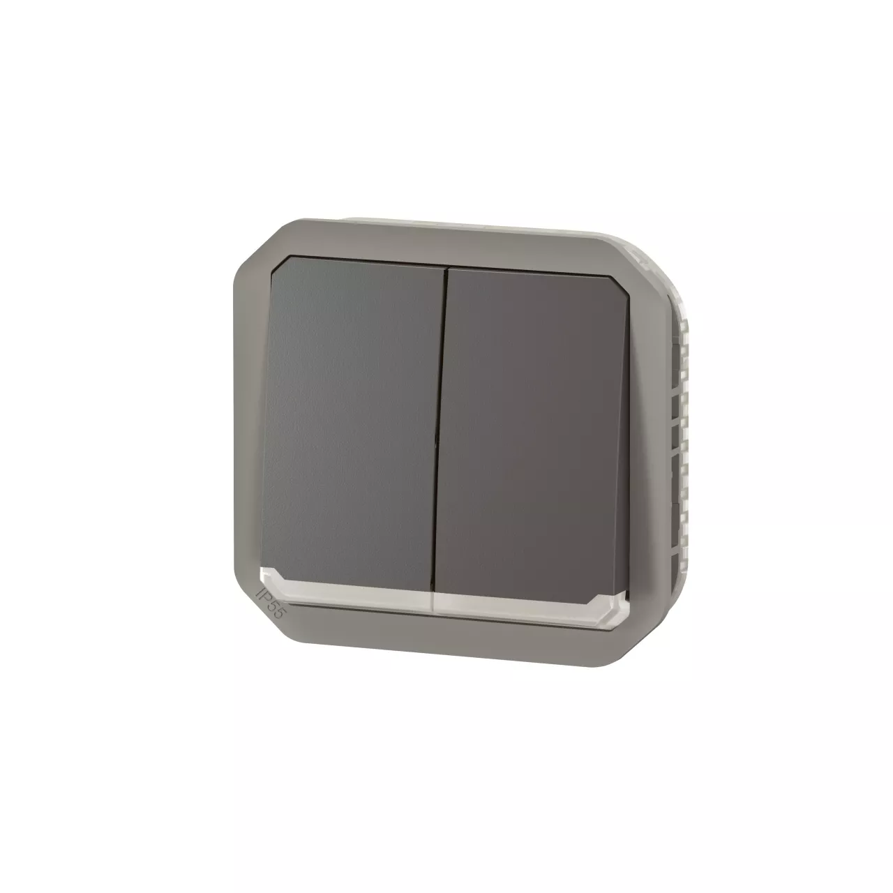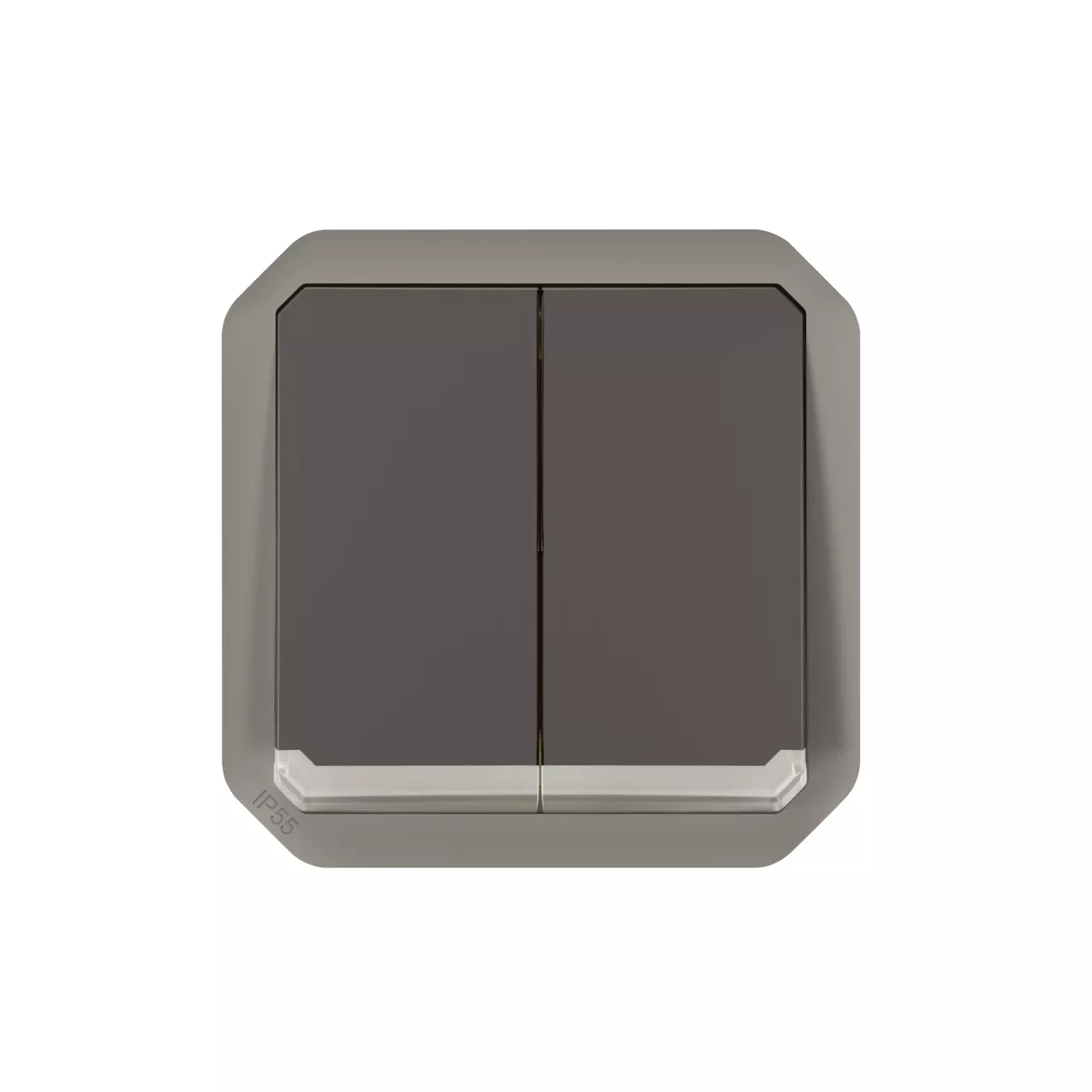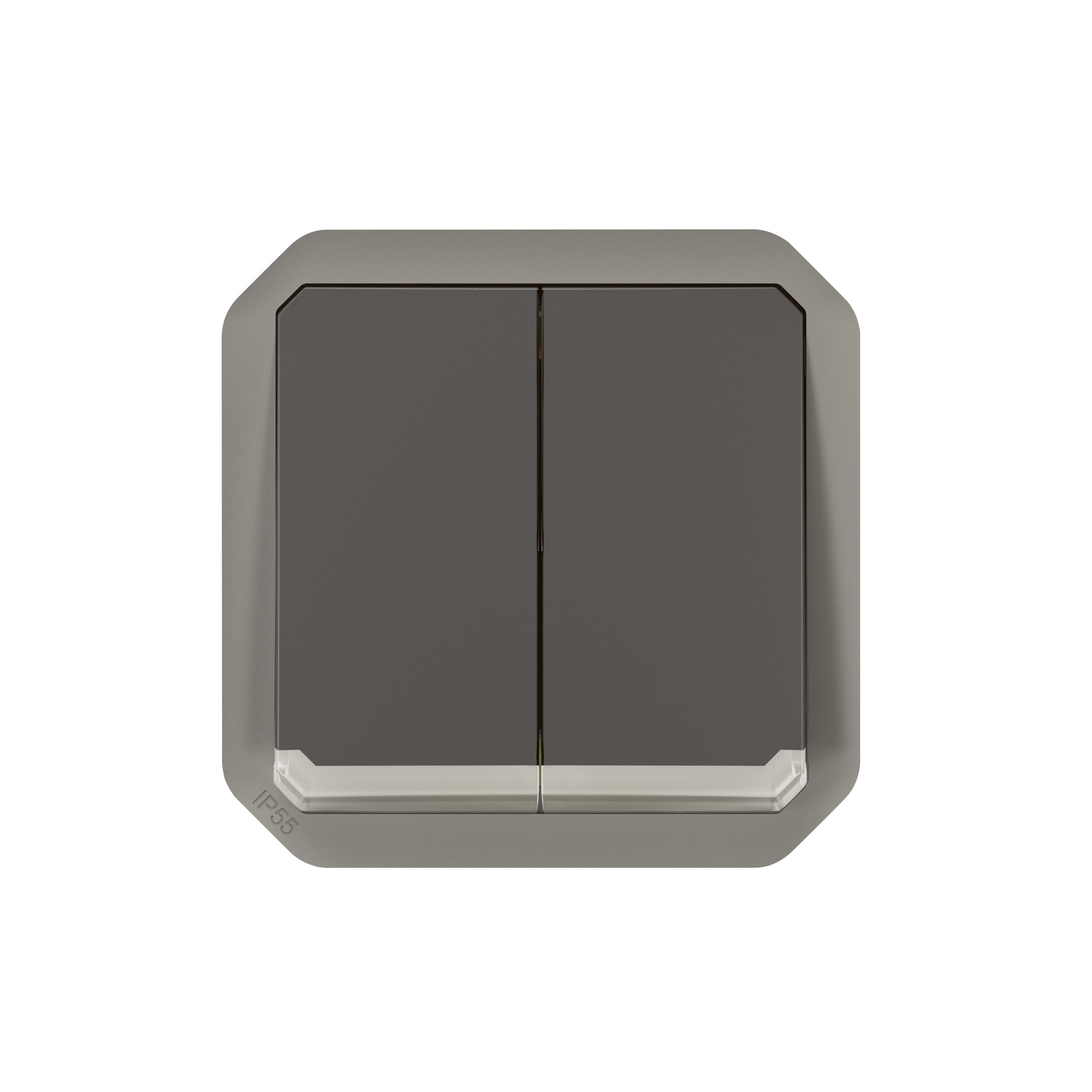 NOWE PLEXO - ŁĄCZ. PODWÓJNY/PRZY. PODWÓJNY Z PODŚWIETL. MECH 10AX-250V~ ANTRACYT
