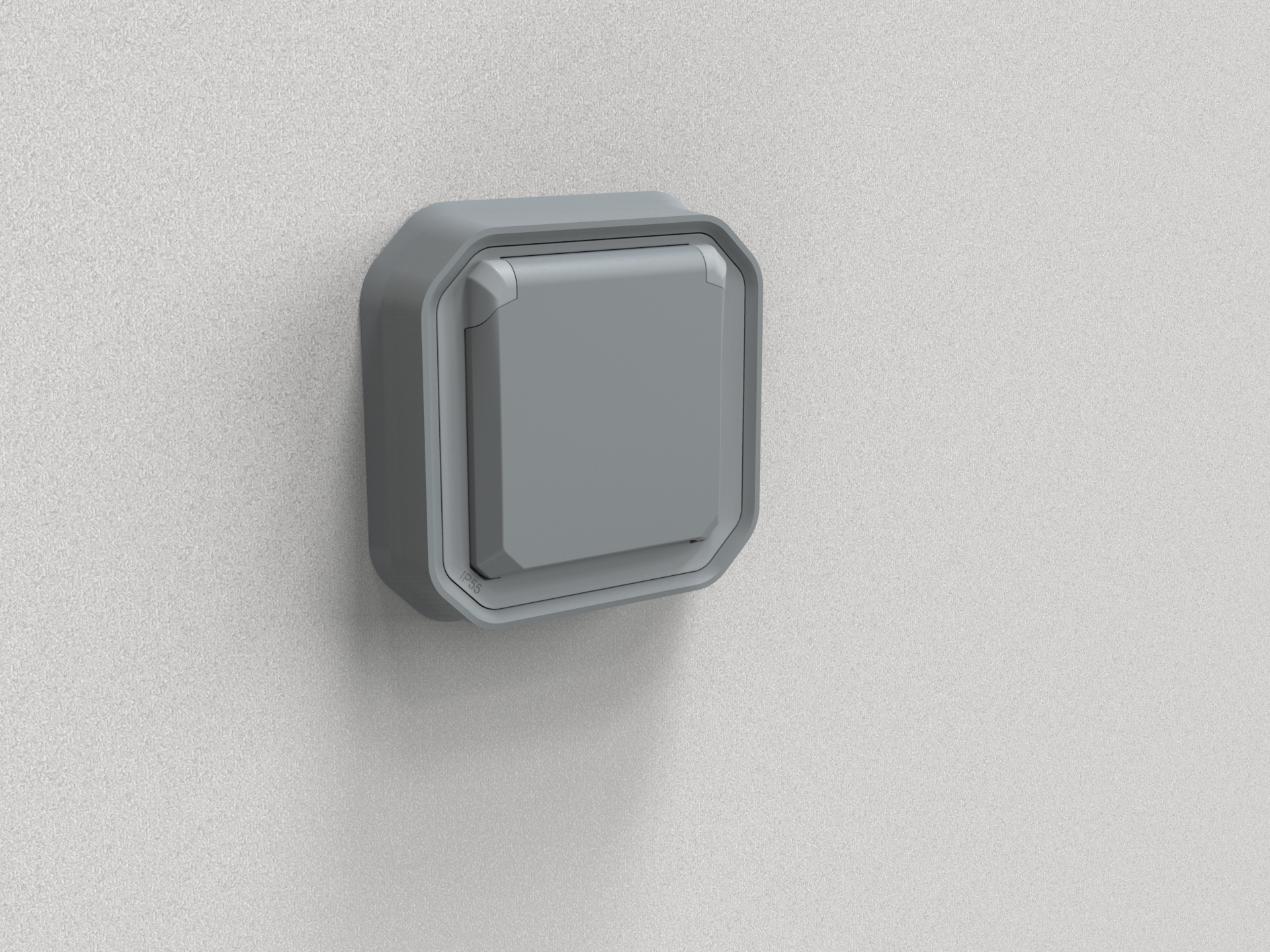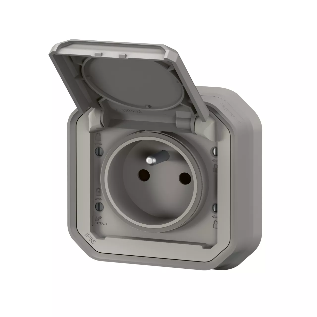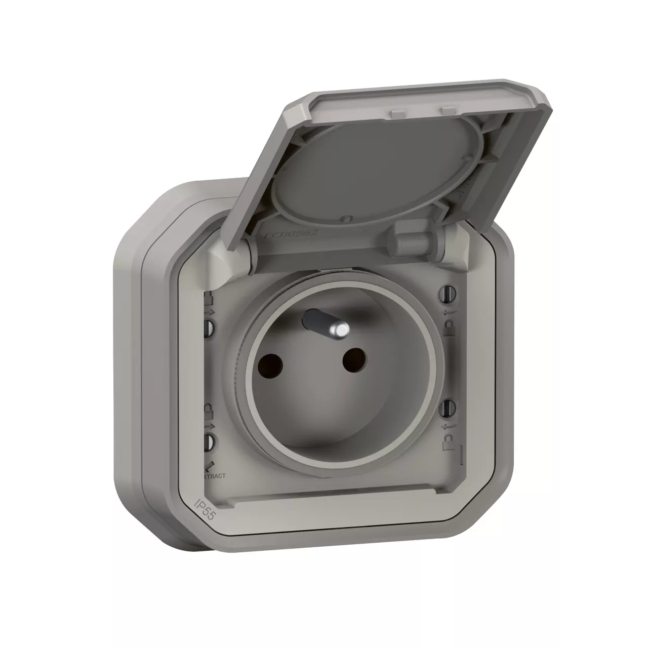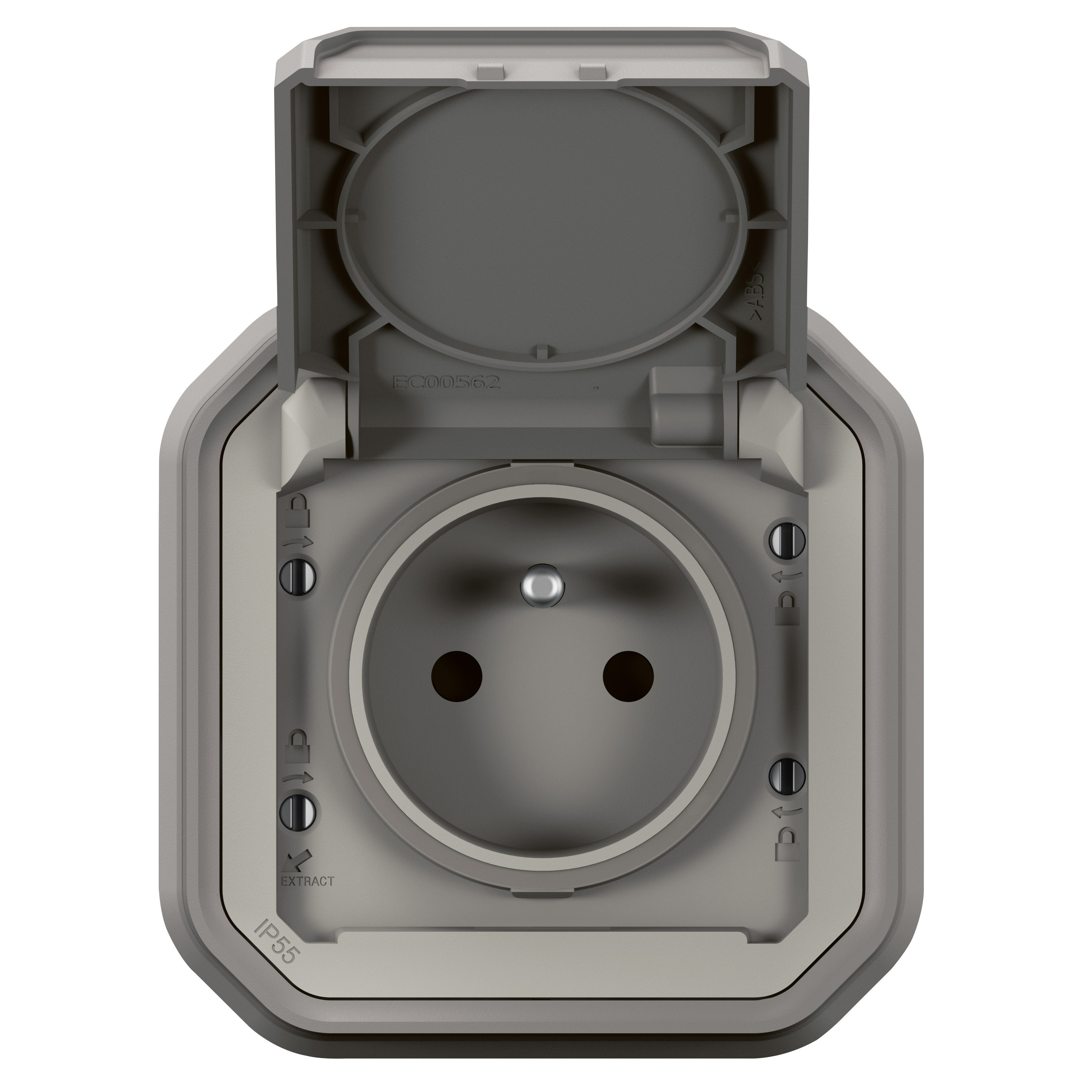 NOWE PLEXO - GNIAZDO 2P+Z ZACISKI AUTO KOMPLET PODTYNKOWY 16 A - 250 V~ SZARE