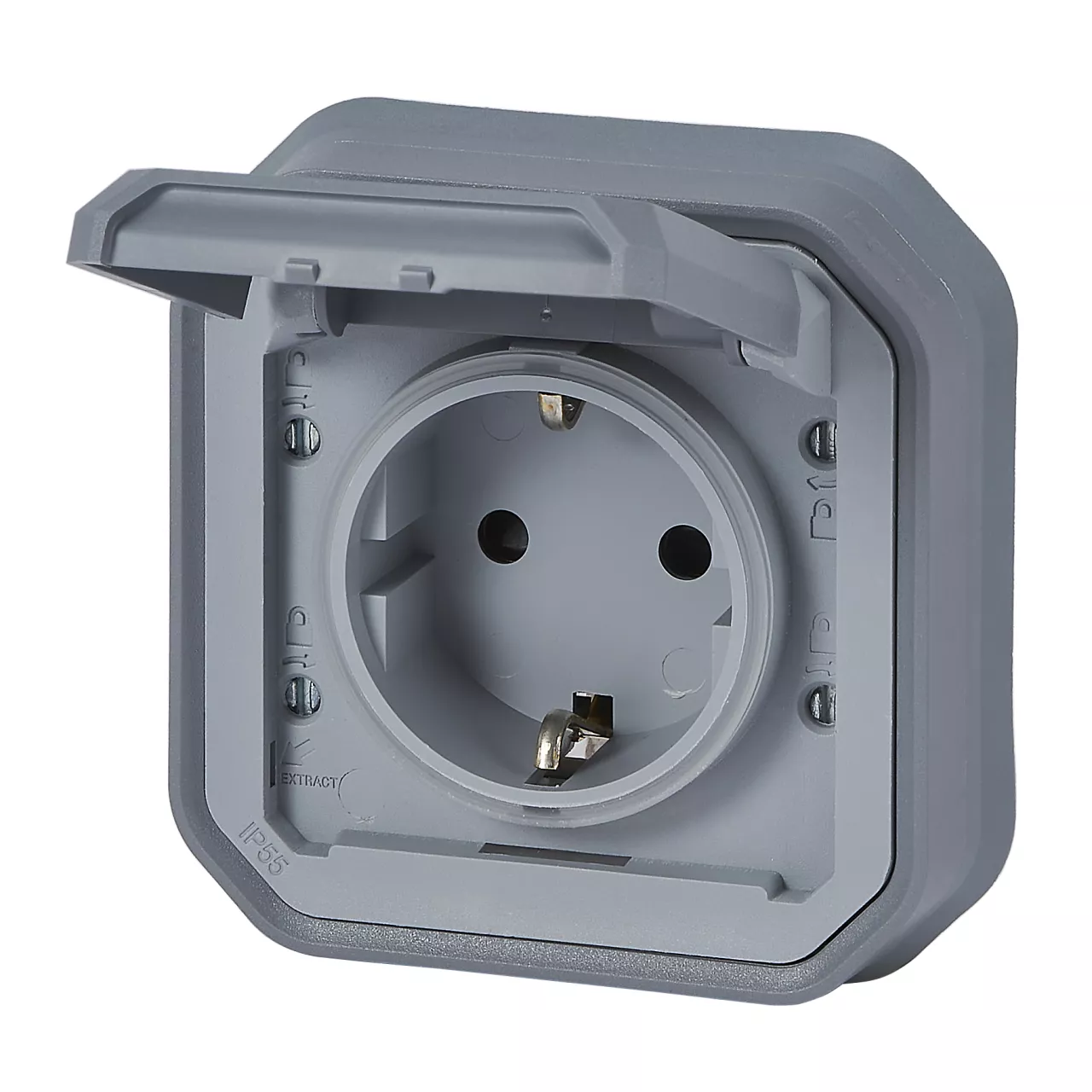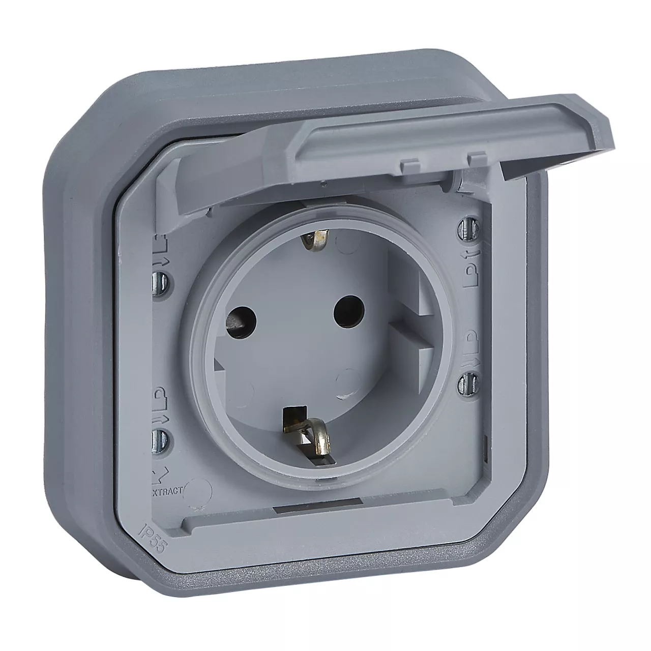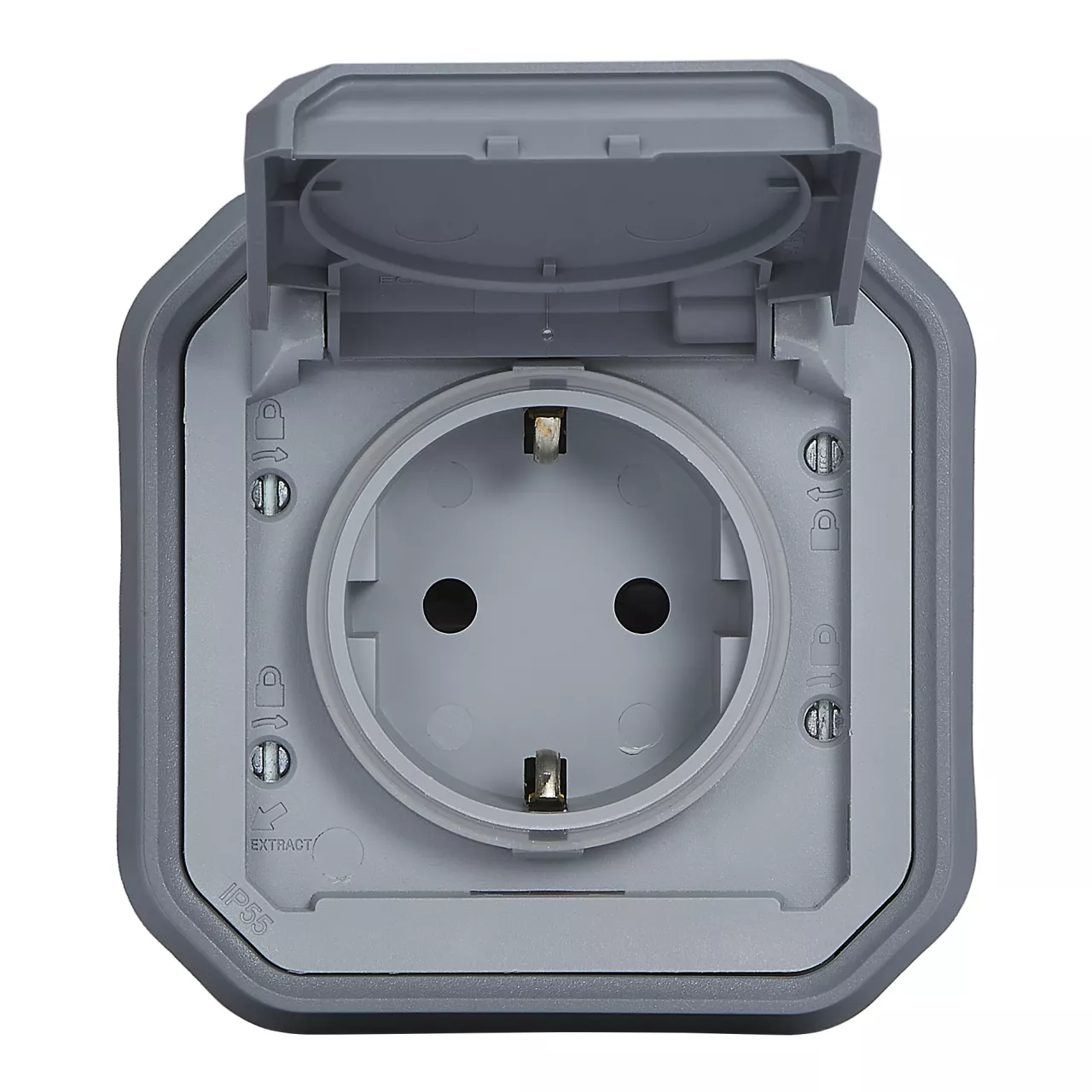 NOWE PLEXO - GN. SCHUKO 2P+Z ZACISKI ŚRUB PODTYNKOWE Z PAZURKAMI 16A-250V~ SZARE