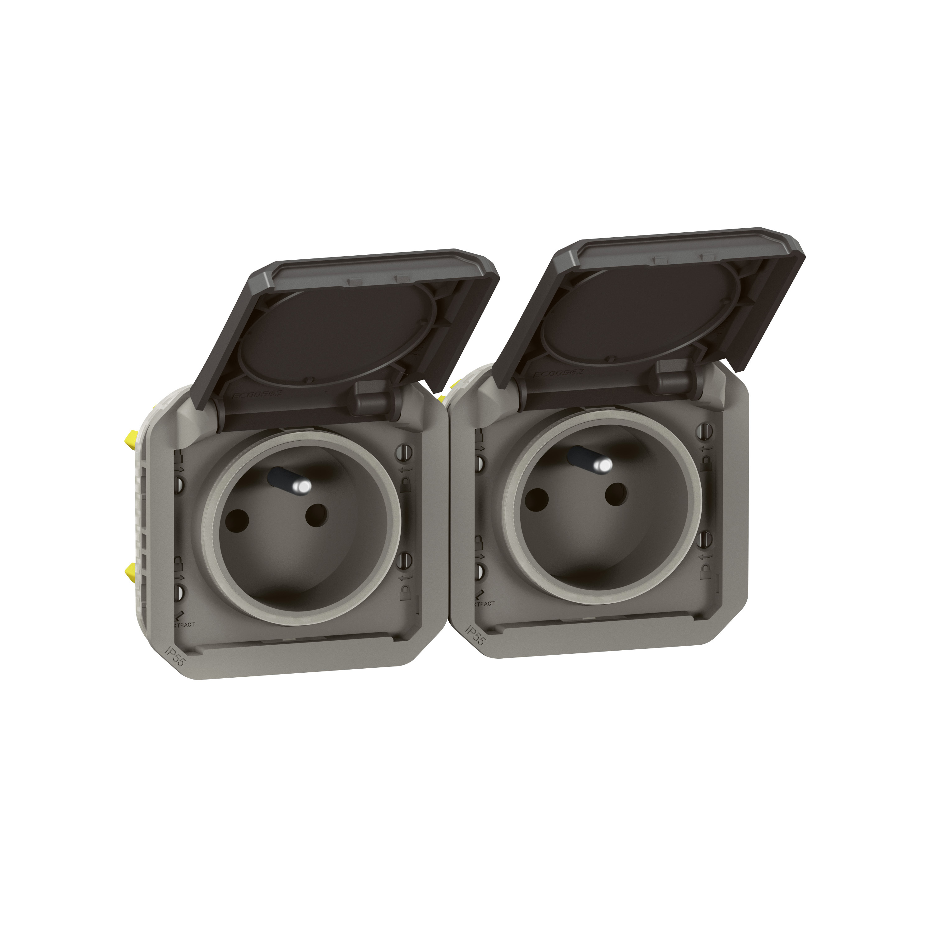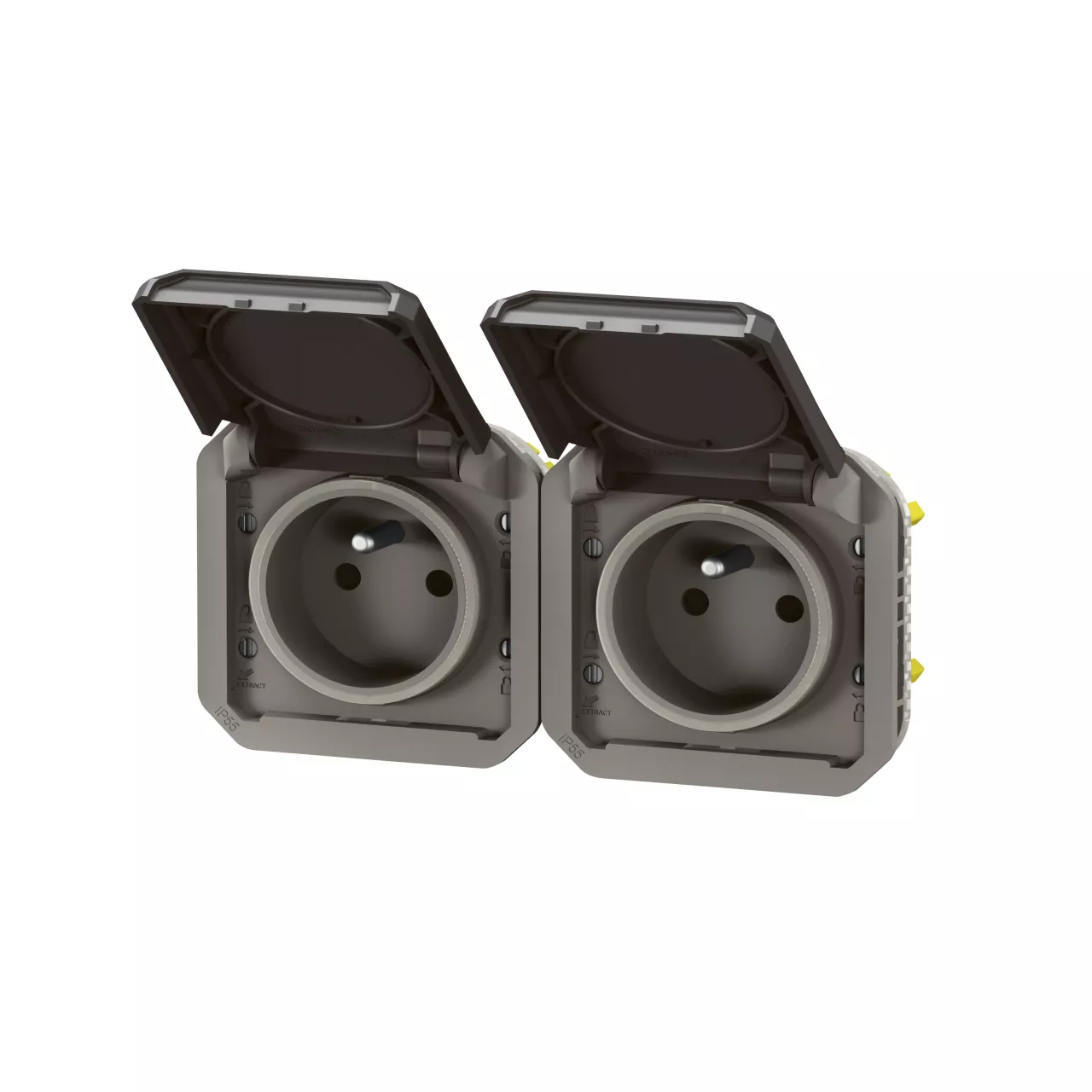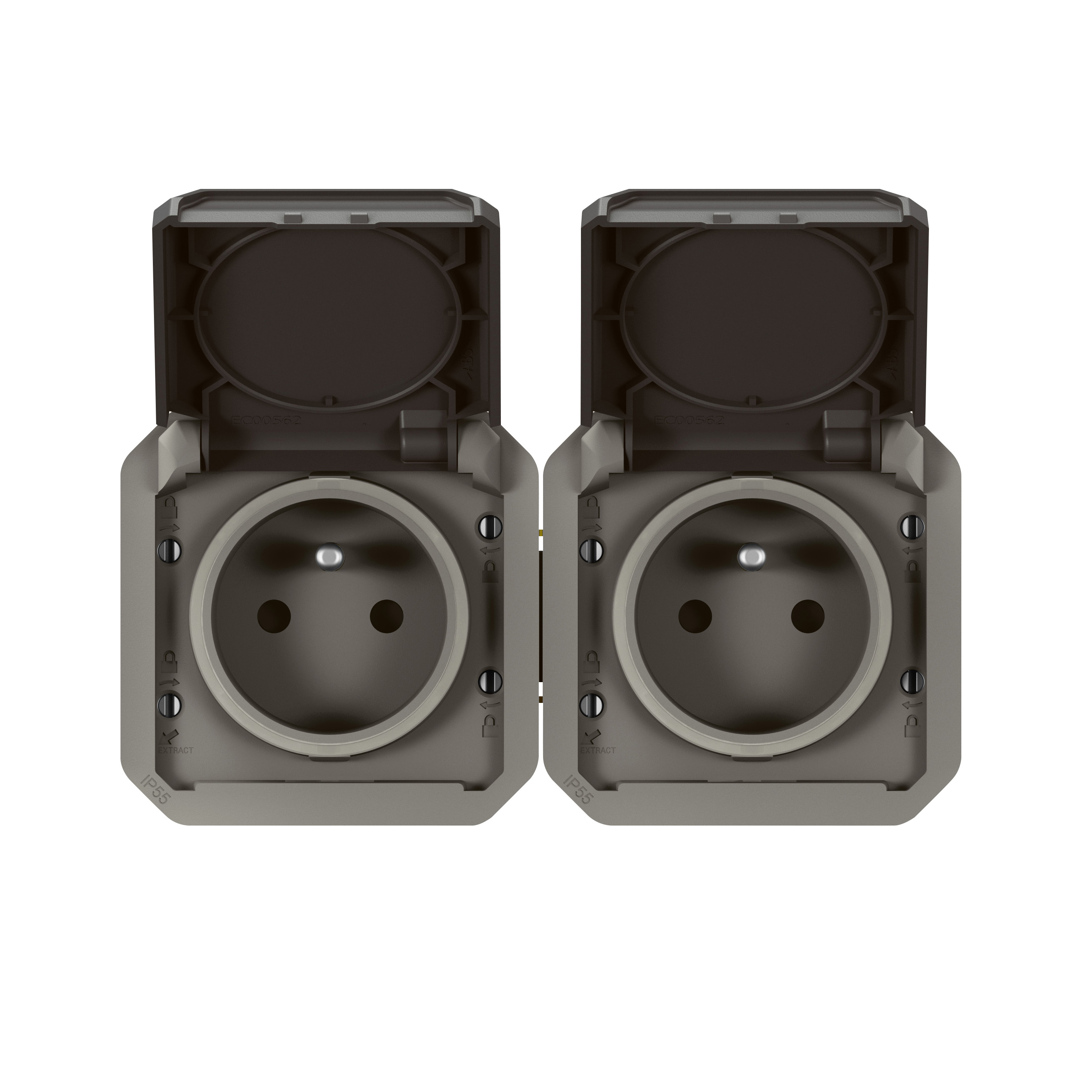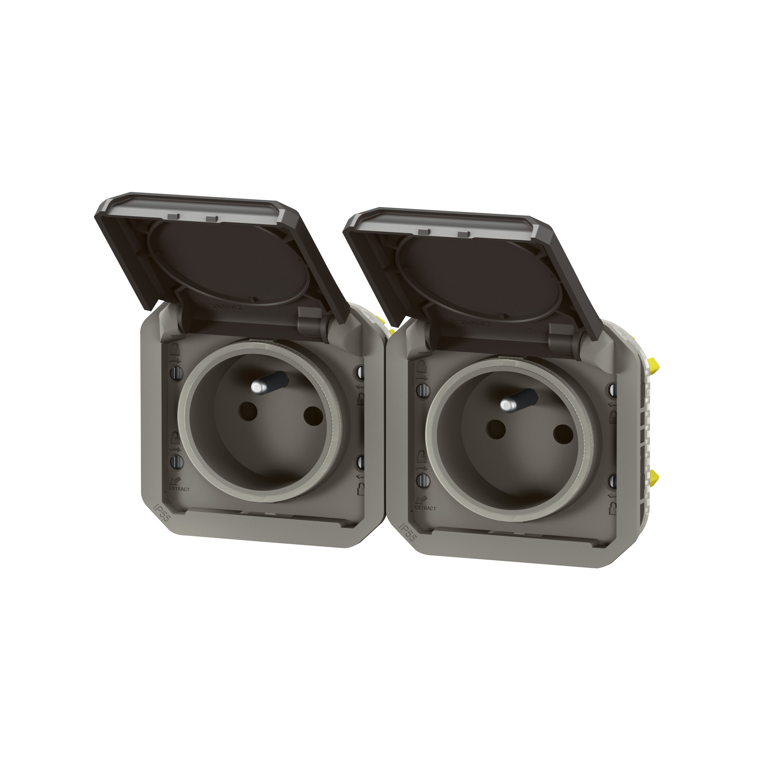 NOWE PLEXO - GNIAZDO 2X2P+Z POZIOME MECHANIZM 16 A - 250 V~ ANTRACYT