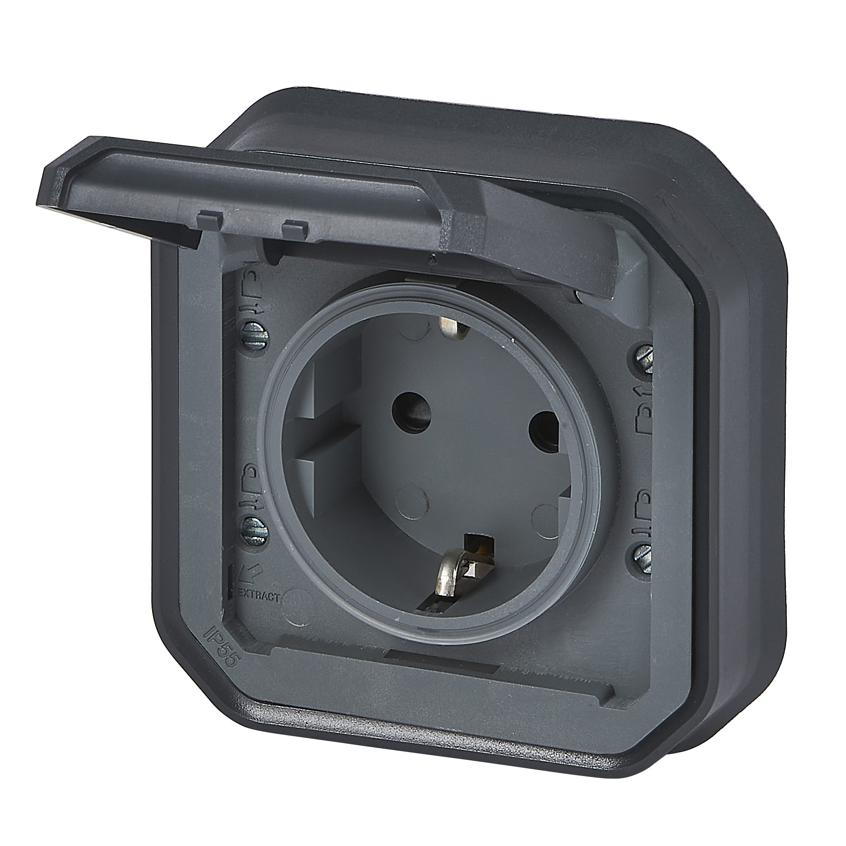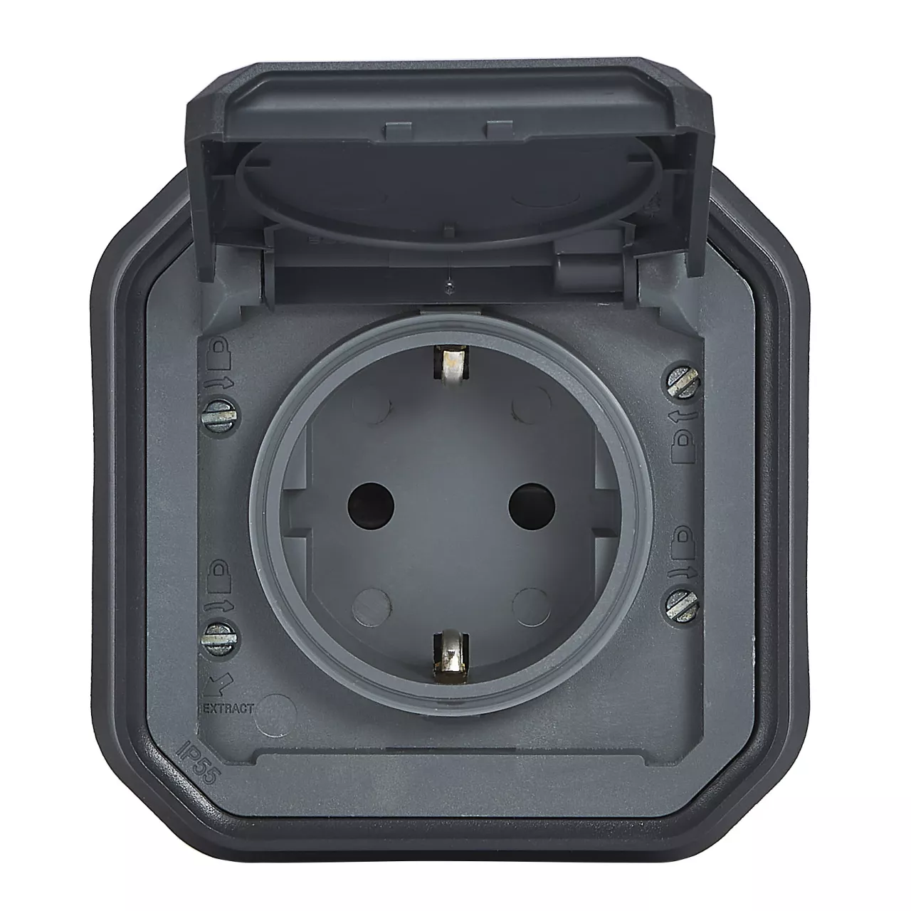 NOWE PLEXO - GN. SCHUKO 2P+Z ZACISKI ŚRUB KOMPLET PODTYNKOWY 16A-250V~ ANTRACYT