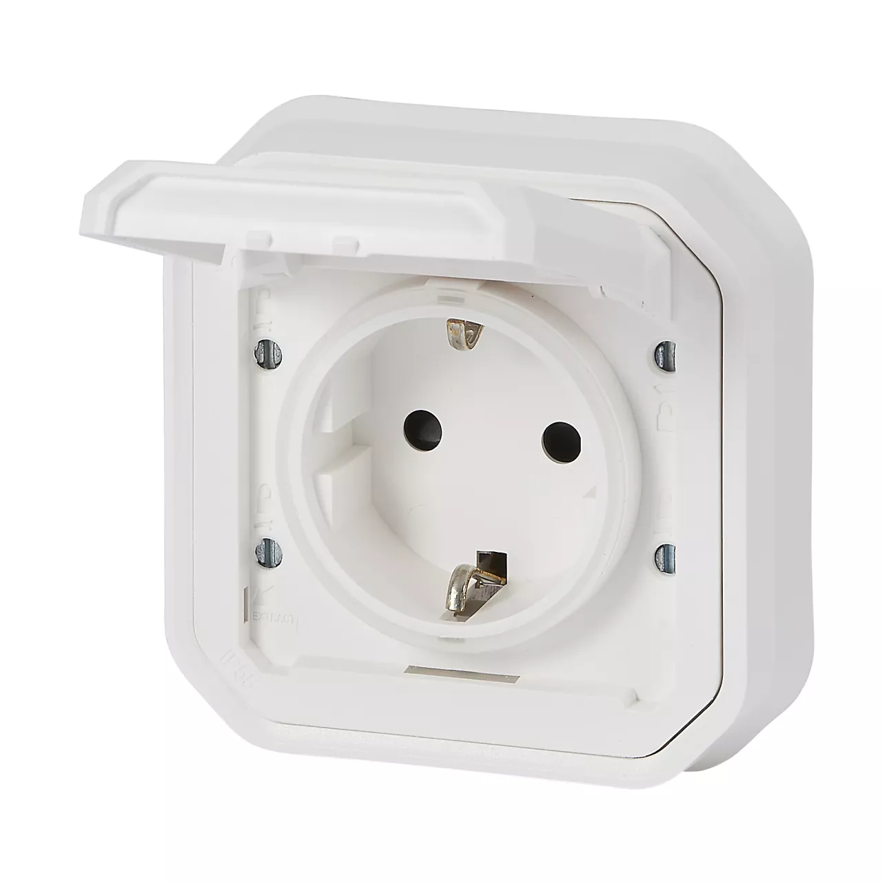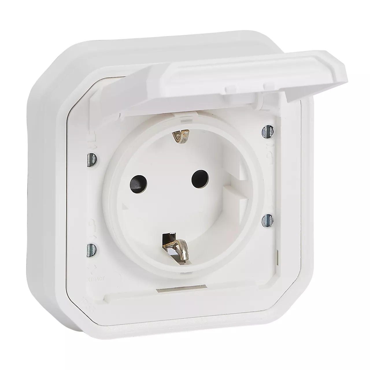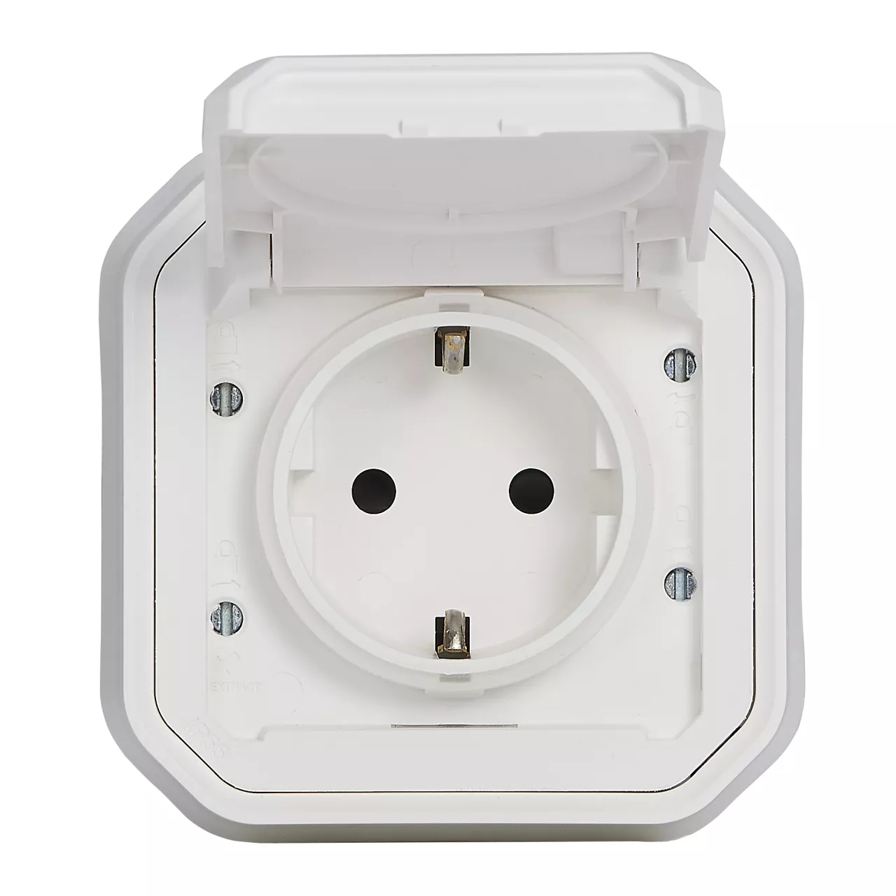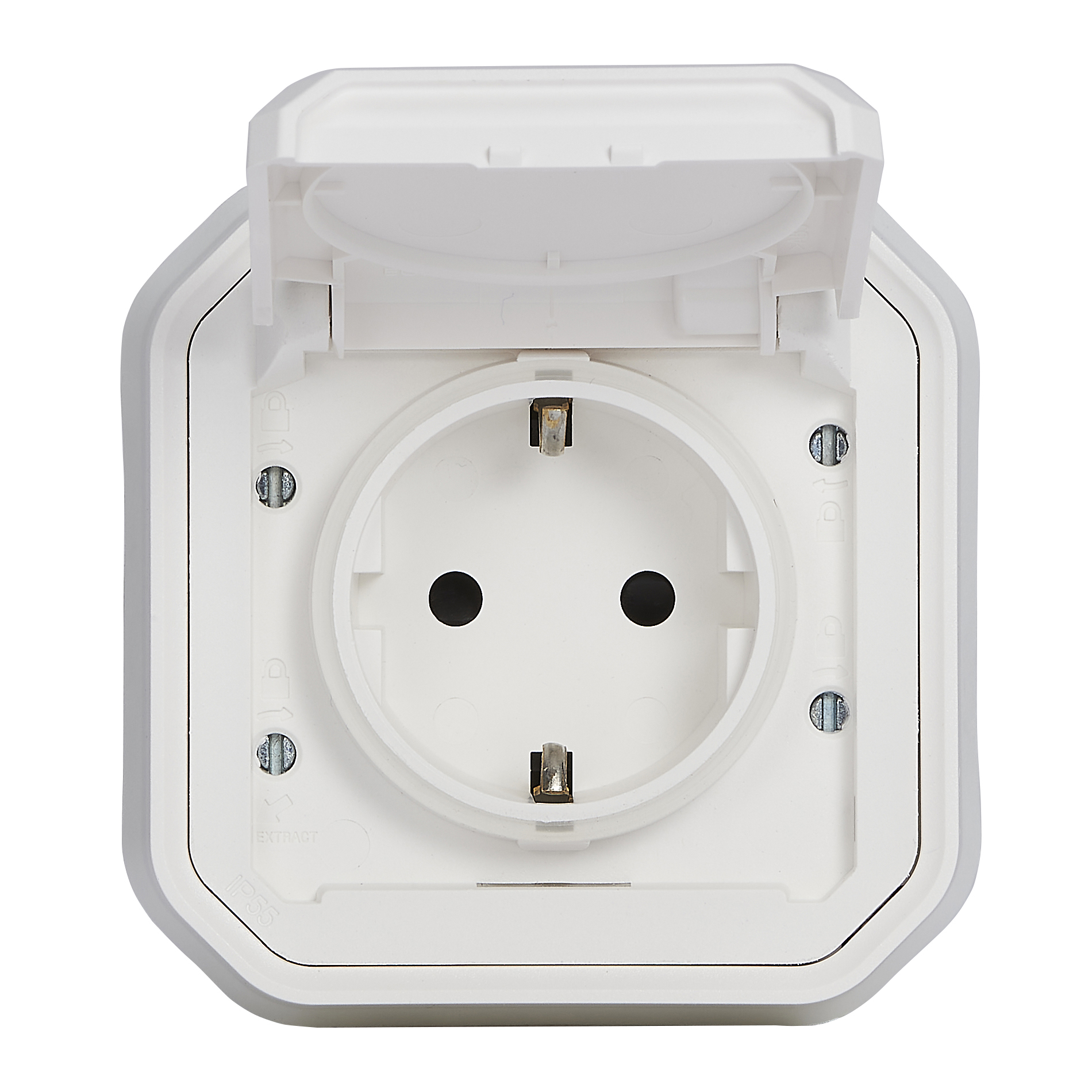 NOWE PLEXO - GN. SCHUKO 2P+Z ZACISKI ŚRUB PODTYNKOWE Z PAZURKAMI 16A-250V~ BIAŁE