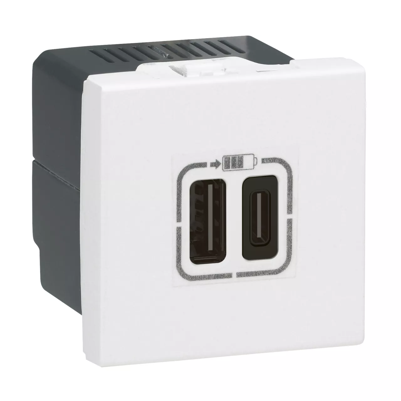 MOSAIC - Ładowarka 2 x USB 2400 mA Typ-A + Typ-C Biały, Legrand