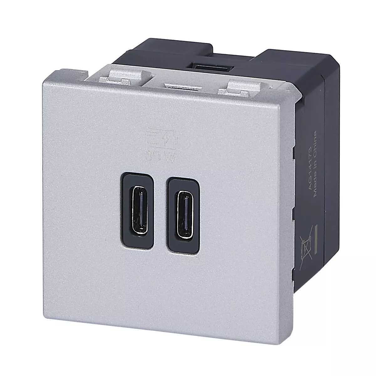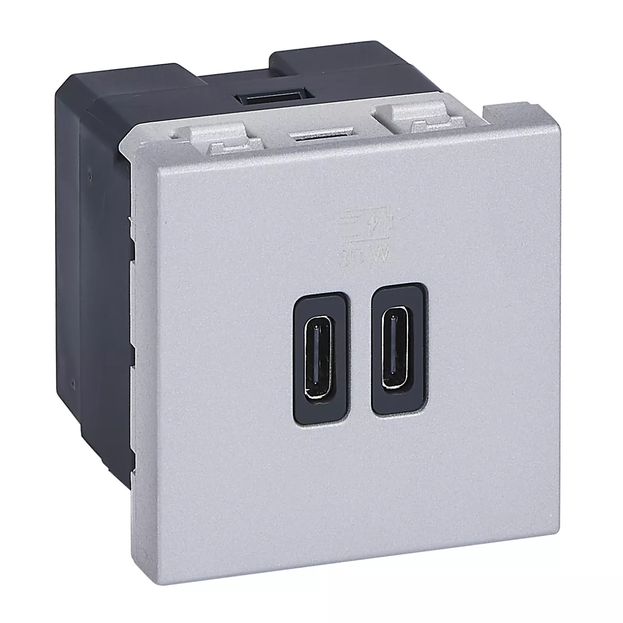 MOSAIC - GNIAZDO 2 X USB 2 MODUŁY TYP C+C 30 W ALUMINIUM, Legrand