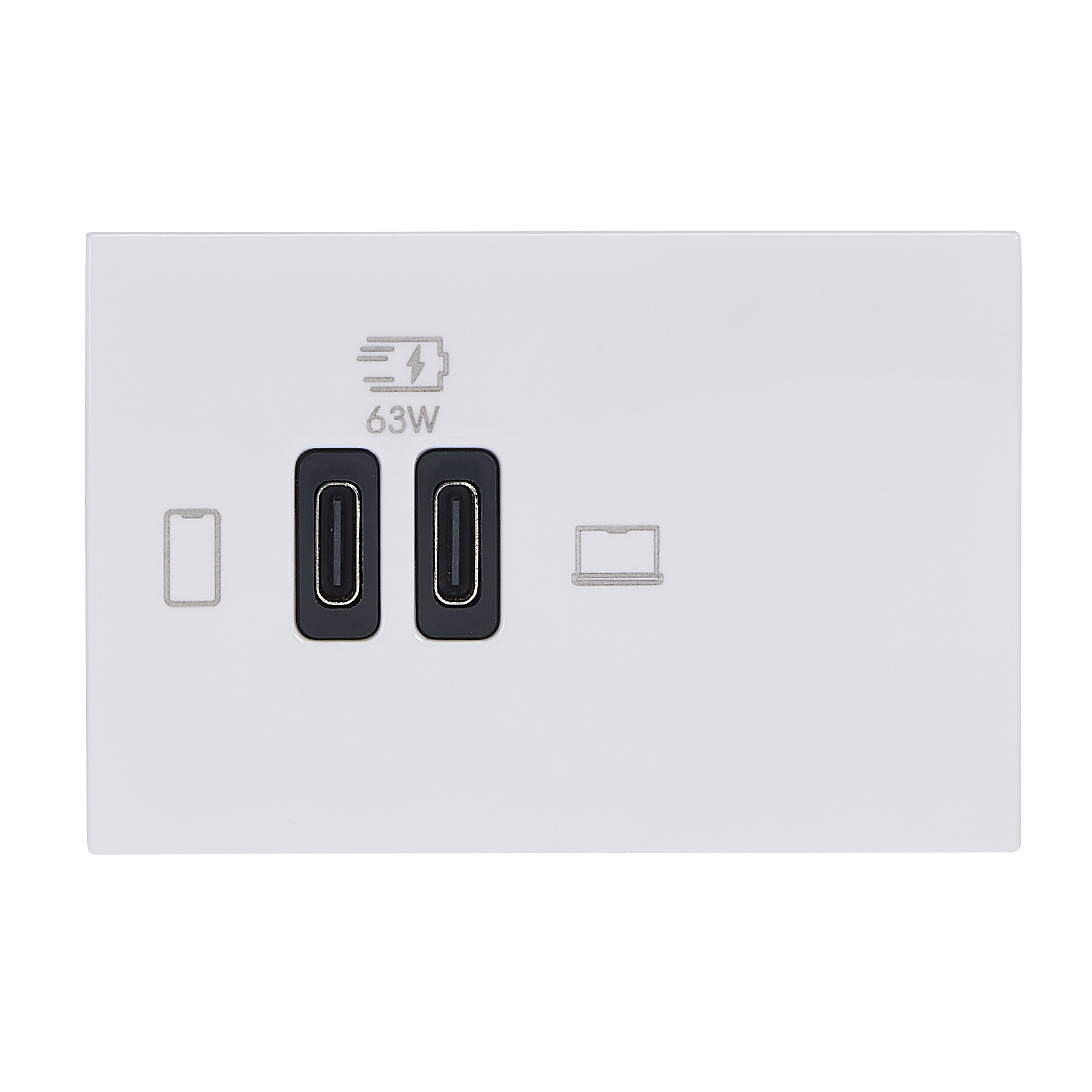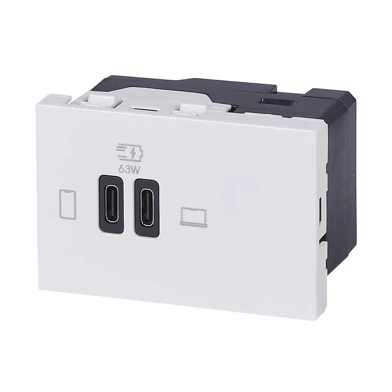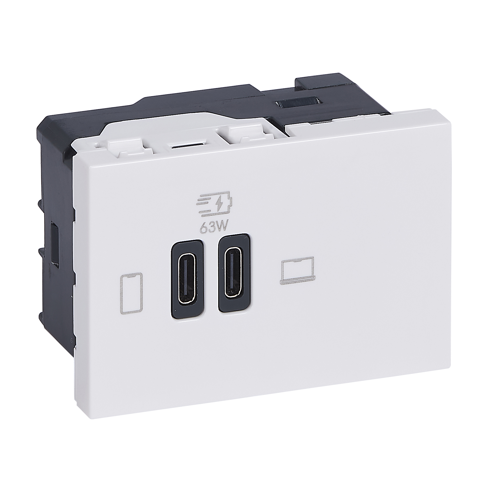MOSAIC - GNIAZDO 2 X USB 2 MODUŁY TYP C+C 63 W BIAŁE, Legrand