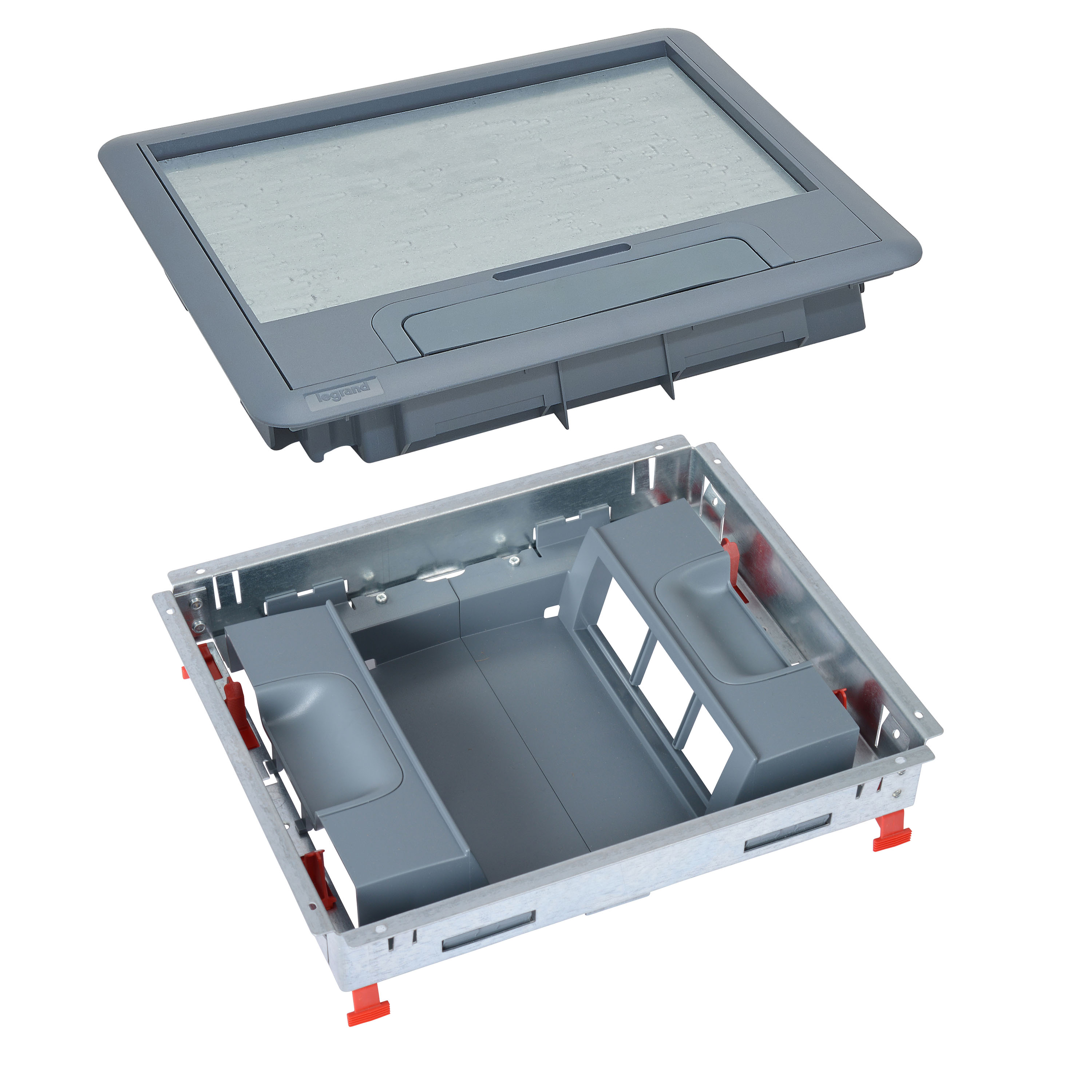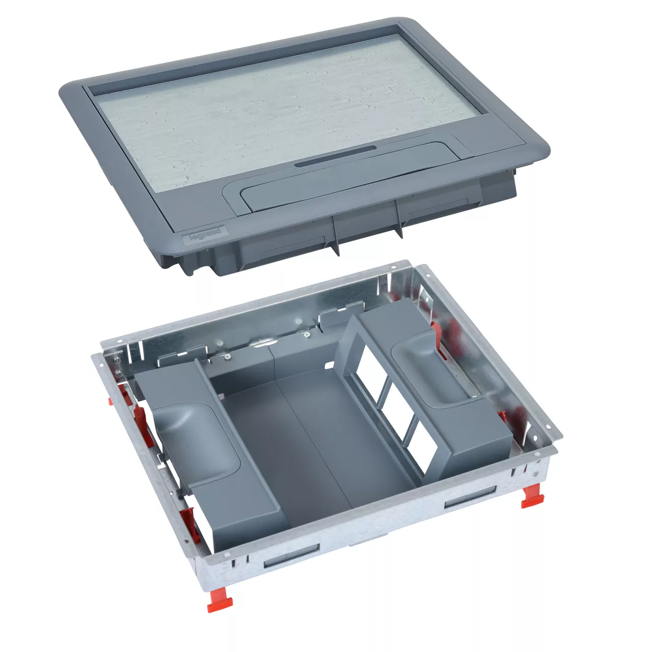 PUSZKA PODŁOGOWA STANDARD KOMPLETNA Z POKRYWĄ PLASTIKOWĄ - 12(2X6) MODUŁÓW MOSAIC MONTOWANYCH PIONOWO, Legrand