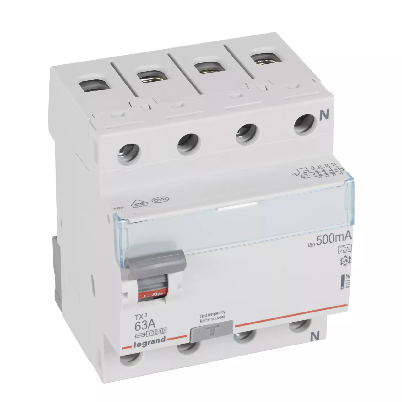 WYŁĄCZNIK RÓŻNICOWOPRĄDOWY P 304 4P 63A 500MA TYP A SERII TX3, Legrand
