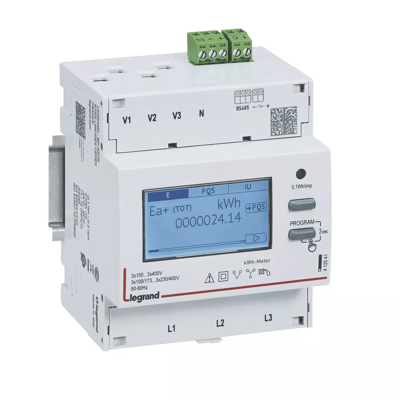 LICZNIK ENERGII POMIAR PRZEZ PRZEKŁADNIKI CT, 3 FAZOWY 5 A Z WYJŚCIEM RS485, 2 TARYFY, Legrand