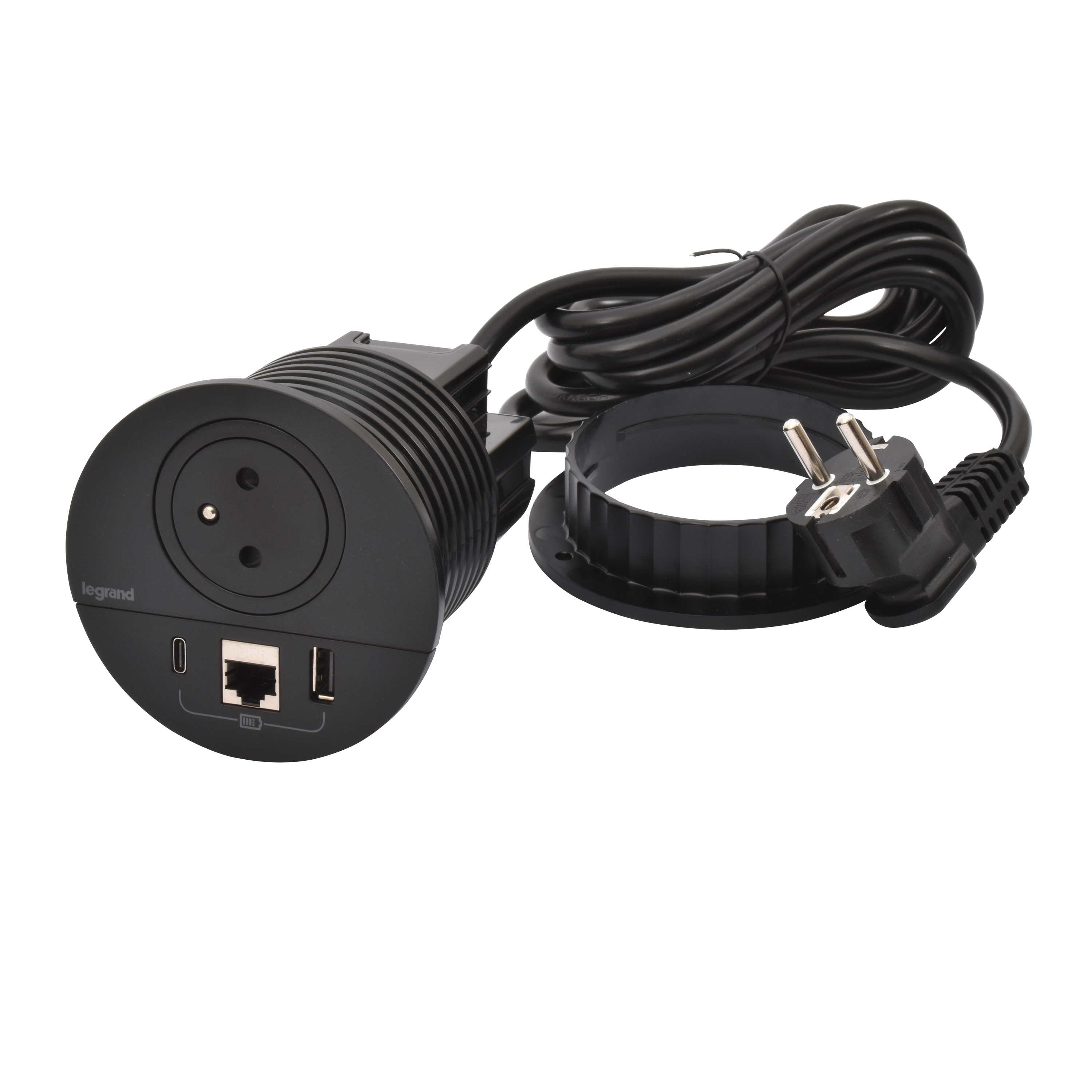 INCARA: DISQ 80 - 2P+Z / USB A+C / RJ45 - 2,0 M-CZARNY, Legrand