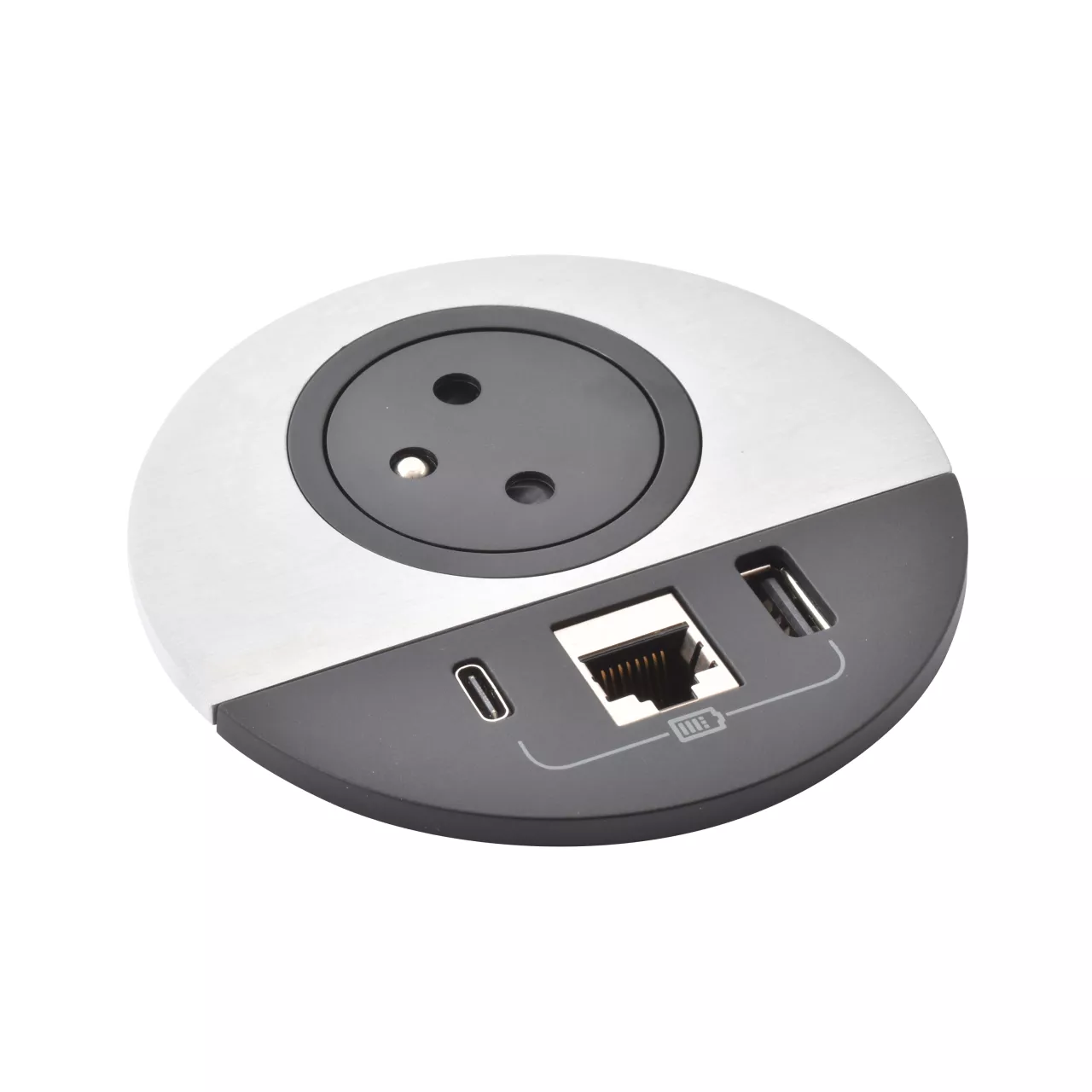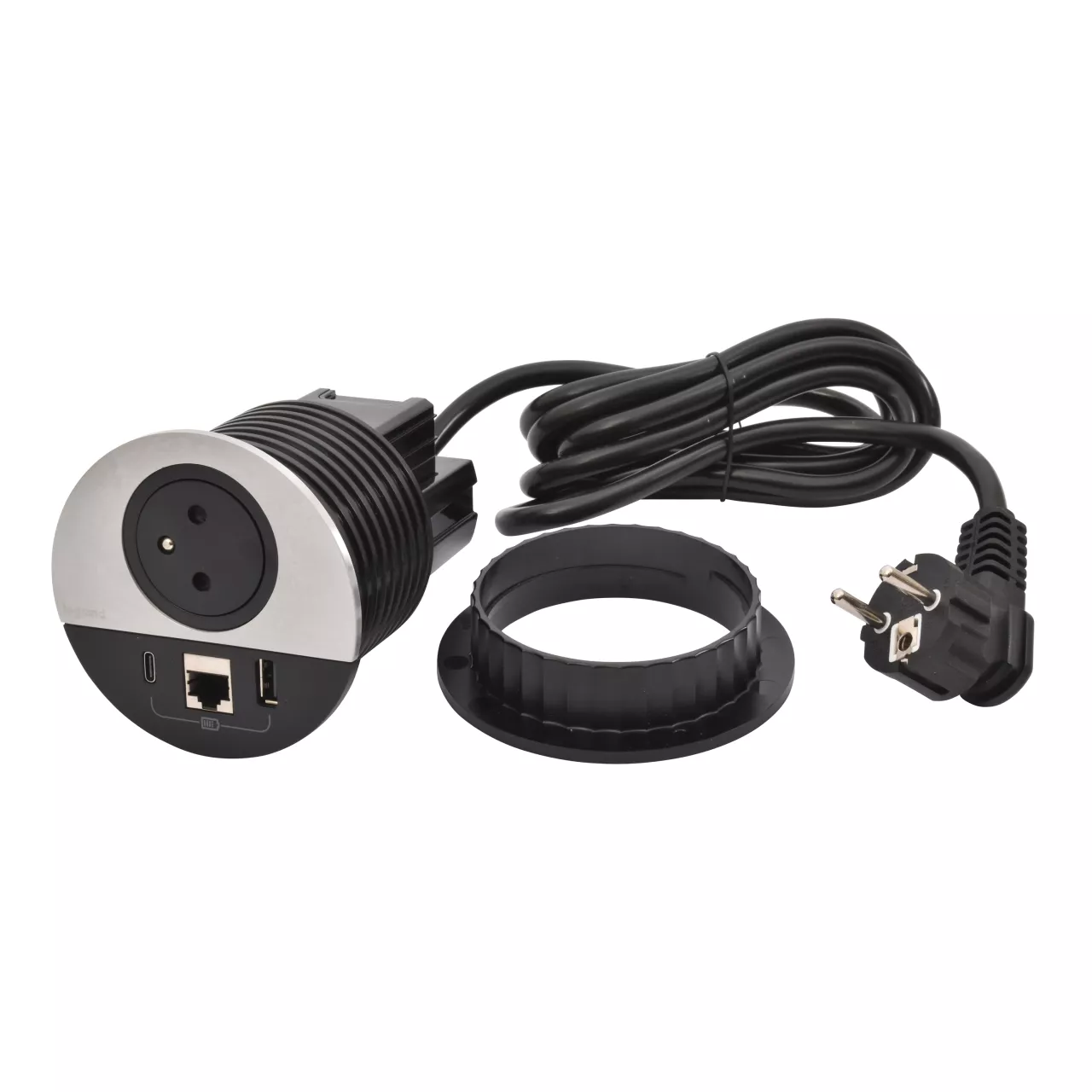 INCARA: DISQ 80 - 2P+Z / USB A+C / RJ45 - 2,0 M-METAL/CZARNY, Legrand