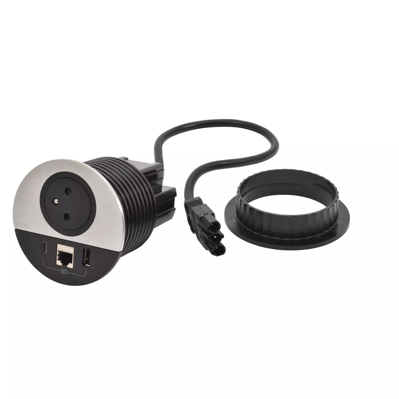 INCARA: DISQ 80 - 2P+Z / USB A+C / RJ45 - 0,5 M WIELAND-METAL/CZARNY, Legrand