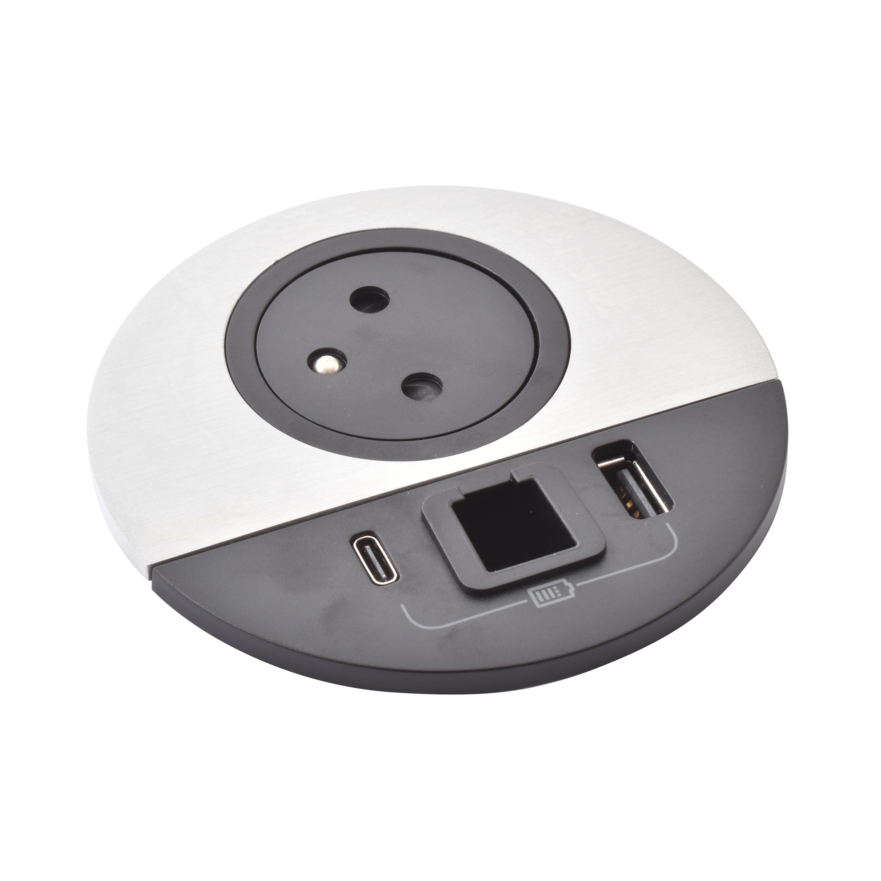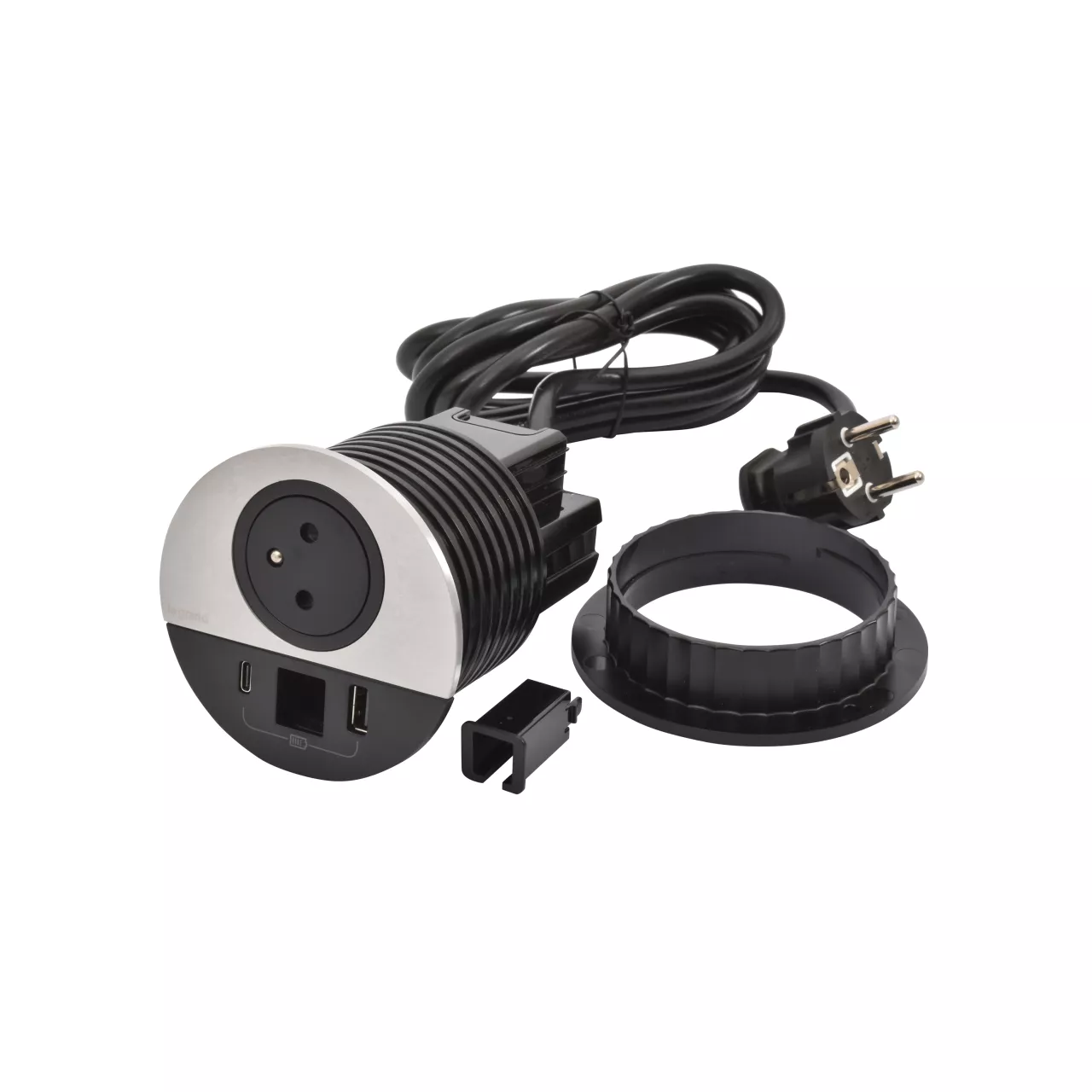 INCARA: DISQ 80 - 2P+Z / USB A+C / WYJŚCIE KABLOWE - 2,0 M-METAL/CZARNY, Legrand