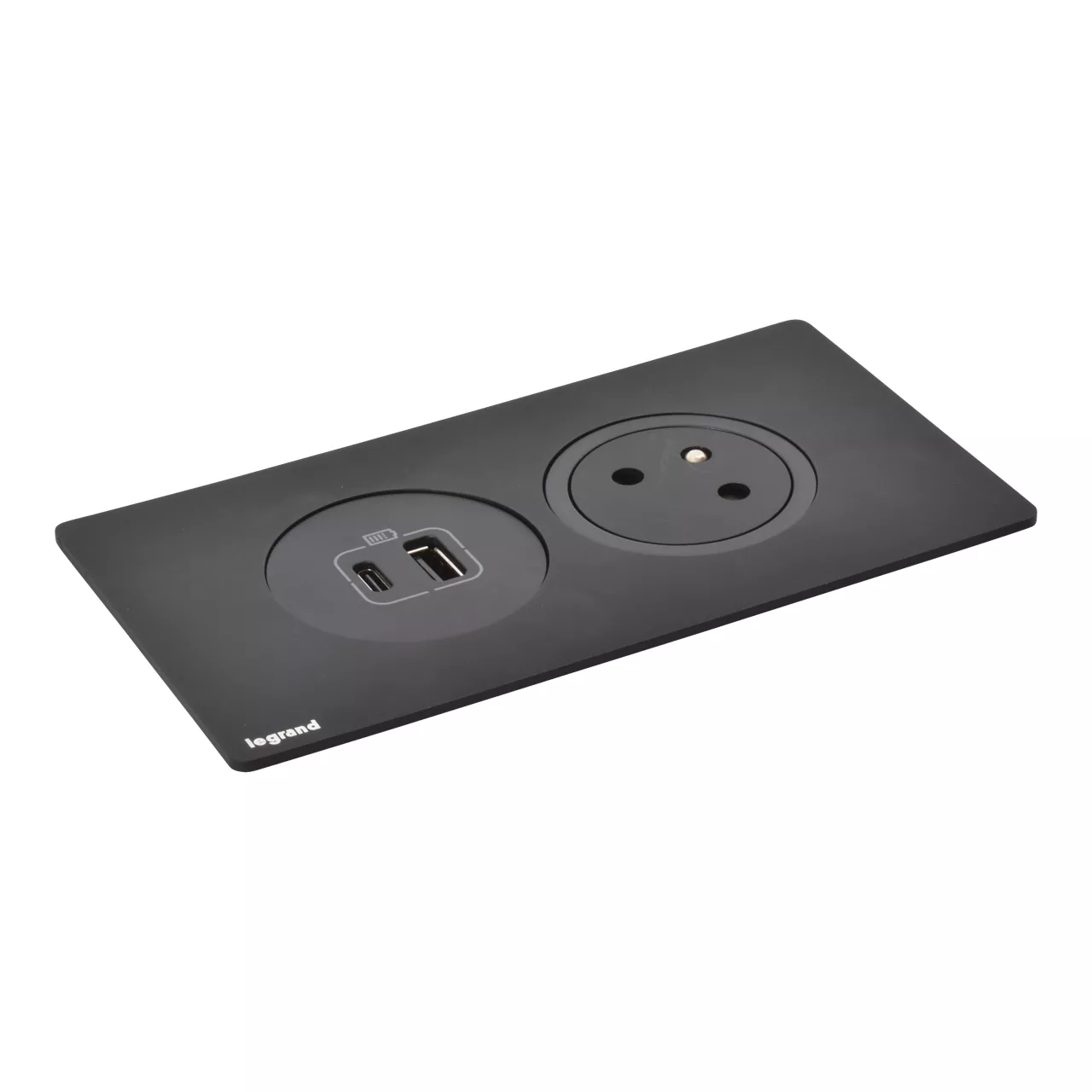 INCARA: DISQ'IN - 2P+Z / USB A+C - 2,0 M-CZARNY, Legrand