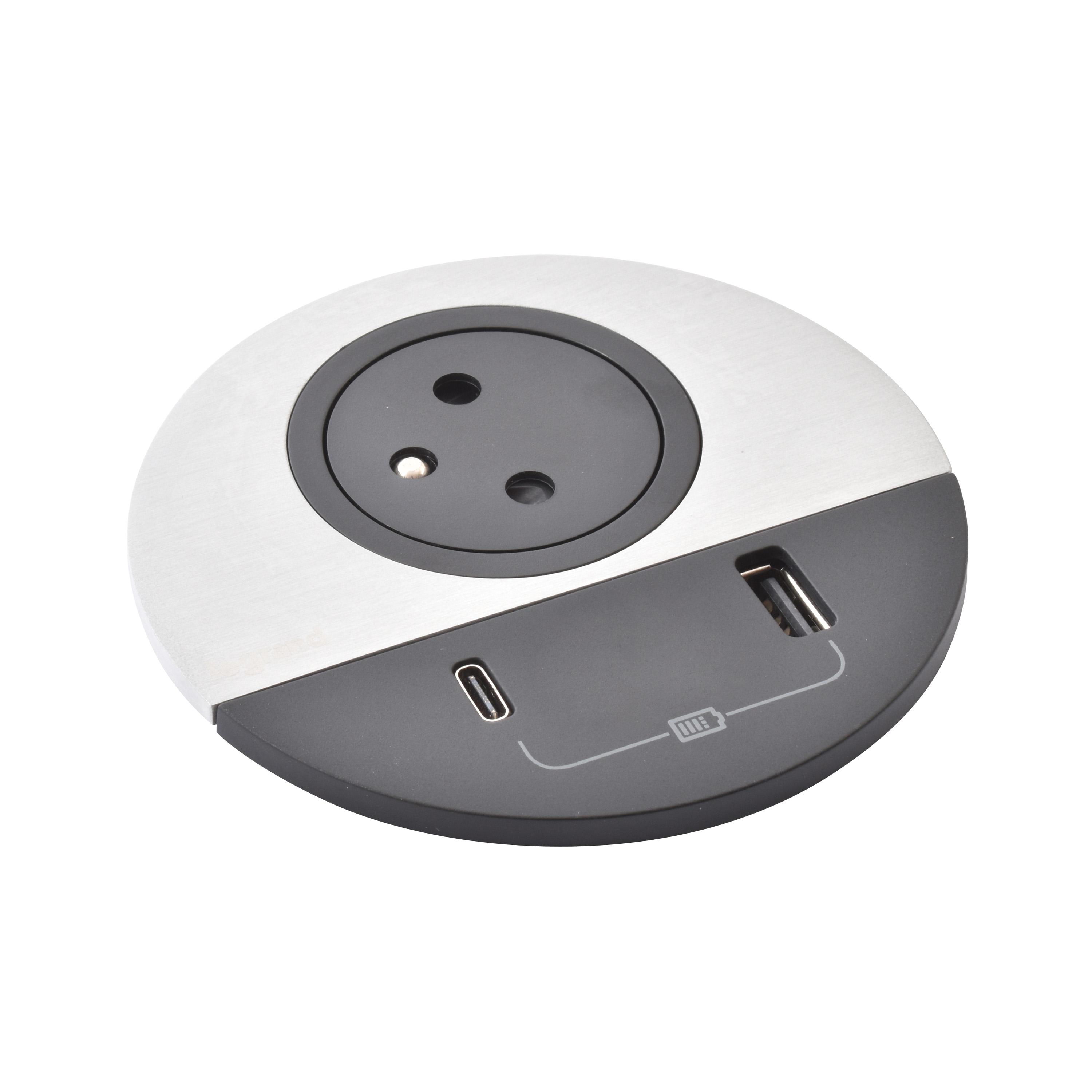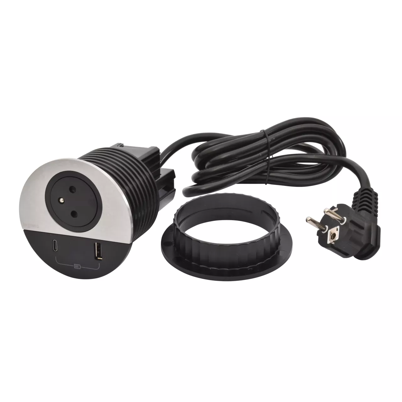 INCARA: DISQ 80 - 2P+Z / USB A+C - 2,0 M-METAL/CZARNY