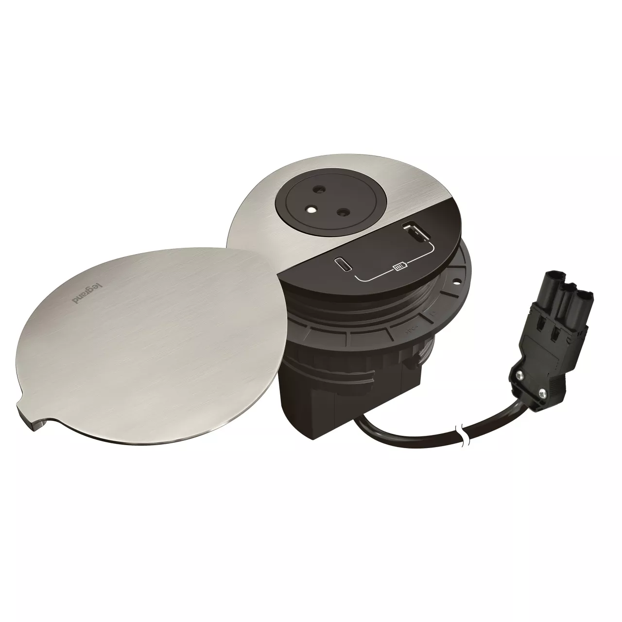 INCARA: DISQ 80 - 2P+Z / USB A+C Z POKRYWĄ - 0,5 M WIELAND-CZARNY