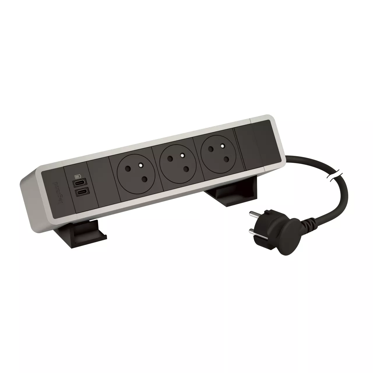 INCARA: ONDESK - 3X2P+Z/USB C+C-PRZEWÓD 2 METRY- ALUMINIUM/CZARNY