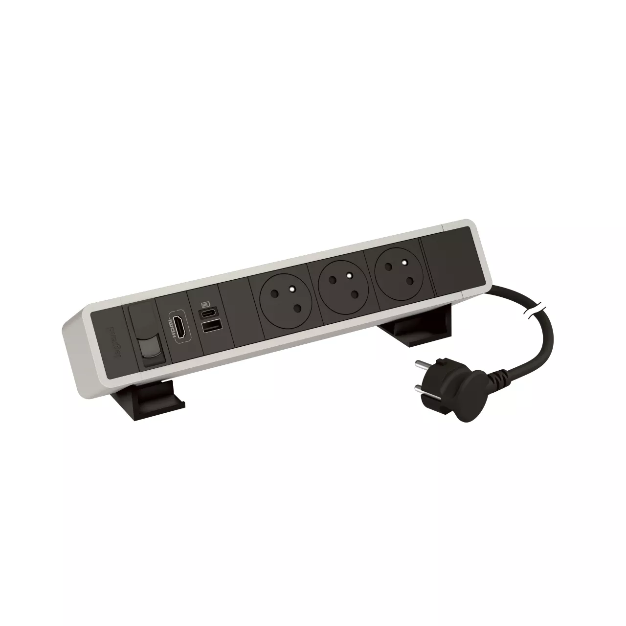 INCARA: ONDESK - 3X2P+Z/USB A+C/RJ/HD-PRZEWÓD 2 METRY- ALUMINIUM/CZARNY