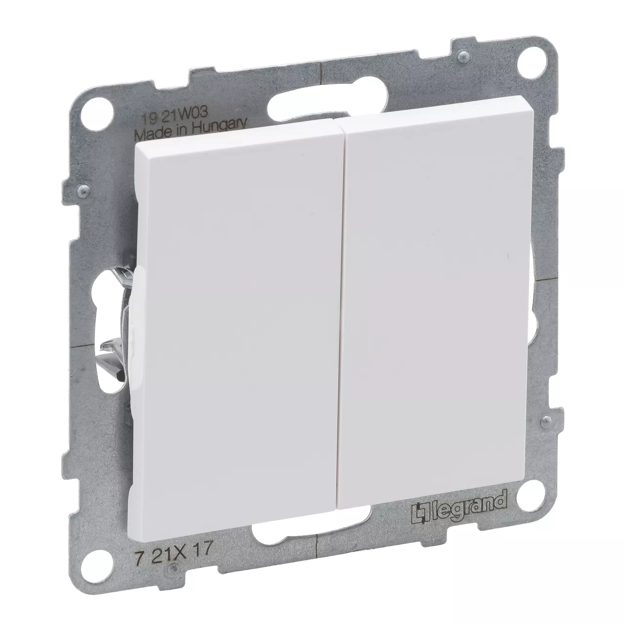 SUNO - Przycisk podwójny - 6 A - 250 V~ - zaciski automatyczne, Biały, Legrand