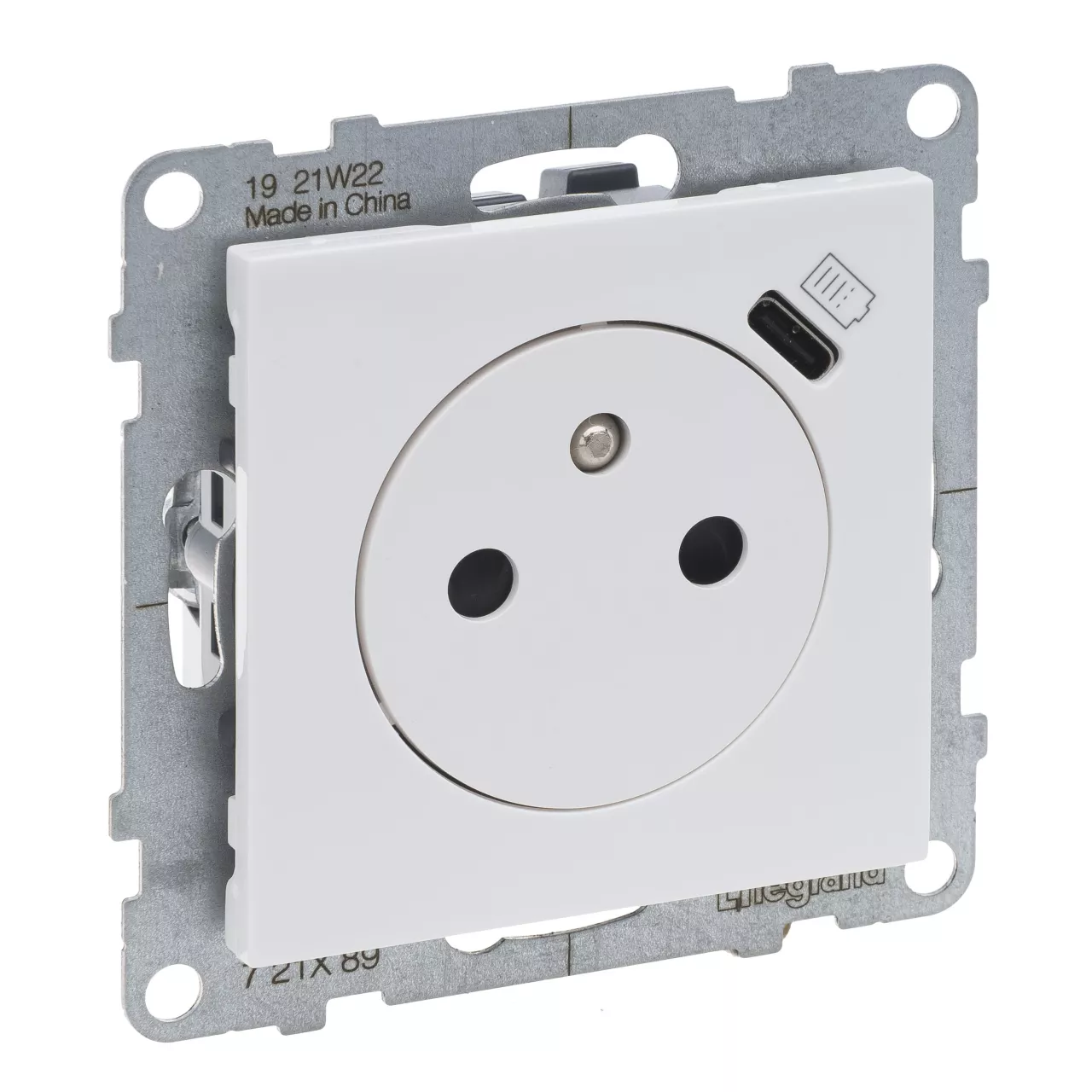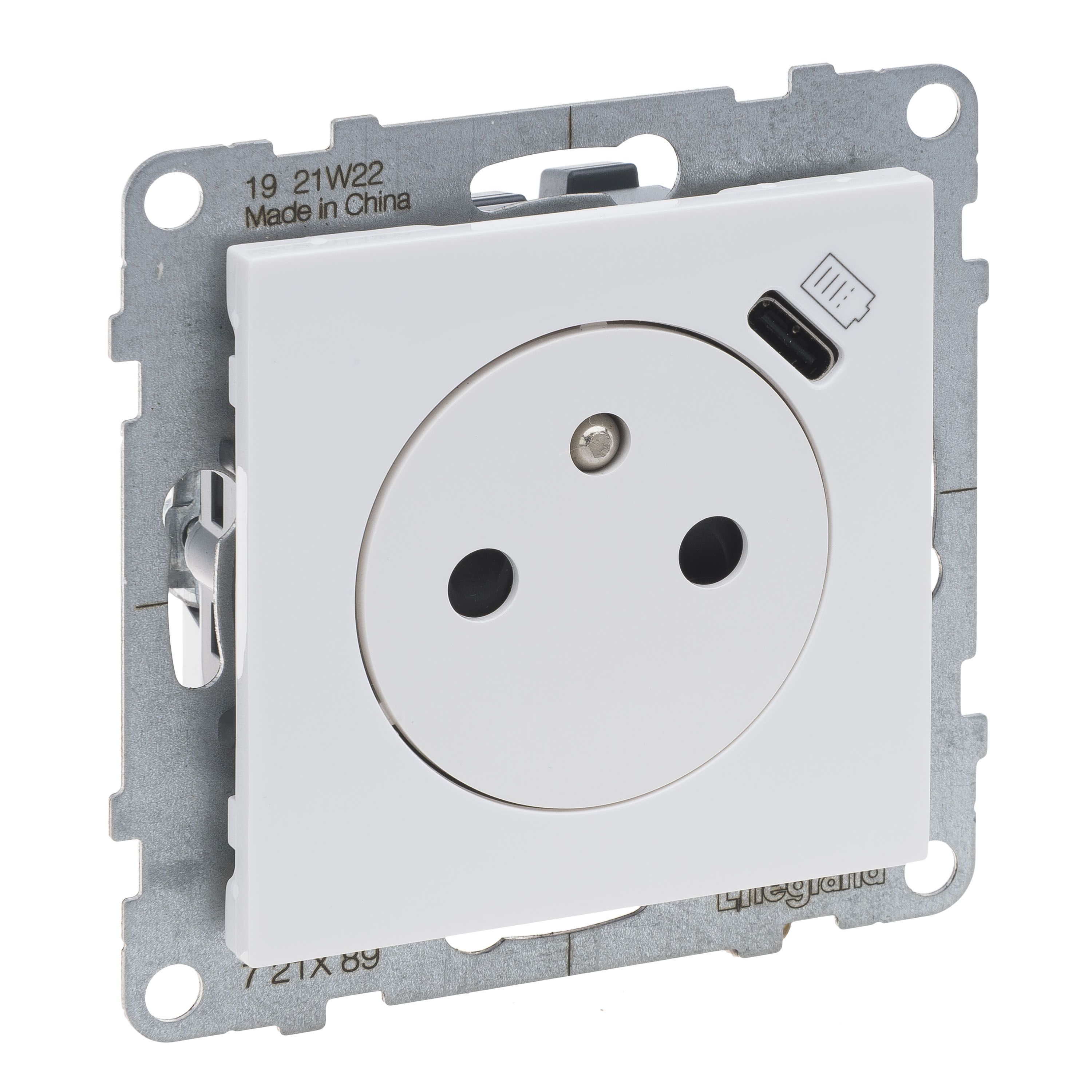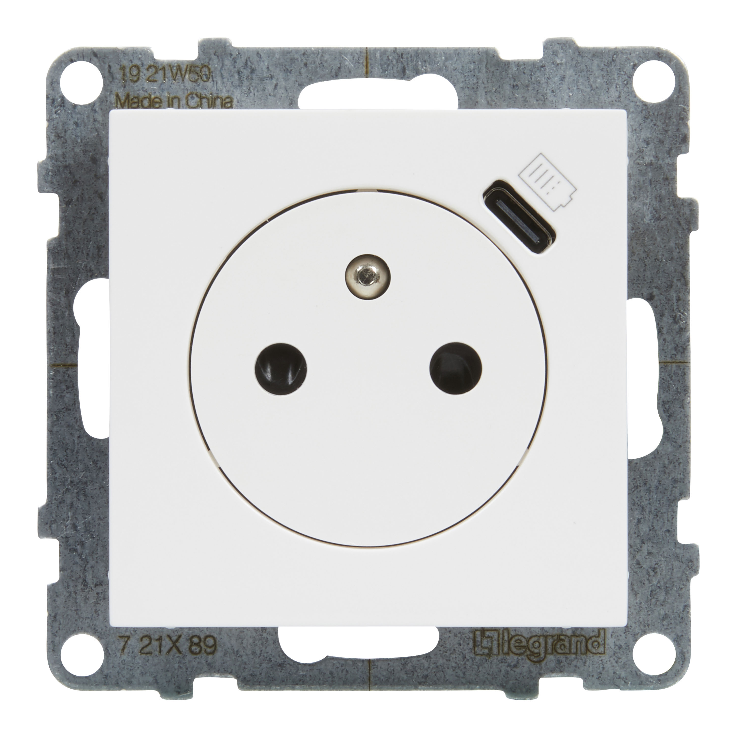 SUNO - Gniazdo płaskie 2P+Z - 16 A - z USB Typ - C - 1,5 A - zaciski automatyczne - z przesłoną, Biały, Legrand